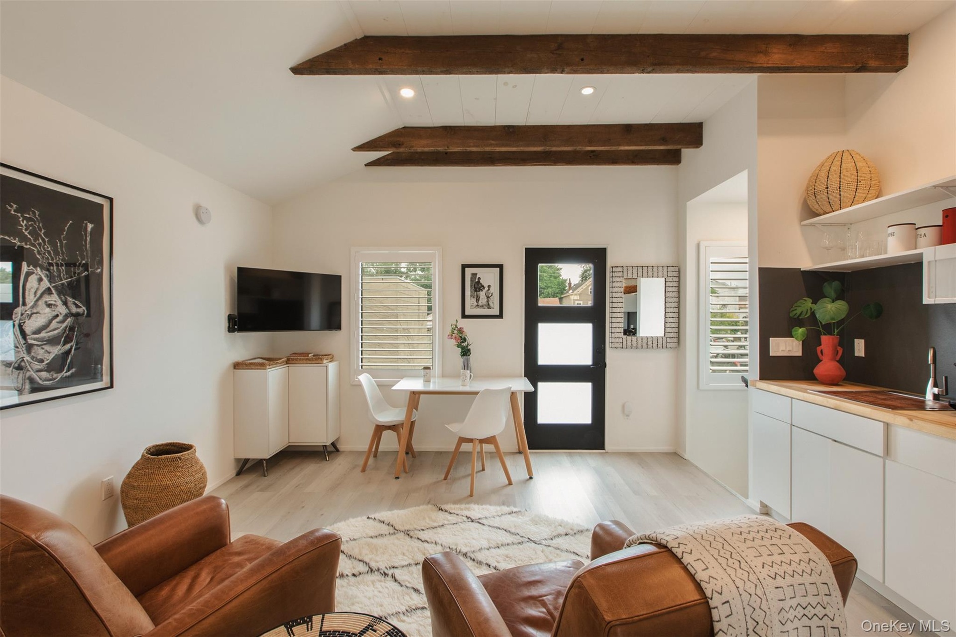 522 Warren Street, Hudson NY — A masterfully restored live/work property in the heart of Hudson’s vibrant downtown. Behind its historic 1890s facade lies a complete ground-up renovation that blends refined design, modern systems, and timeless character. The ground floor features a spacious bi-level commercial storefront with high ceilings, a new bath, sun-filled offices, and flexible open space ideal for gallery, retail, or studio use, opening onto a lush private garden oasis. Above, the two-story loft-style residence offers open living and dining areas with a gourmet kitchen and direct access to an expansive outdoor terrace with fireplace, heat lamps, and sunshades for year-round enjoyment. The top floor includes two light-filled bedrooms with soaring ceilings, the primary suite showcasing mountain views, a soaking tub, oversized rain shower, and custom built-ins. A modern one-bedroom apartment above the garage, connected by the landscaped garden with fire pit, provides an ideal guest, studio, or rental space. Every system has been renewed—new electrical, plumbing, HVAC, insulation, smart home features, fiber internet, and full security. Steps from Hudson’s acclaimed restaurants, shops, galleries, and the Amtrak station, this property offers sophisticated design, flexible live/work potential, and true turnkey perfection in one of the Hudson Valley’s most sought-after destinations.