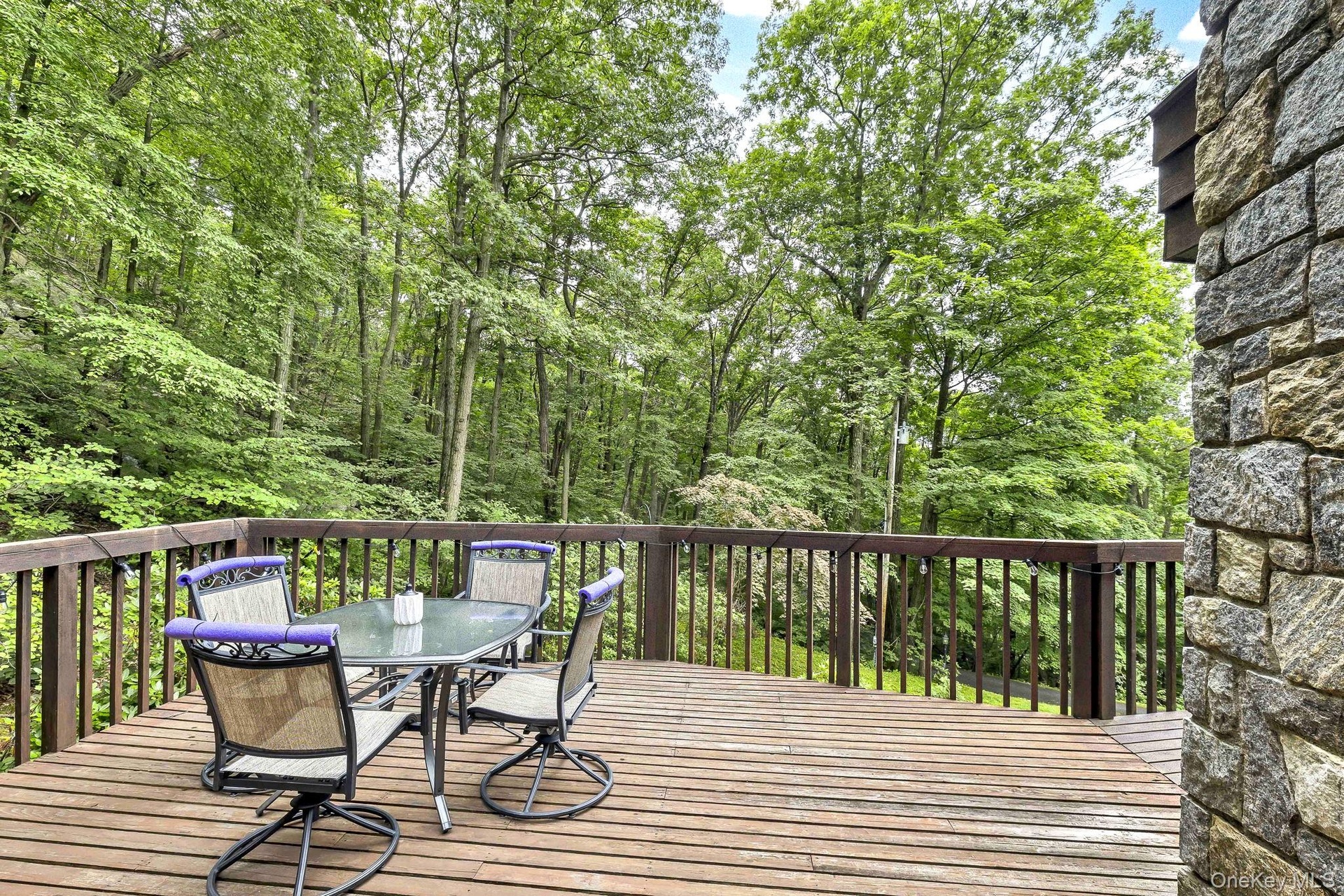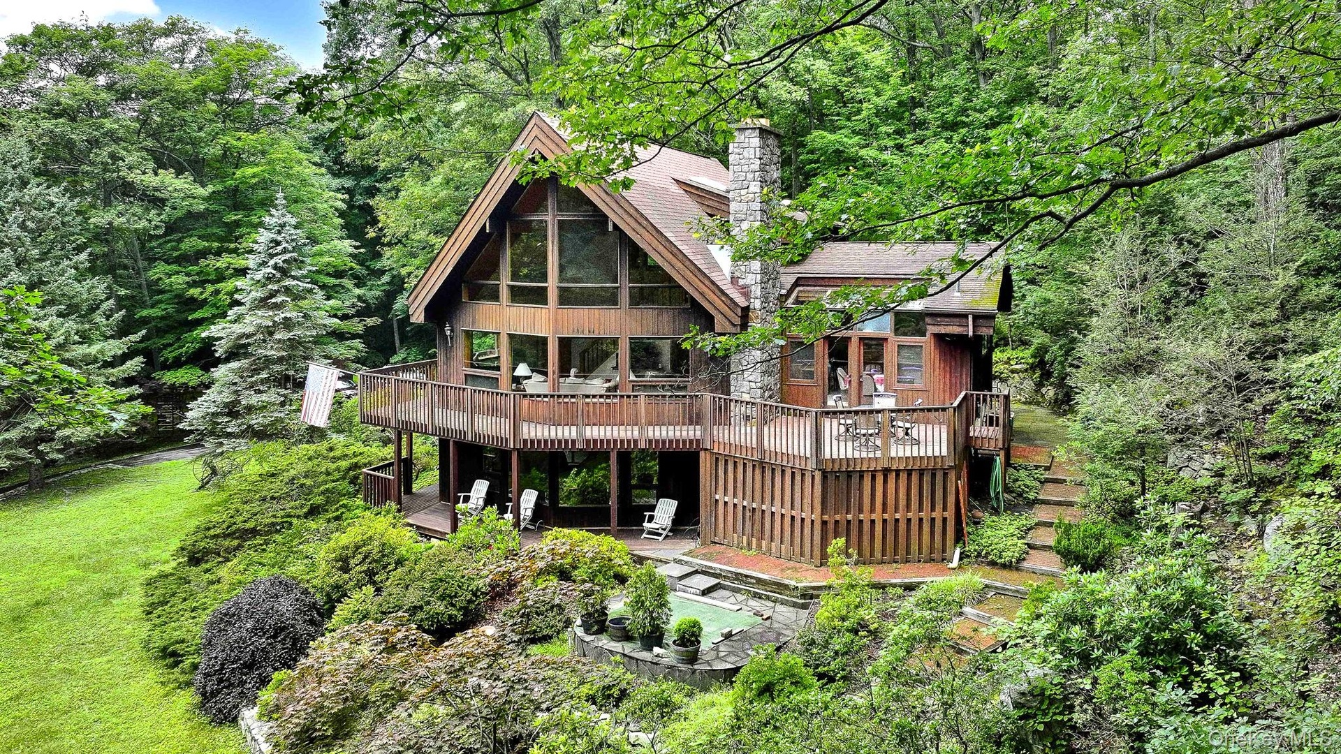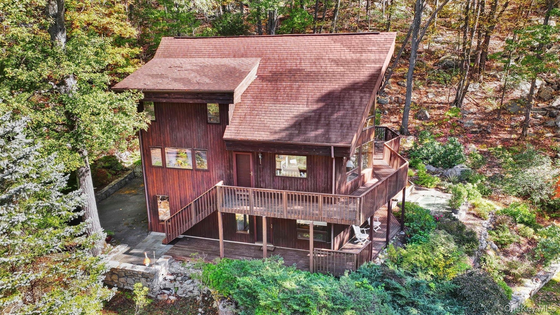 Nestled on a serene, park-like 3.8-acre lot in beautiful Garrison, this custom-built Lindal Cedar Home offers a rare blend of natural beauty, privacy, and convenience. Home backs up to and has direct access to the NYS Appalachian Trail so no additional home can be built around this property. This 3-bedroom, 3-bath contemporary home is the perfect escape from the hustle and bustle of everyday life. Step into the spacious living room with its striking prow front, soaring cedar-beamed ceilings, and a dramatic wall of windows that flood the space with natural light and frame stunning woodland views. A floor-to-ceiling stone fireplace adds warmth and character, while 18-inch insulation throughout ensures energy efficiency year-round. The open-concept eat-in kitchen features floor-to-ceiling windows, double ovens, newer stainless steel appliances, and expansive wraparound Corian counters ideal for prep, dining, and entertaining. Glass doors lead out to the deck—perfect for morning coffee surrounded by nature.  The main level includes two bedrooms and a full bath. Upstairs, the private primary suite offers a peaceful retreat with its own deck, full ensuite bath with jacuzzi tub, and scenic views.The walkout lower level boasts a large family room with chimney hookup for a wood or pellet stove, a third full bathroom, a spacious laundry room, and access to the utility area featuring a Culligan water filter system, whole-house water filter, and boiler. You also find additional storage space and direct entry to the two-car garage. Outside, enjoy multiple outdoor living spaces including a wraparound deck and two stone patios, and slate slab with electric hookup for Hot Tub. All surrounded by tranquil woods. Spacious shed with loft for storage and your outdoor equipment. Shed has a new roof. The private road and entire driveway is paved.  The property is zoned mixed use with the option of an 800 sf attached or separate unit that can be added to the property (office, garage, apartment etc). Roof is 8 years old.