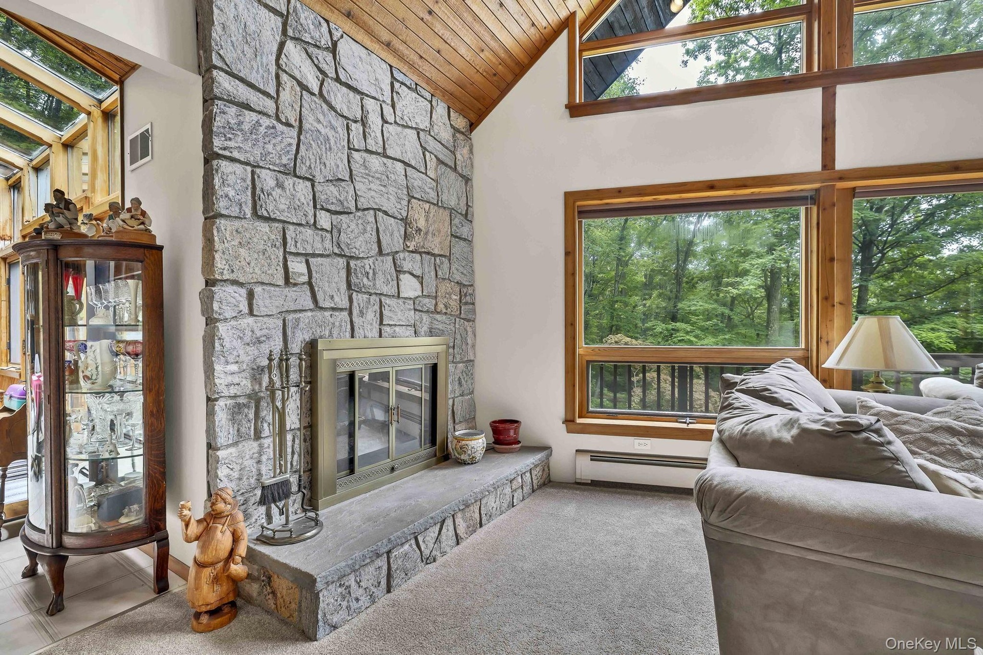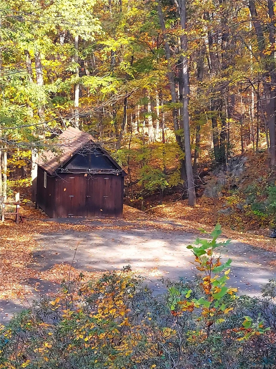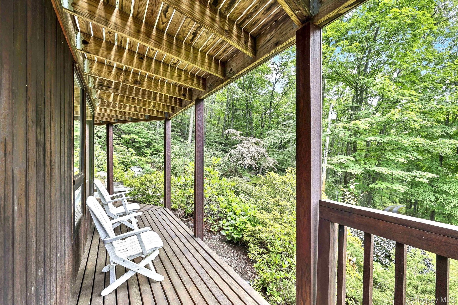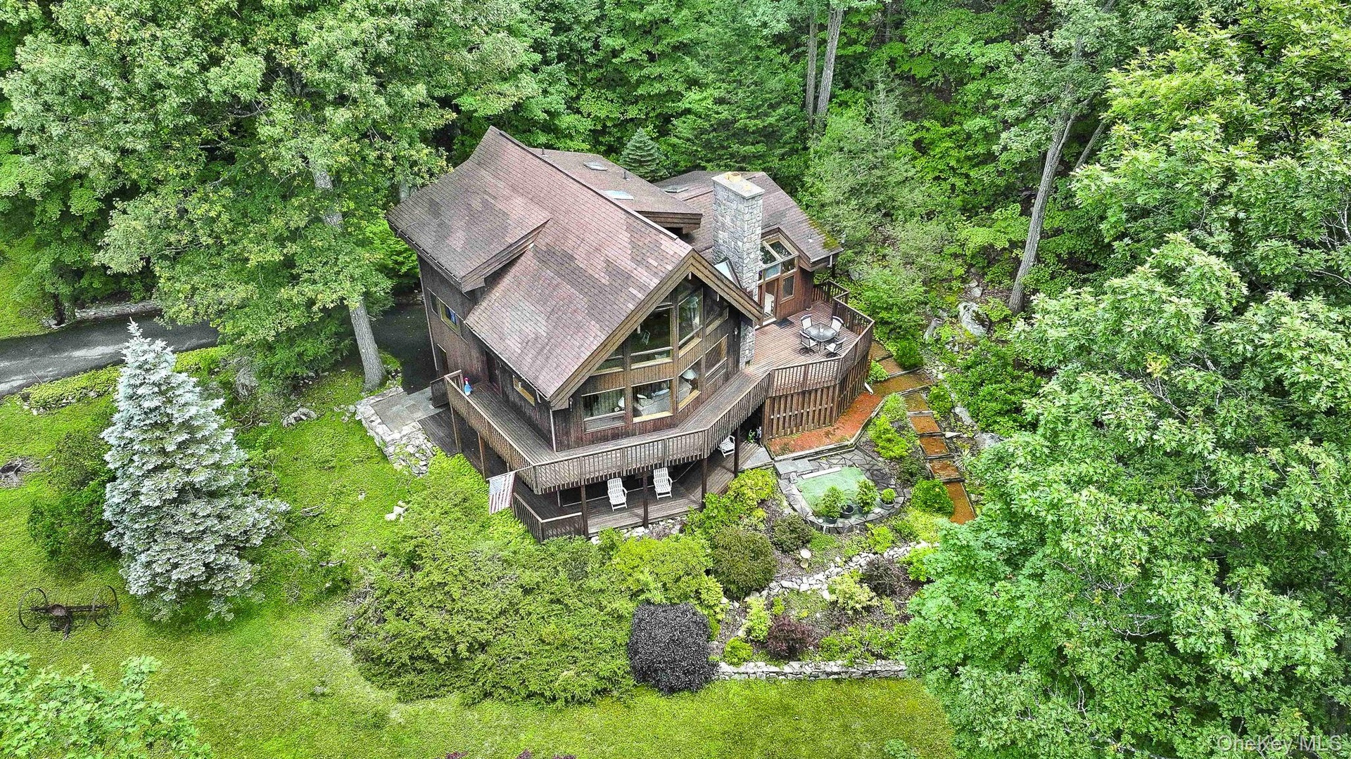 Nestled on a serene, park-like 3.8-acre lot in beautiful Garrison, this custom-built Lindal Cedar Home offers a rare blend of natural beauty, privacy, and convenience. Home backs up to and has direct access to the NYS Appalachian Trail so no additional home can be built around this property. This 3-bedroom, 3-bath contemporary home is the perfect escape from the hustle and bustle of everyday life. Step into the spacious living room with its striking prow front, soaring cedar-beamed ceilings, and a dramatic wall of windows that flood the space with natural light and frame stunning woodland views. A floor-to-ceiling stone fireplace adds warmth and character, while 18-inch insulation throughout ensures energy efficiency year-round. The open-concept eat-in kitchen features floor-to-ceiling windows, double ovens, newer stainless steel appliances, and expansive wraparound Corian counters ideal for prep, dining, and entertaining. Glass doors lead out to the deck—perfect for morning coffee surrounded by nature.  The main level includes two bedrooms and a full bath. Upstairs, the private primary suite offers a peaceful retreat with its own deck, full ensuite bath with jacuzzi tub, and scenic views.The walkout lower level boasts a large family room with chimney hookup for a wood or pellet stove, a third full bathroom, a spacious laundry room, and access to the utility area featuring a Culligan water filter system, whole-house water filter, and boiler. You also find additional storage space and direct entry to the two-car garage. Outside, enjoy multiple outdoor living spaces including a wraparound deck and two stone patios, and slate slab with electric hookup for Hot Tub. All surrounded by tranquil woods. Spacious shed with loft for storage and your outdoor equipment. Shed has a new roof. The private road and entire driveway is paved.  The property is zoned mixed use with the option of an 800 sf attached or separate unit that can be added to the property (office, garage, apartment etc). Roof is 8 years old.
