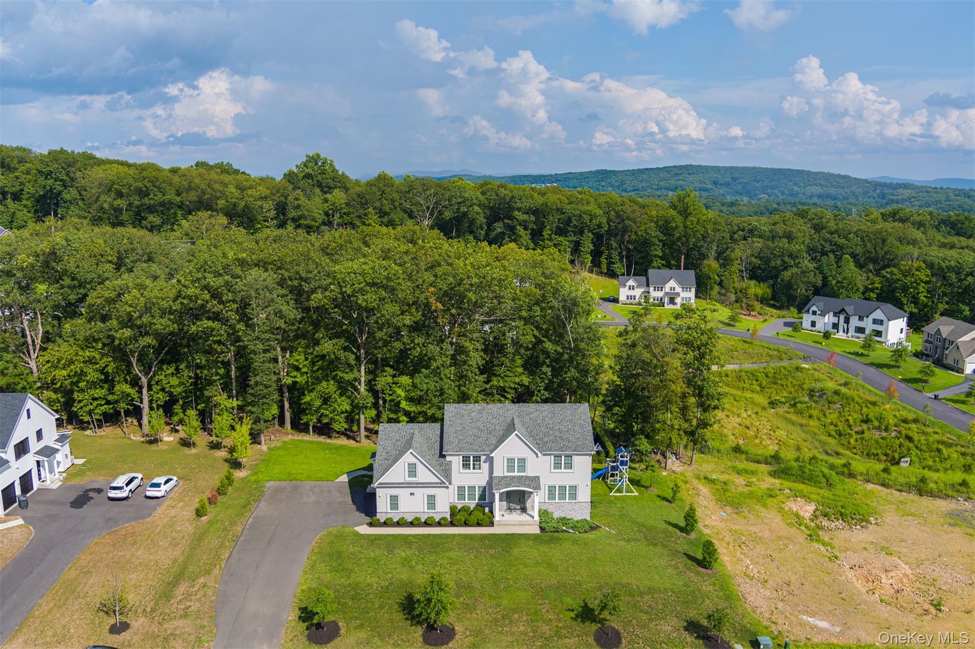 - Aerial perspective of suburban area featuring a heavily wooded area