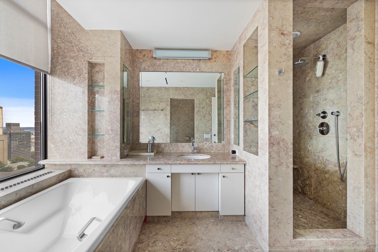 A private keyed elevator opens directly onto a dedicated landing, revealing the entire 41st floor of this extraordinary duplex residence. Encompassing approximately 6,050 square feet of interior space and 730 square feet of private outdoor space, this 15 room, 6-bedroom, 4.5-bathroom home offers sweeping, unobstructed views of the skyline, river, and surrounding parks. With exposures to the north, south, east, and west, natural light floods every corner of the home throughout the day.