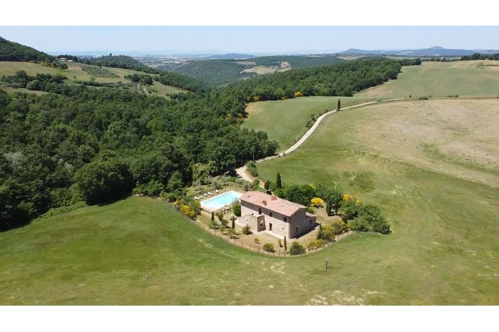 The property is located on a hill between the medieval village of Monticchiello and the historic towns of Montepulciano and Pienza and enjoys breathtaking views of the beautiful landscape of the Val d'Orcia.