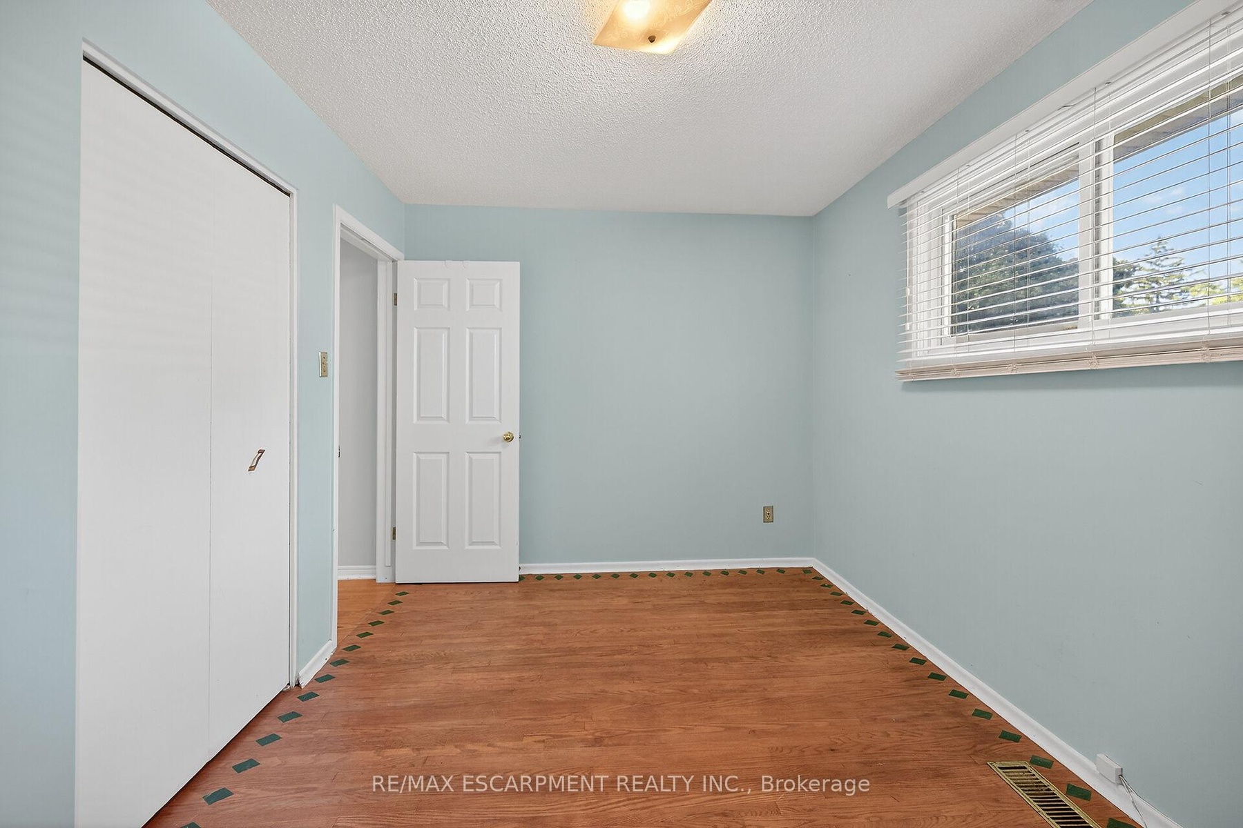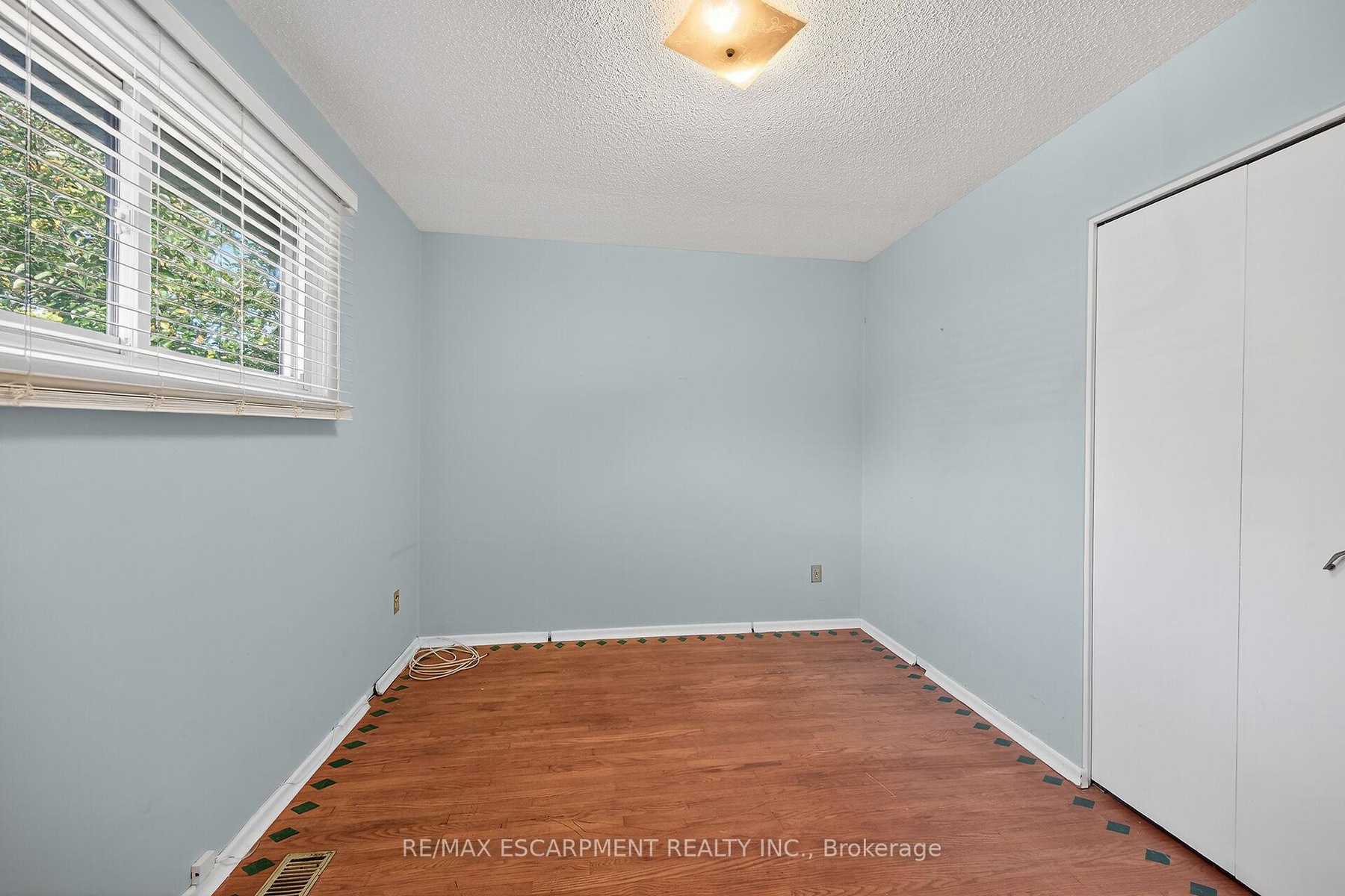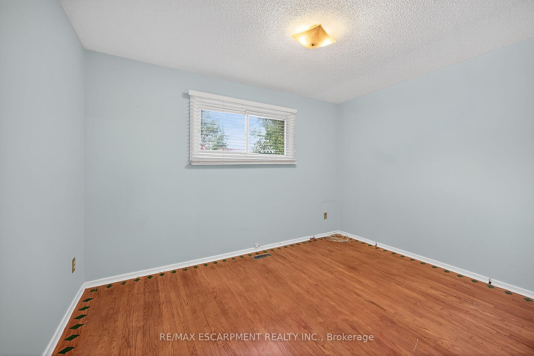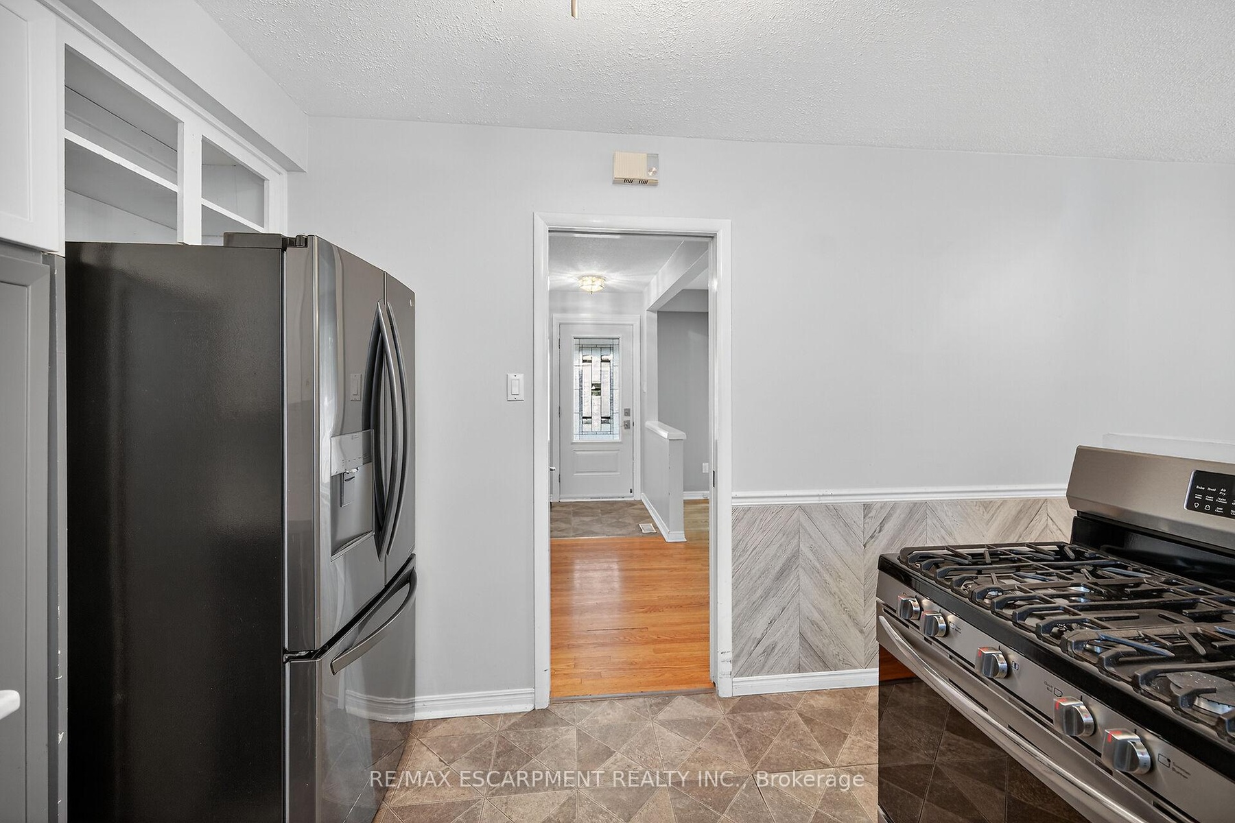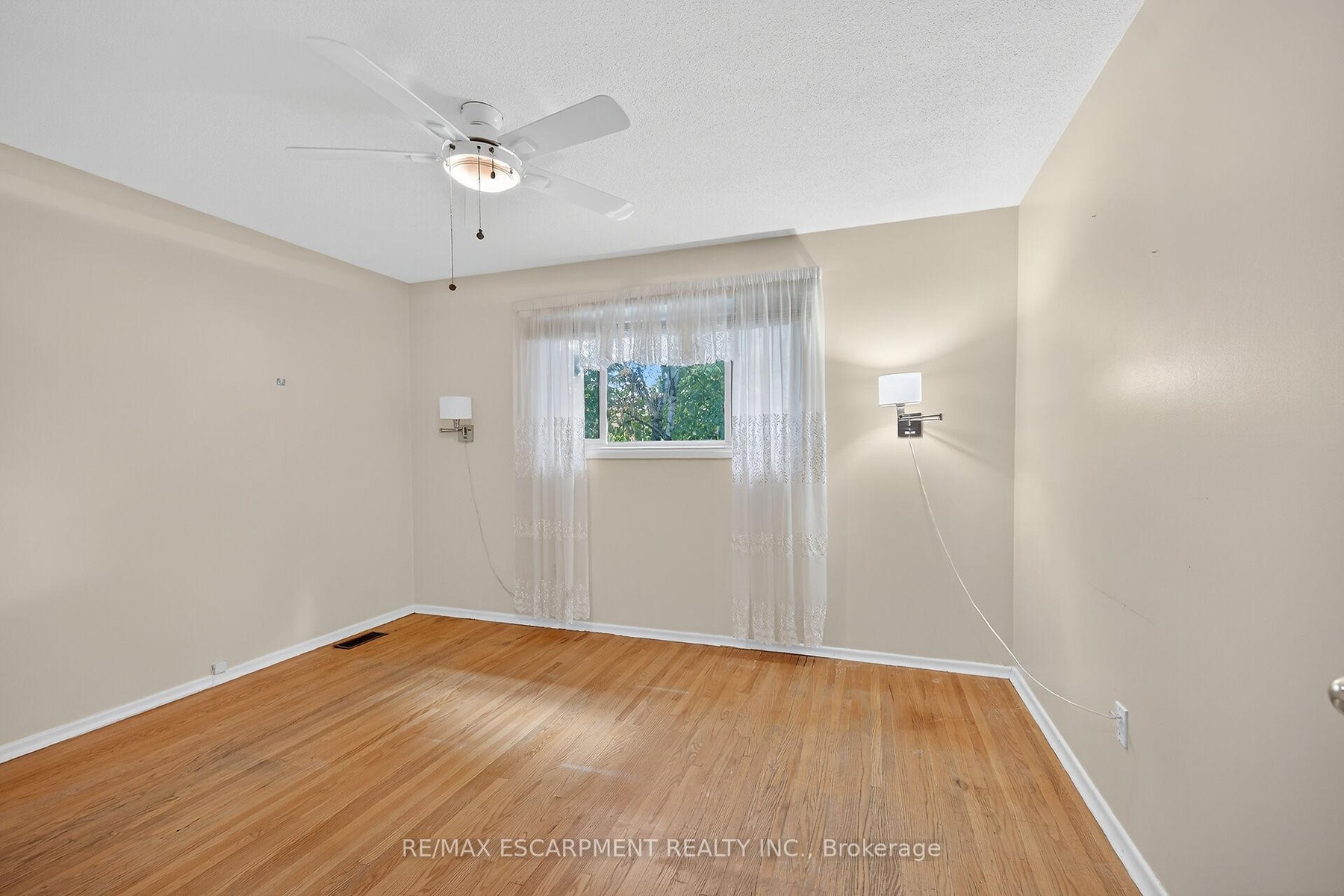 Warm & inviting fully finished 3 bedroom side split with two gas fireplaces in desirable family friendly east mountain location featuring handy oversized 14'1 x 23'11 garage with hydro. Hardwood flooring throughout living room, dining room, hallway & all bedrooms. Main floor offers bright living room with gas fireplace with oak surround, dining room with access to rear yard & kitchen with stainless steel appliances. Second floor features three good sized carpet-free bedrooms & updated bath with accessible jetted tub (2019). Large lower level rec room showcases corner gas fireplace with lovely custom oak surround & newer carpeting (2025). Central air (2023). 100 amps on breakers (2025). Eaves with gutter guards. Fully fenced lot with 6'6 x 26'10 covered concrete patio & 9'9 x 9'4 deck. Quick & easy access to Linc. Close to all amenities. Only minutes to Limeridge Mall.