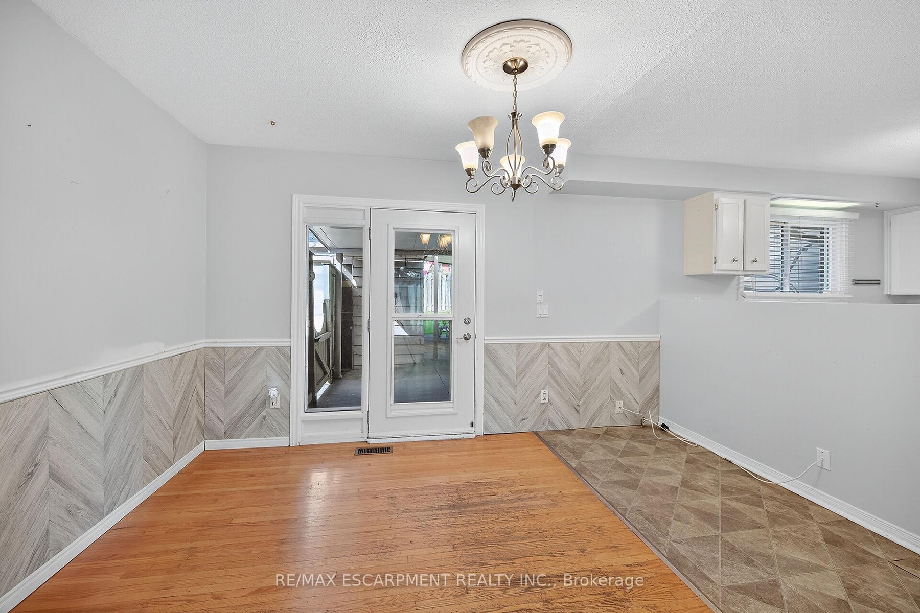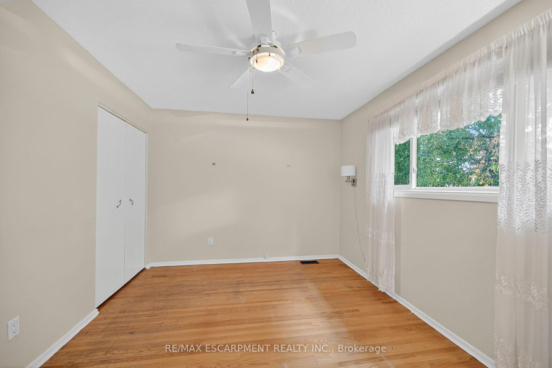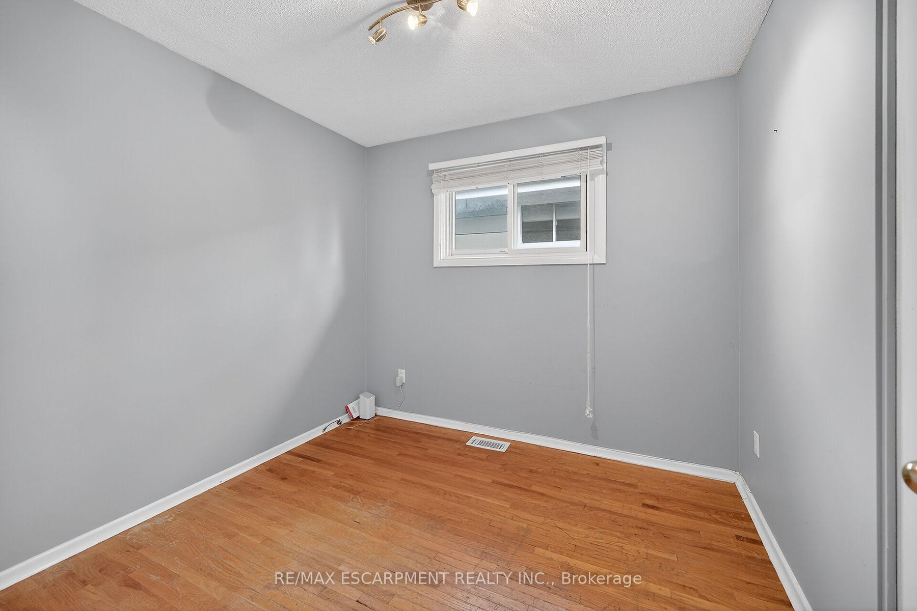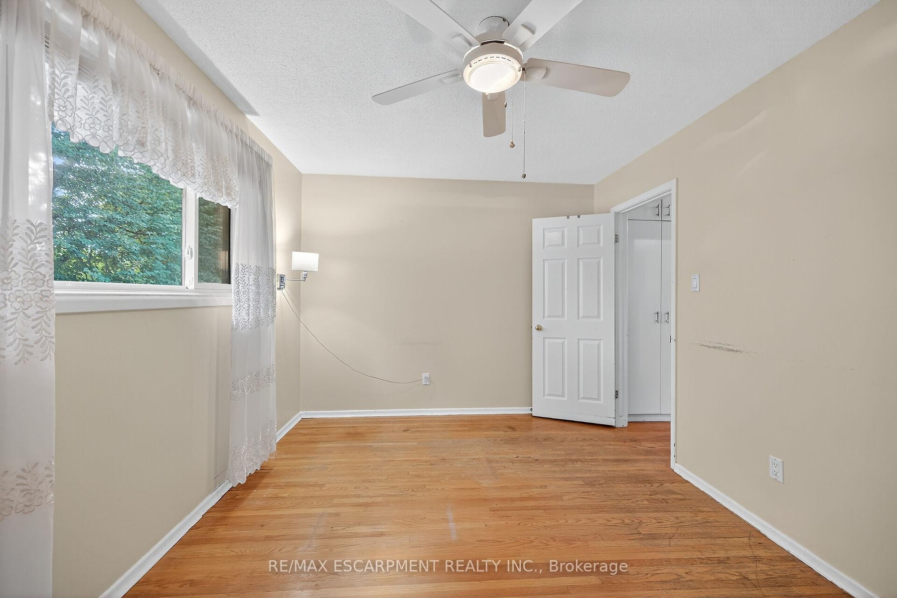 Warm & inviting fully finished 3 bedroom side split with two gas fireplaces in desirable family friendly east mountain location featuring handy oversized 14'1 x 23'11 garage with hydro. Hardwood flooring throughout living room, dining room, hallway & all bedrooms. Main floor offers bright living room with gas fireplace with oak surround, dining room with access to rear yard & kitchen with stainless steel appliances. Second floor features three good sized carpet-free bedrooms & updated bath with accessible jetted tub (2019). Large lower level rec room showcases corner gas fireplace with lovely custom oak surround & newer carpeting (2025). Central air (2023). 100 amps on breakers (2025). Eaves with gutter guards. Fully fenced lot with 6'6 x 26'10 covered concrete patio & 9'9 x 9'4 deck. Quick & easy access to Linc. Close to all amenities. Only minutes to Limeridge Mall.