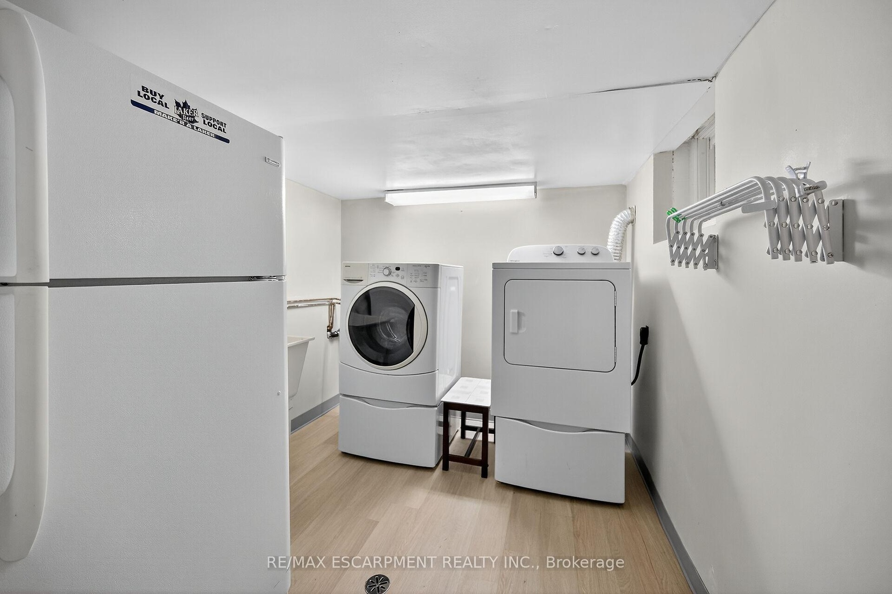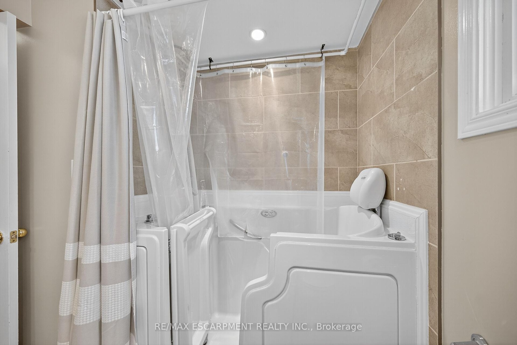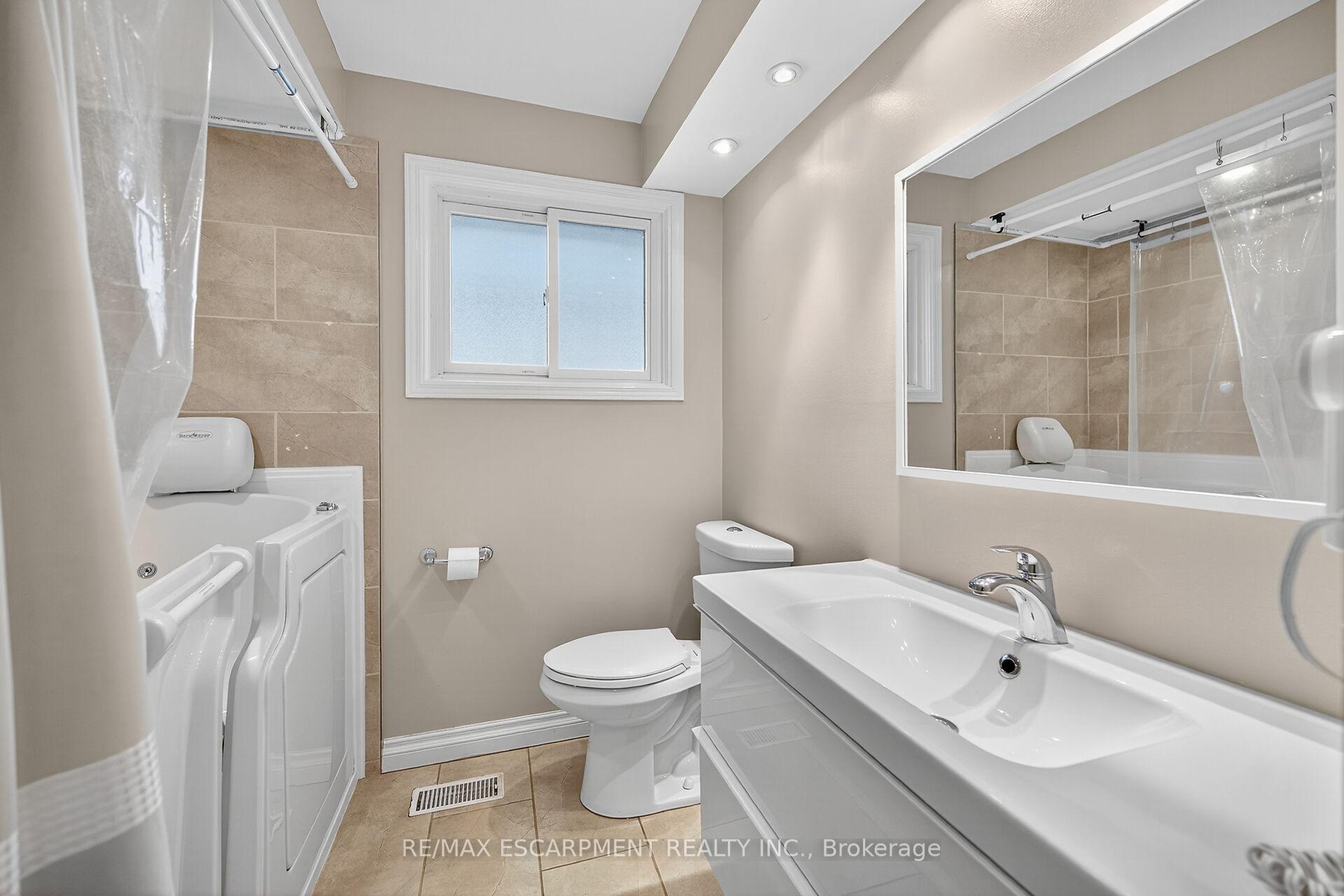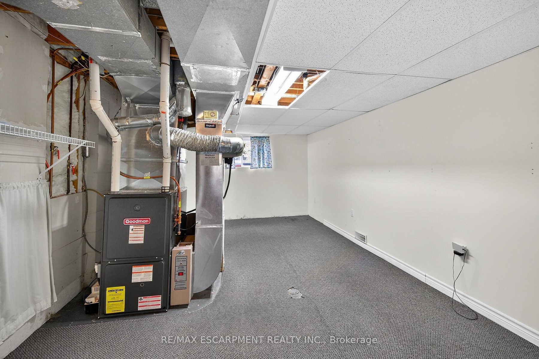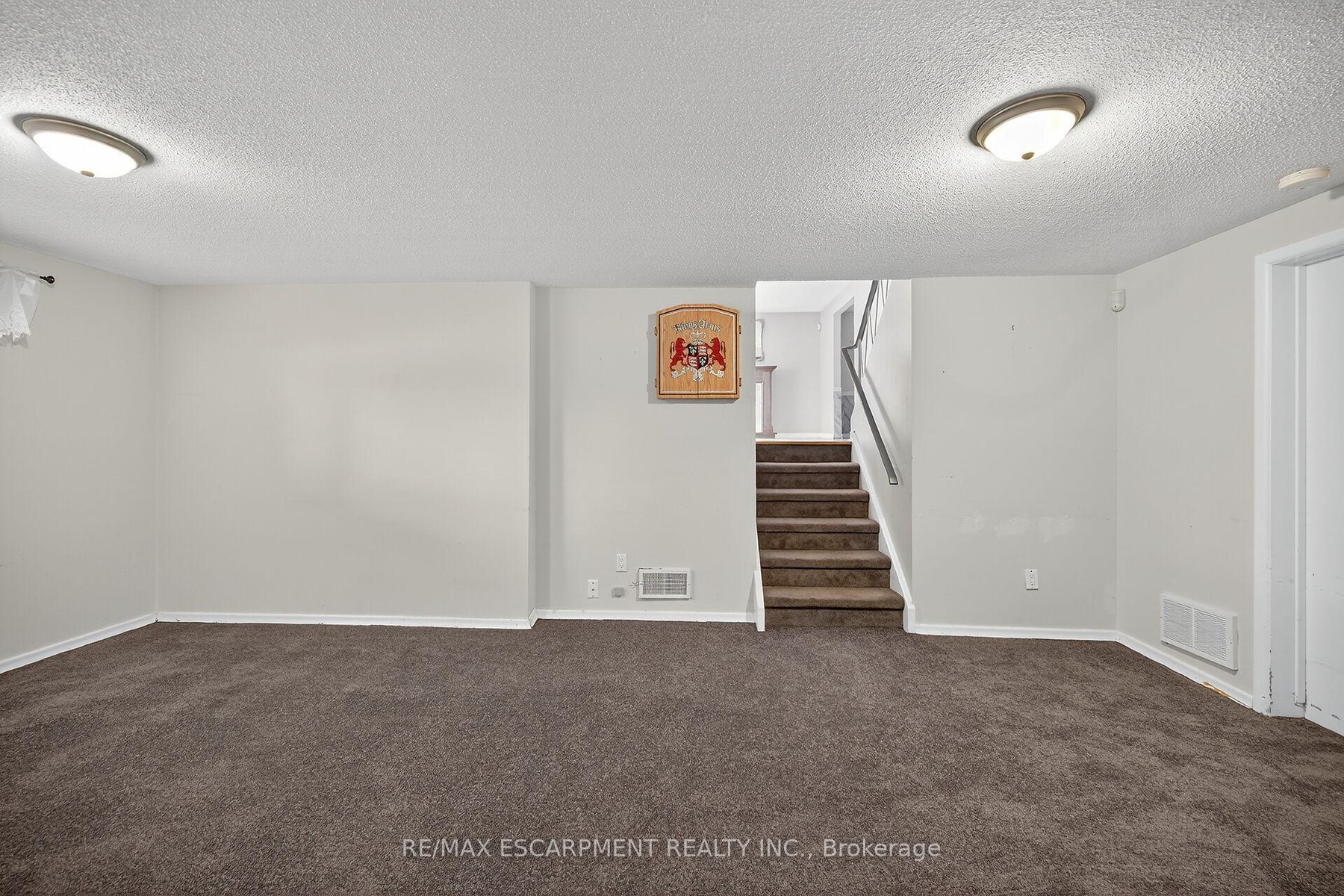 Warm & inviting fully finished 3 bedroom side split with two gas fireplaces in desirable family friendly east mountain location featuring handy oversized 14'1 x 23'11 garage with hydro. Hardwood flooring throughout living room, dining room, hallway & all bedrooms. Main floor offers bright living room with gas fireplace with oak surround, dining room with access to rear yard & kitchen with stainless steel appliances. Second floor features three good sized carpet-free bedrooms & updated bath with accessible jetted tub (2019). Large lower level rec room showcases corner gas fireplace with lovely custom oak surround & newer carpeting (2025). Central air (2023). 100 amps on breakers (2025). Eaves with gutter guards. Fully fenced lot with 6'6 x 26'10 covered concrete patio & 9'9 x 9'4 deck. Quick & easy access to Linc. Close to all amenities. Only minutes to Limeridge Mall.