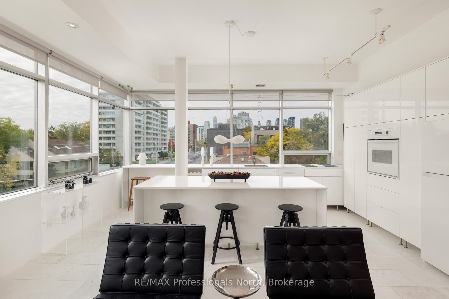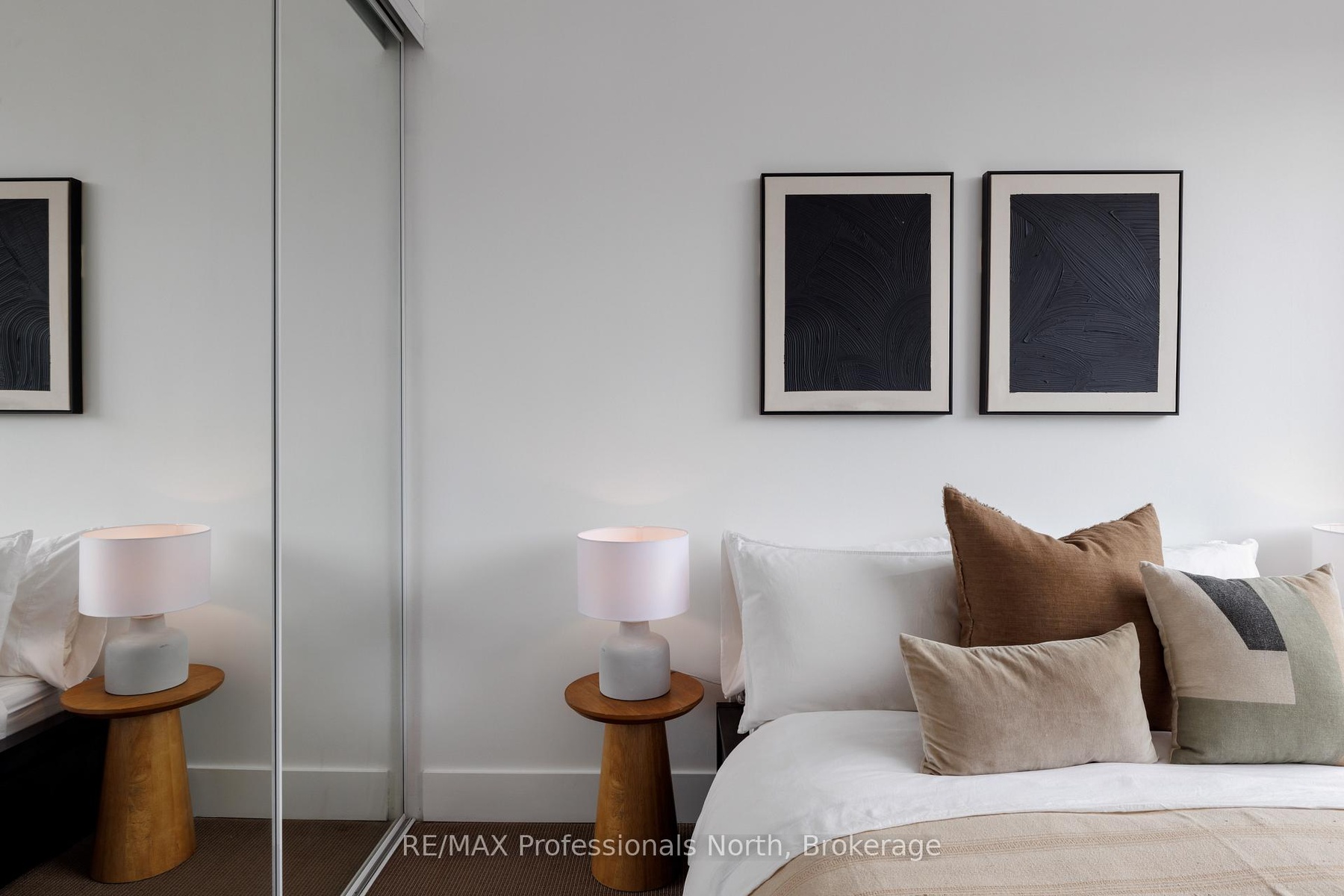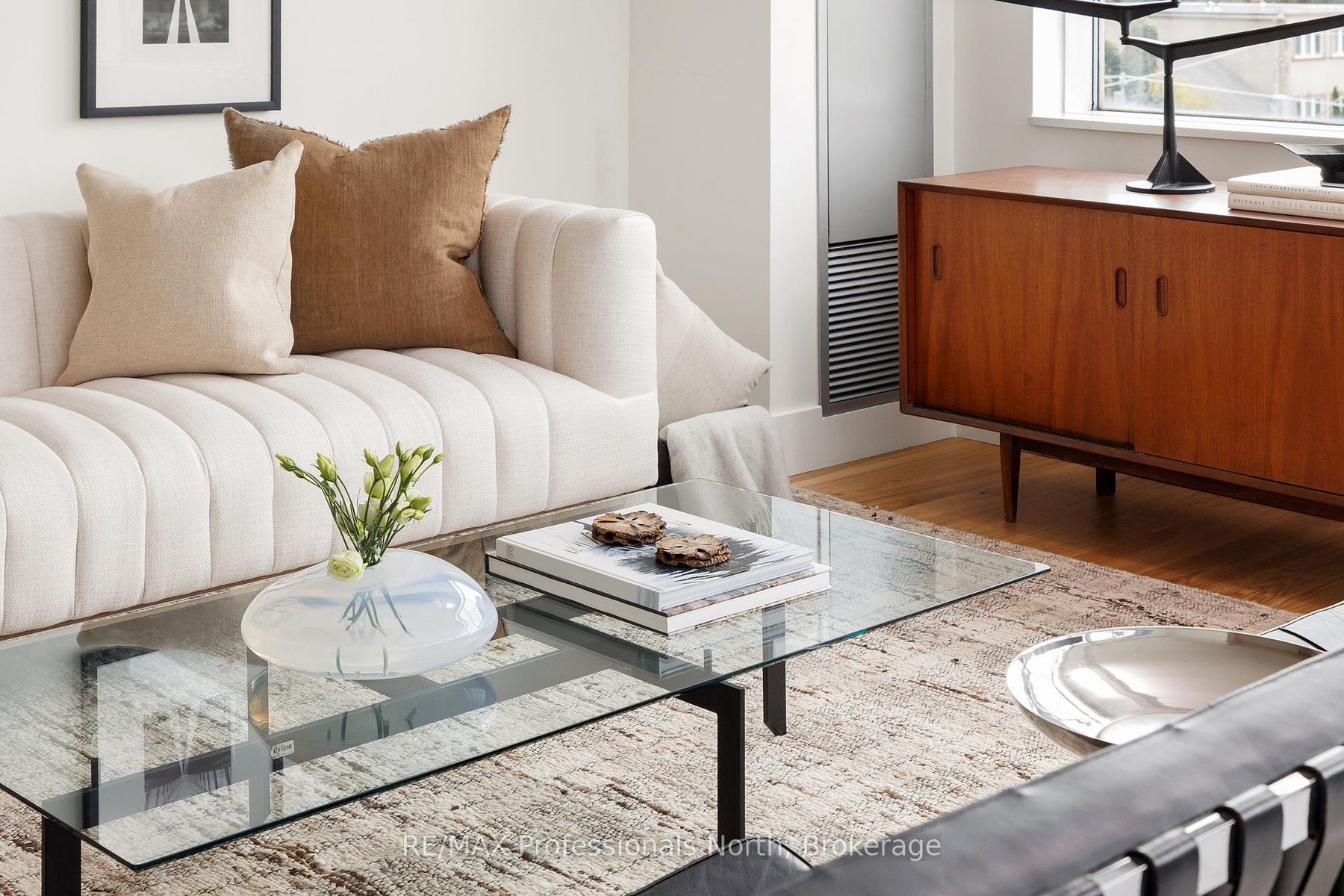 Welcome to The Soho Bayview Lofts. A condo designed for living - open, airy, and effortlessly refined. At almost 1,200sqft with soaring 10ft ceilings, the desirable split bedroom layout offers both volume and warmth in Midtown Toronto's coveted Bayview-Mount Pleasant corridor. This South-West corner suite captures sunlight throughout the day and city views by night, framed through fourteen expansive windows. The open-concept living and dining space is grounded by newly installed engineered oak flooring, seamlessly flowing into a spacious and recently updated custom kitchen, where the surrounding tree canopy and city skyline provides a striking backdrop. A large kitchen island with quartz waterfall counters anchors the space, offering a relaxed alternative for dining with comfortable seating for six. The primary suite is a serene retreat - generous in both scale and privacy, with a large walk-in closet, private ensuite, and additional storage, making everyday living effortless. Both bedrooms can easily accommodate king beds, offering balance and privacy for family, guests, or a quiet work-from-home space. A welcoming foyer, four-piece bathroom, in-suite laundry, and well appointed storage space complete this bright and beautifully proportioned home. Building conveniences include a fitness room, ground floor terrace with BBQ, games room, meeting room & party space. One owned parking spot is included. Enjoy the peace of a quiet boutique building known for its understated elegance - units at the Soho Bayview Lofts are rarely offered for sale. Steps to Bayview and Mount Pleasant; schools, cafés/restaurants, stores, multiple parks, TTC, and the upcoming Eglinton LRT.