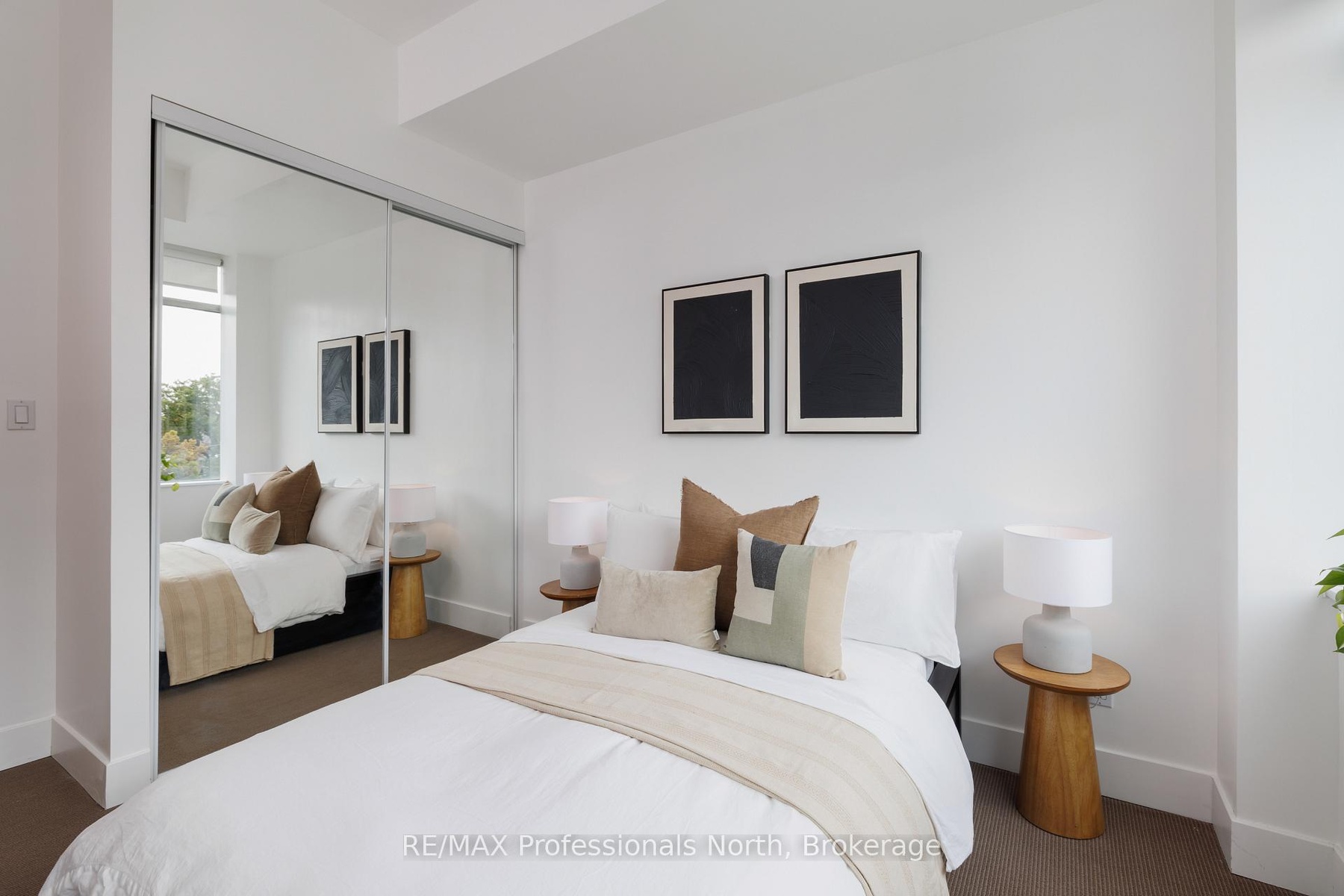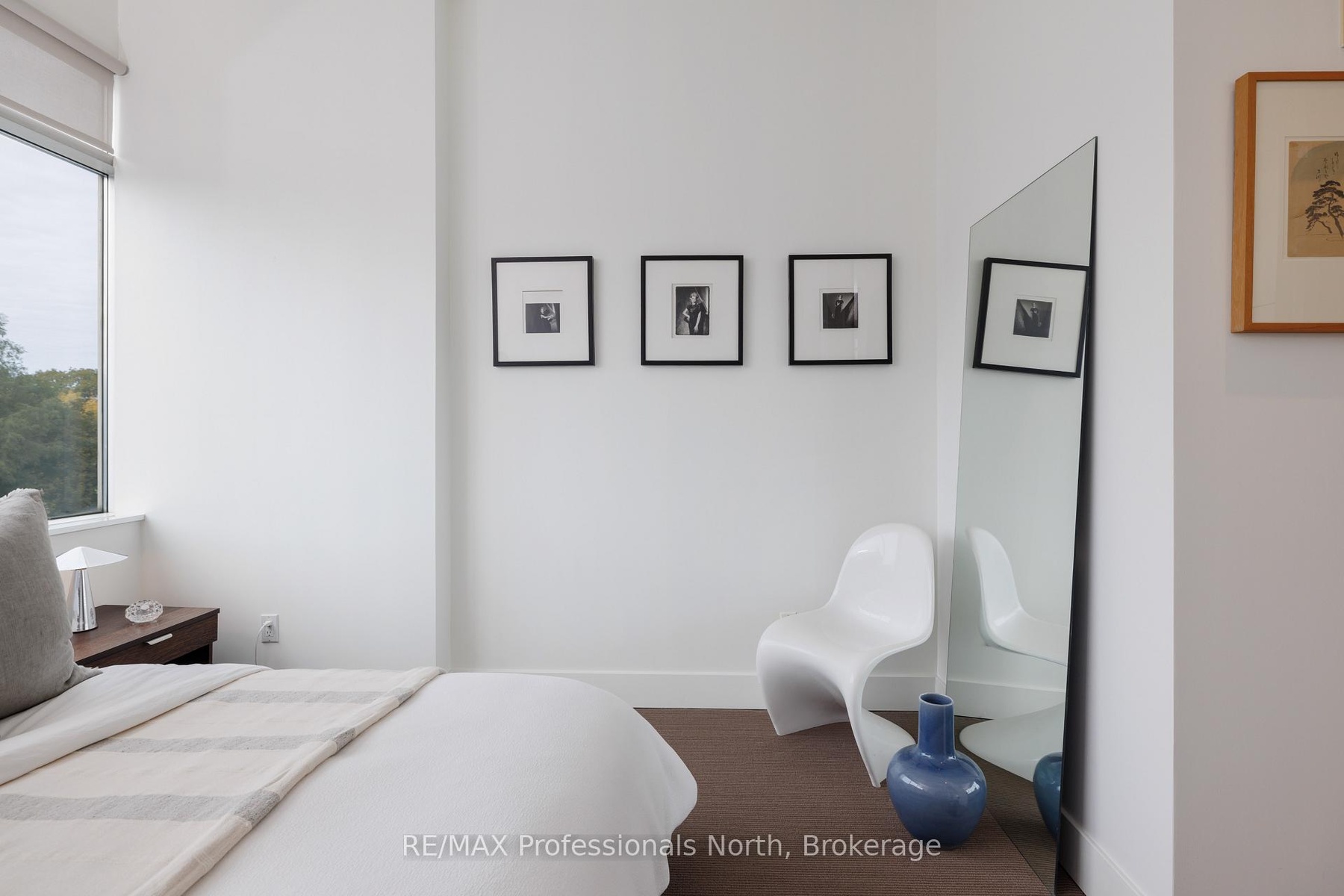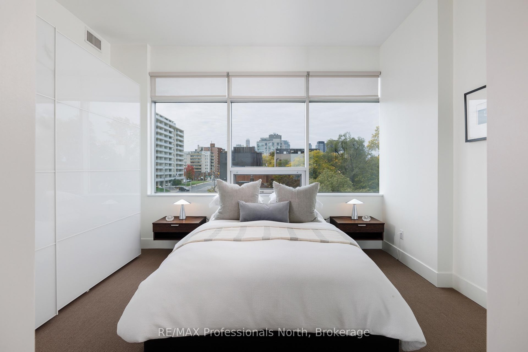 Welcome to The Soho Bayview Lofts. A condo designed for living - open, airy, and effortlessly refined. At almost 1,200sqft with soaring 10ft ceilings, the desirable split bedroom layout offers both volume and warmth in Midtown Toronto's coveted Bayview-Mount Pleasant corridor. This South-West corner suite captures sunlight throughout the day and city views by night, framed through fourteen expansive windows. The open-concept living and dining space is grounded by newly installed engineered oak flooring, seamlessly flowing into a spacious and recently updated custom kitchen, where the surrounding tree canopy and city skyline provides a striking backdrop. A large kitchen island with quartz waterfall counters anchors the space, offering a relaxed alternative for dining with comfortable seating for six. The primary suite is a serene retreat - generous in both scale and privacy, with a large walk-in closet, private ensuite, and additional storage, making everyday living effortless. Both bedrooms can easily accommodate king beds, offering balance and privacy for family, guests, or a quiet work-from-home space. A welcoming foyer, four-piece bathroom, in-suite laundry, and well appointed storage space complete this bright and beautifully proportioned home. Building conveniences include a fitness room, ground floor terrace with BBQ, games room, meeting room & party space. One owned parking spot is included. Enjoy the peace of a quiet boutique building known for its understated elegance - units at the Soho Bayview Lofts are rarely offered for sale. Steps to Bayview and Mount Pleasant; schools, cafés/restaurants, stores, multiple parks, TTC, and the upcoming Eglinton LRT.