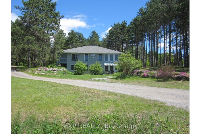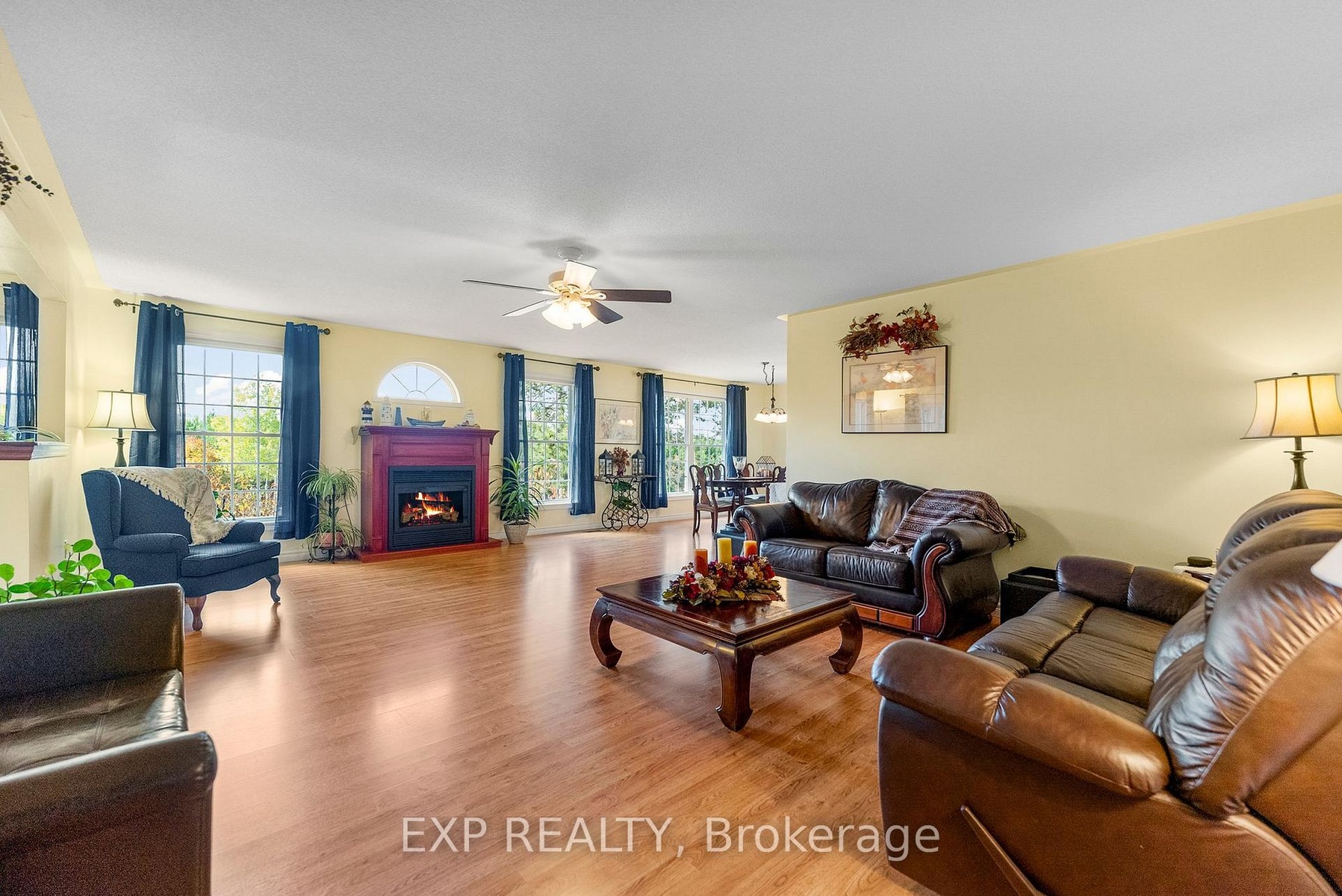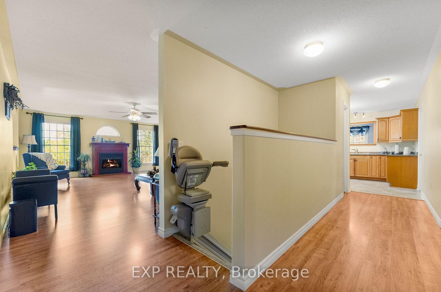 Welcome to 10 Cybulski Road in beautiful Barrys Bay, Ontario. This custom-built bungalow with a walkout basement offers over an acre of park-like property and approximately 3,800 sq. ft. of sun-filled living space. Perfect for multigenerational living or an in-law suite, this home combines country tranquility with in-town convenience -- just a short walk to shops and amenities.The main level features an open-concept living and dining area with a cozy propane fireplace and a bright sunroom, ideal for birdwatching or evening stargazing. The spacious kitchen offers abundant cabinetry, a large island, walk-in pantry, and a handy office nook. The primary bedroom includes his-and-hers closets and a luxurious ensuite with double sinks, jetted tub, and walk-in shower. A second bedroom (currently used as an office) and a full 3-piece bath complete the main floor. A welcoming side foyer opens to a charming sitting area and covered porch, the perfect spot to enjoy morning coffee or watch the sunset.The lower level is bright and inviting with radiant in-floor heat throughout, featuring a spacious family room with propane fireplace, a well-appointed kitchenette, two additional bedrooms, a 3-piece bath, laundry, and ample storage. The sunroom opens to a private deck with retractable awning, surrounded by lush perennial gardens and a peaceful, natural setting.The attached insulated double garage offers inside access to both levels. A rear ramp leads to a fenced yard ideal for children or pets. With no front or rear neighbours, wide hallways, and accessible design, this home offers both comfort and privacy. Extras include an 8x14 garden shed, new roof shingles (2023), new upstairs fridge and washer (2024), and an optional high-end stairlift.