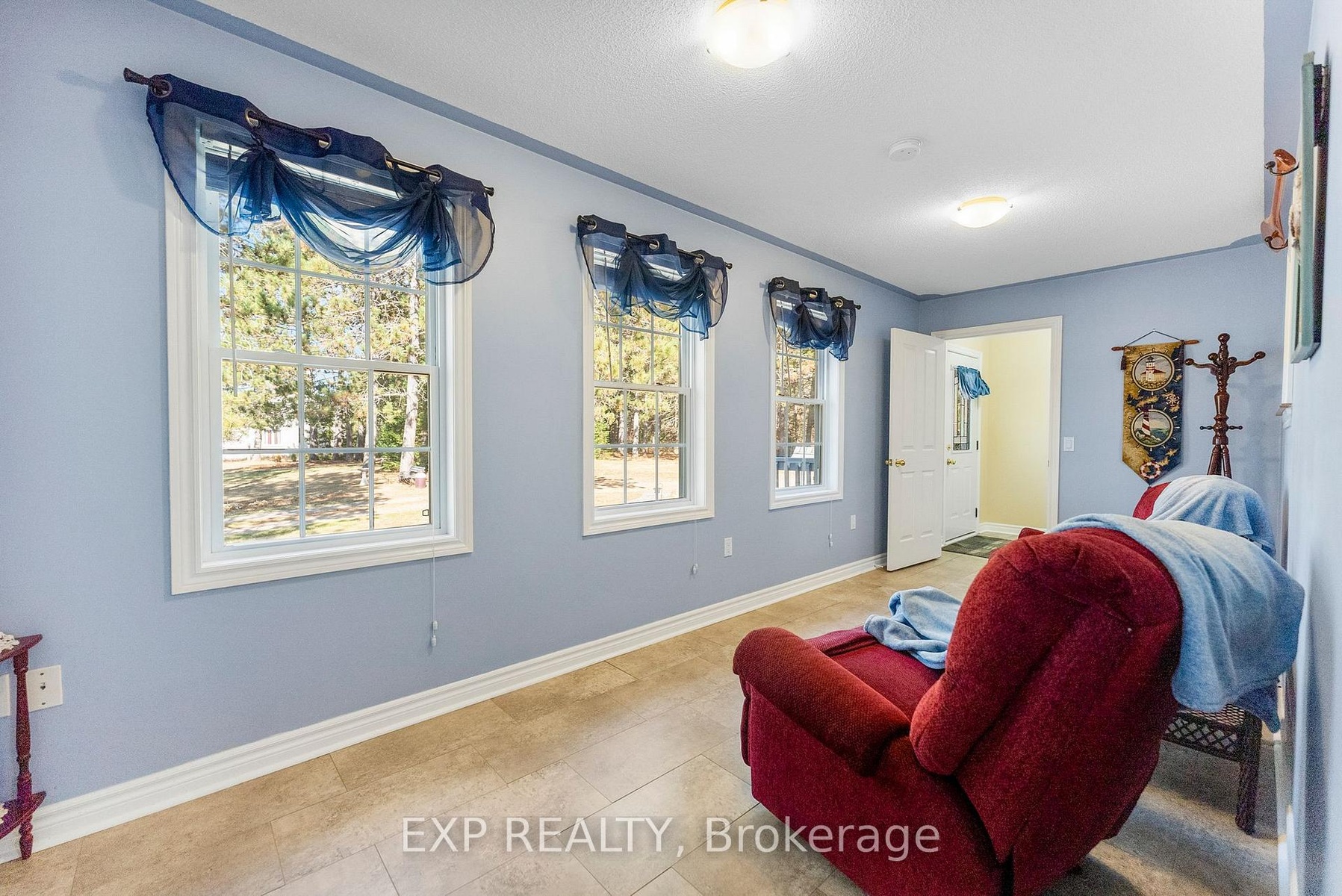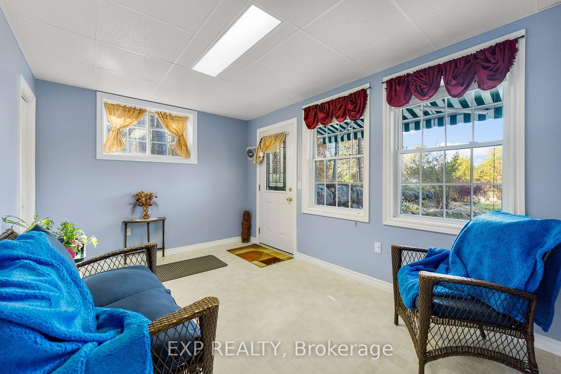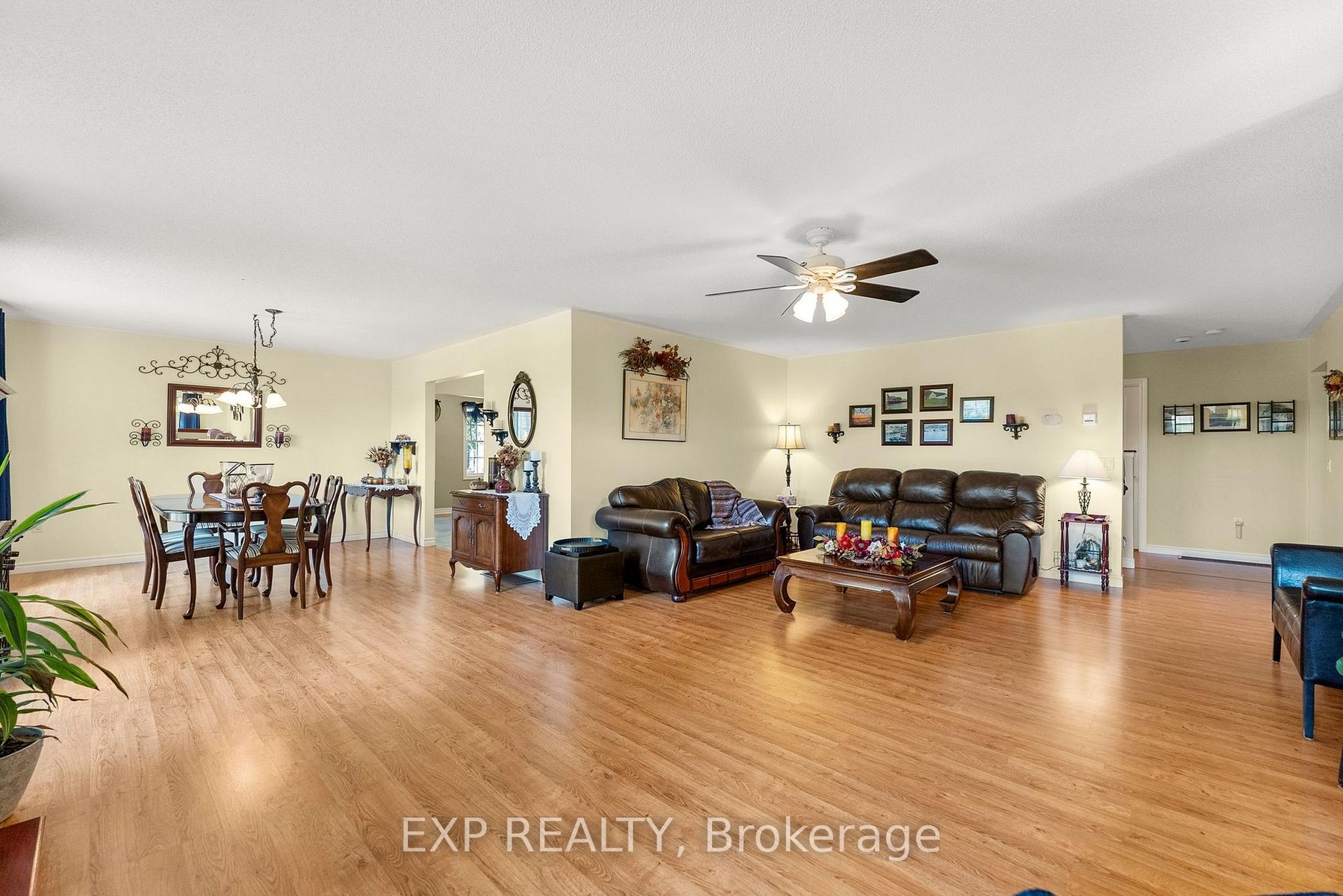 Welcome to 10 Cybulski Road in beautiful Barrys Bay, Ontario. This custom-built bungalow with a walkout basement offers over an acre of park-like property and approximately 3,800 sq. ft. of sun-filled living space. Perfect for multigenerational living or an in-law suite, this home combines country tranquility with in-town convenience -- just a short walk to shops and amenities.The main level features an open-concept living and dining area with a cozy propane fireplace and a bright sunroom, ideal for birdwatching or evening stargazing. The spacious kitchen offers abundant cabinetry, a large island, walk-in pantry, and a handy office nook. The primary bedroom includes his-and-hers closets and a luxurious ensuite with double sinks, jetted tub, and walk-in shower. A second bedroom (currently used as an office) and a full 3-piece bath complete the main floor. A welcoming side foyer opens to a charming sitting area and covered porch, the perfect spot to enjoy morning coffee or watch the sunset.The lower level is bright and inviting with radiant in-floor heat throughout, featuring a spacious family room with propane fireplace, a well-appointed kitchenette, two additional bedrooms, a 3-piece bath, laundry, and ample storage. The sunroom opens to a private deck with retractable awning, surrounded by lush perennial gardens and a peaceful, natural setting.The attached insulated double garage offers inside access to both levels. A rear ramp leads to a fenced yard ideal for children or pets. With no front or rear neighbours, wide hallways, and accessible design, this home offers both comfort and privacy. Extras include an 8x14 garden shed, new roof shingles (2023), new upstairs fridge and washer (2024), and an optional high-end stairlift.