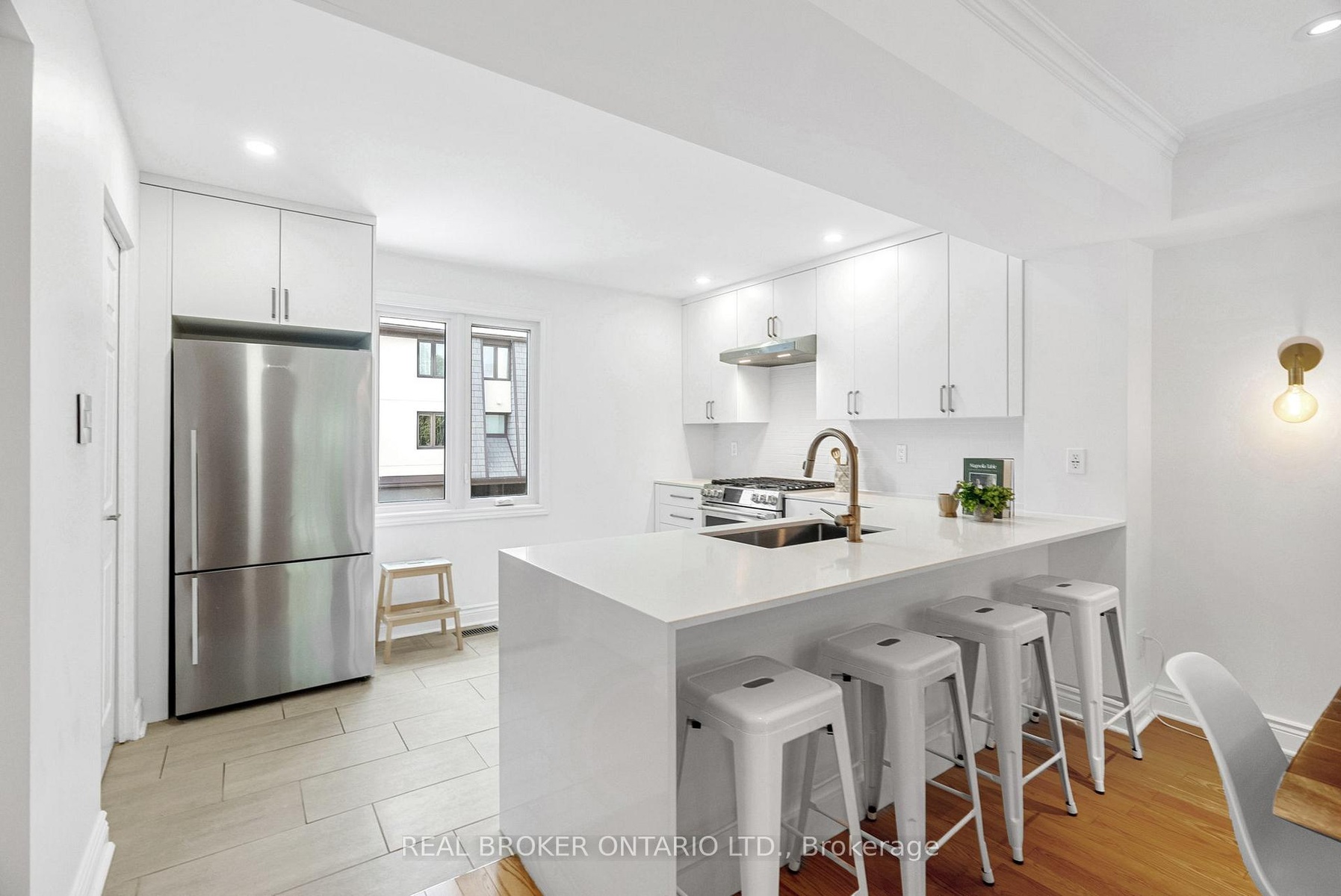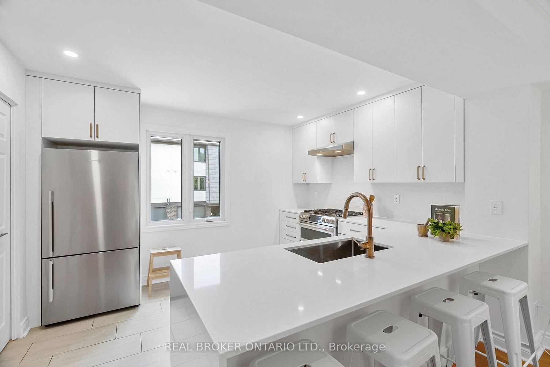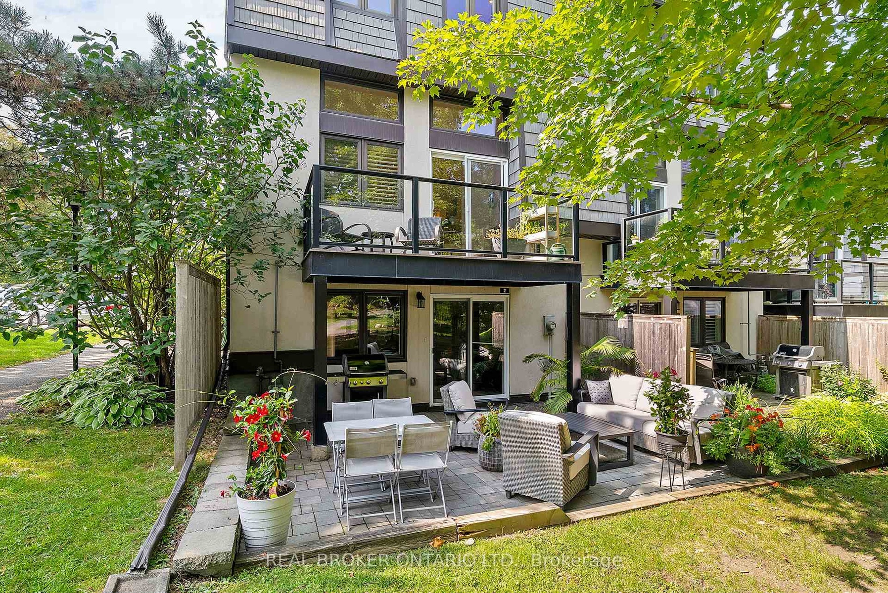 Rarely offered end-unit townhome backing onto a tranquil community park in the heart of McKellar Park/Westboro! This beautifully updated 3-bedroom, 2.5-bathroom home blends style, comfort, and lifestyle in one of Ottawa's most desirable locations - just a short walk to Westboro Village shops, exceptional dining, NCC trails, and the upcoming Sherbourne LRT station. Inside, dramatic 11 ft ceilings and abundant windows flood the space with natural light, creating an airy, open-concept design. The updated kitchen showcases custom cabinetry, quartz countertops with breakfast bar, glazed subway tile backsplash, and high-end stainless steel appliances including a gas range. A stylish dining area and spacious living room open directly onto a private glass-enclosed balcony, perfect for morning coffee or evening relaxation. A convenient laundry room completes this level. The third level features a large primary suite that offers built-in closets and a renovated ensuite, while two additional bedrooms and a full bathroom provide comfort and flexibility for family or guests. Hardwood flooring spans both the second and third levels, adding warmth and character throughout the living spaces. The walk-out lower level includes a family room with fireplace that could double as a home gym or media room, powder room, and direct access to a recently updated interlock patio overlooking the peaceful park-like setting, a perfect outdoor retreat. With thoughtful updates throughout, a spacious layout, and a well-managed, pet-friendly community, this home offers the ease of low-maintenance condo living with the feel of a semi-detached property. Located in the Broadview/Nepean school catchment, this rare end-unit opportunity is one you won't want to miss! ***OPEN HOUSE, SUNDAY OCT 19TH, 2-4PM***