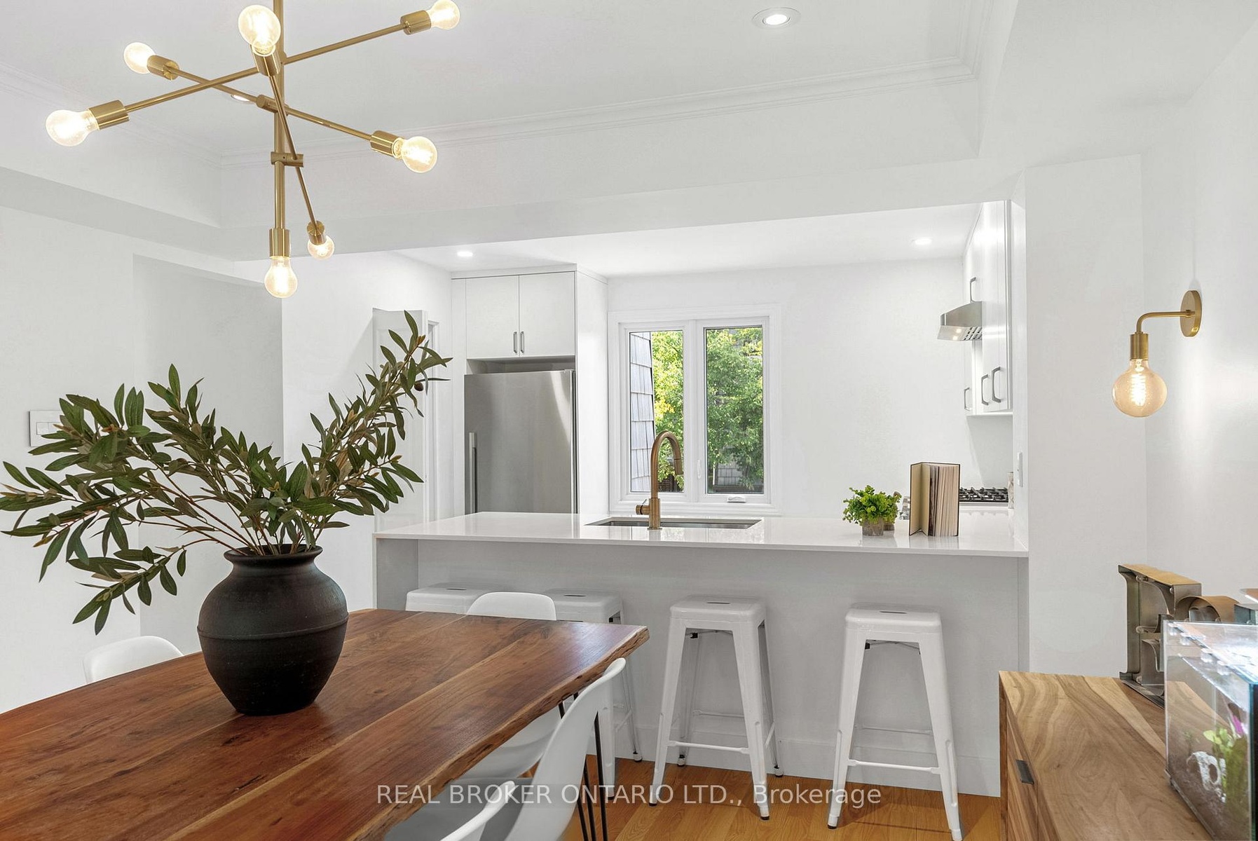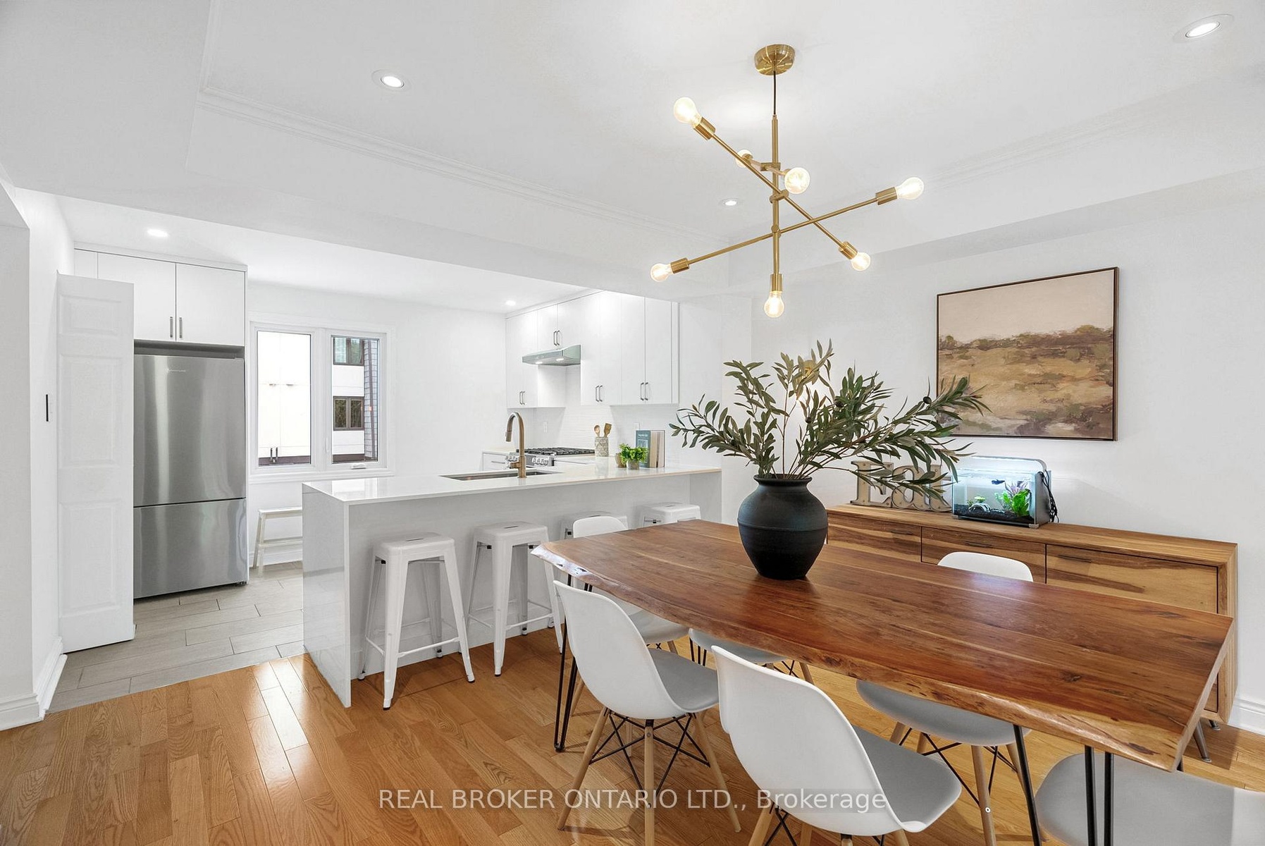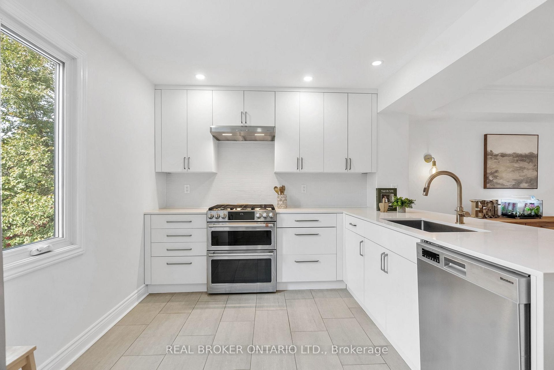 Rarely offered end-unit townhome backing onto a tranquil community park in the heart of McKellar Park/Westboro! This beautifully updated 3-bedroom, 2.5-bathroom home blends style, comfort, and lifestyle in one of Ottawa's most desirable locations - just a short walk to Westboro Village shops, exceptional dining, NCC trails, and the upcoming Sherbourne LRT station. Inside, dramatic 11 ft ceilings and abundant windows flood the space with natural light, creating an airy, open-concept design. The updated kitchen showcases custom cabinetry, quartz countertops with breakfast bar, glazed subway tile backsplash, and high-end stainless steel appliances including a gas range. A stylish dining area and spacious living room open directly onto a private glass-enclosed balcony, perfect for morning coffee or evening relaxation. A convenient laundry room completes this level. The third level features a large primary suite that offers built-in closets and a renovated ensuite, while two additional bedrooms and a full bathroom provide comfort and flexibility for family or guests. Hardwood flooring spans both the second and third levels, adding warmth and character throughout the living spaces. The walk-out lower level includes a family room with fireplace that could double as a home gym or media room, powder room, and direct access to a recently updated interlock patio overlooking the peaceful park-like setting, a perfect outdoor retreat. With thoughtful updates throughout, a spacious layout, and a well-managed, pet-friendly community, this home offers the ease of low-maintenance condo living with the feel of a semi-detached property. Located in the Broadview/Nepean school catchment, this rare end-unit opportunity is one you won't want to miss! ***OPEN HOUSE, SUNDAY OCT 19TH, 2-4PM***
