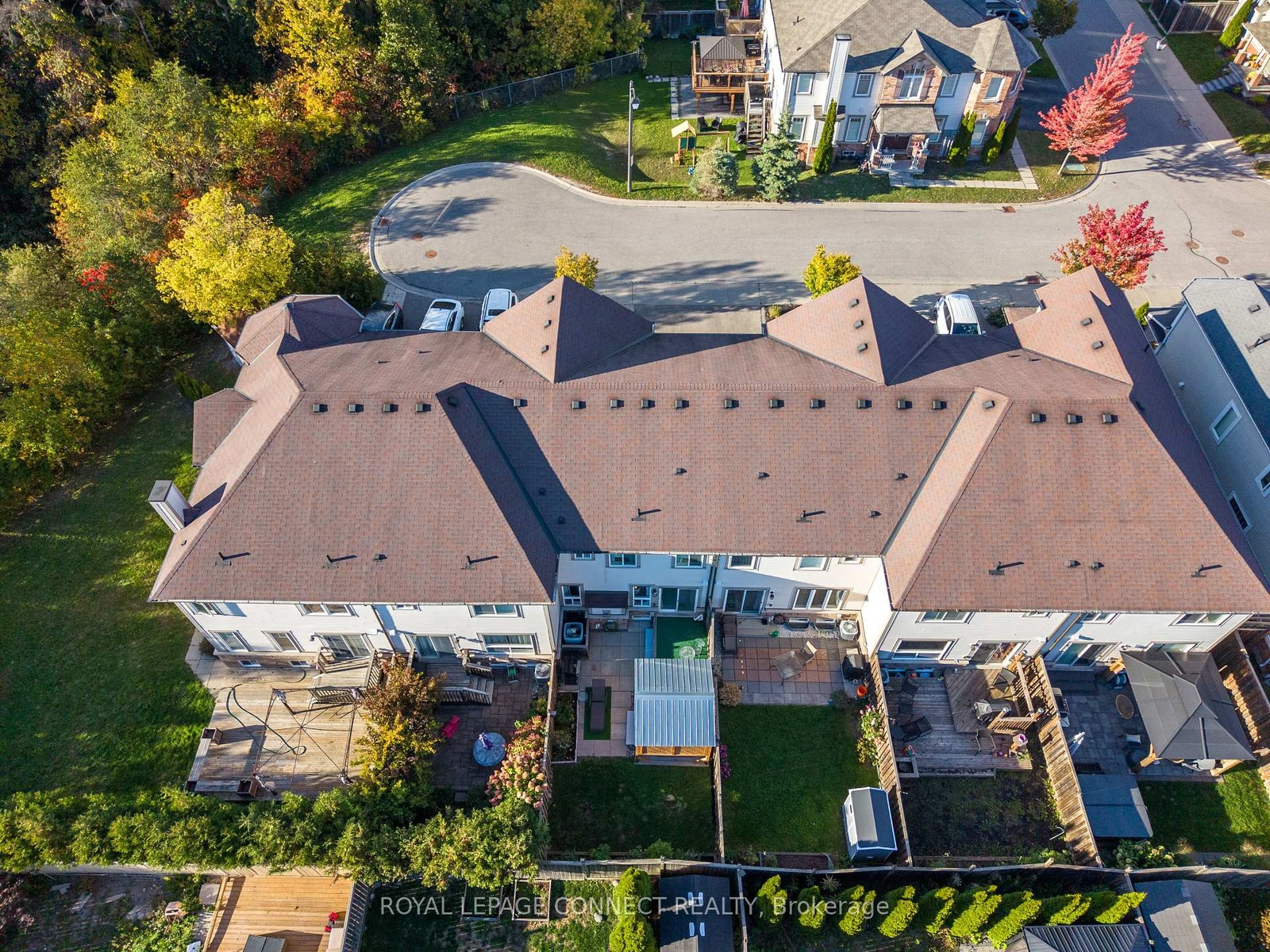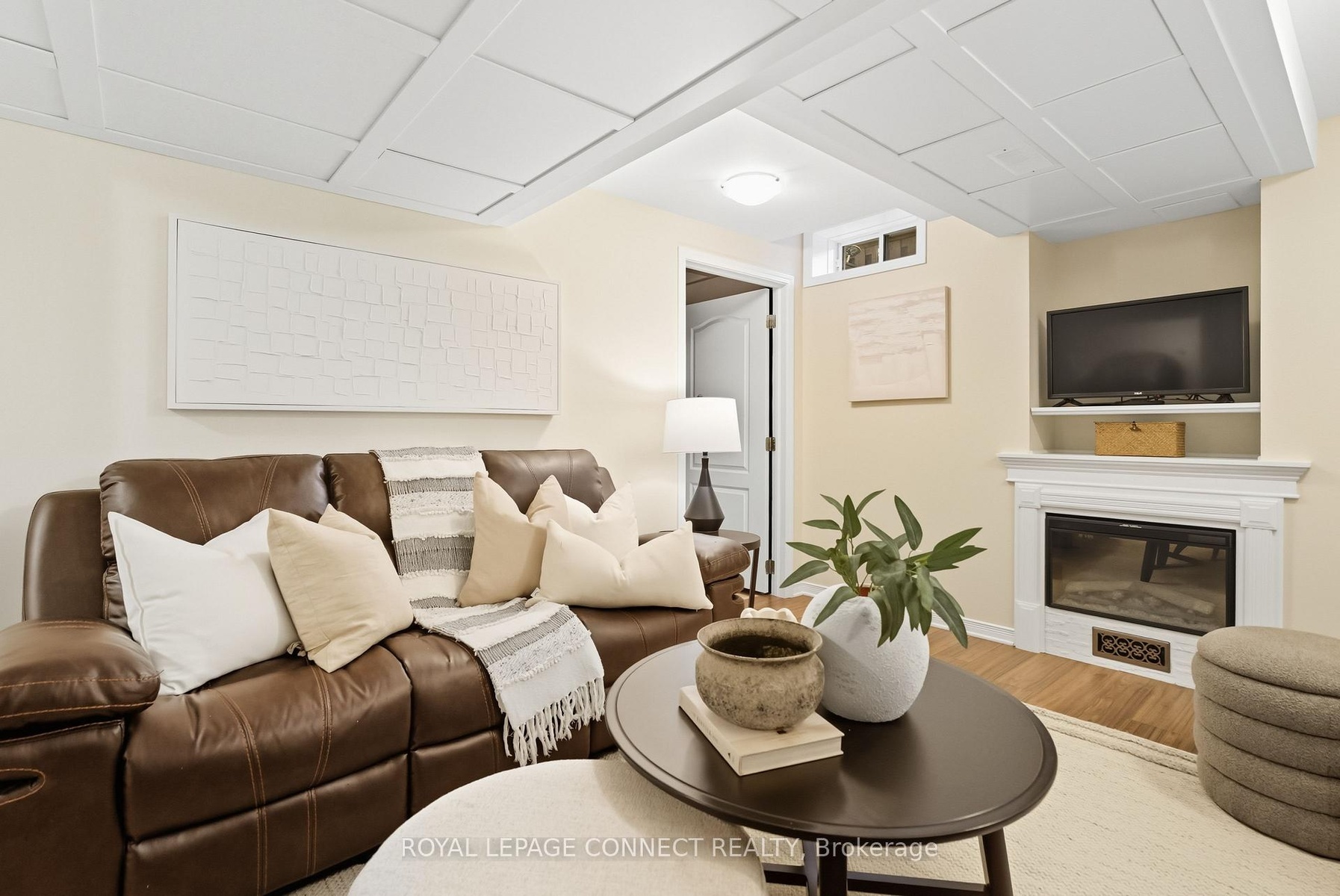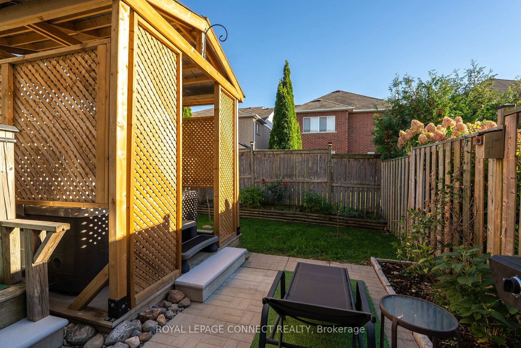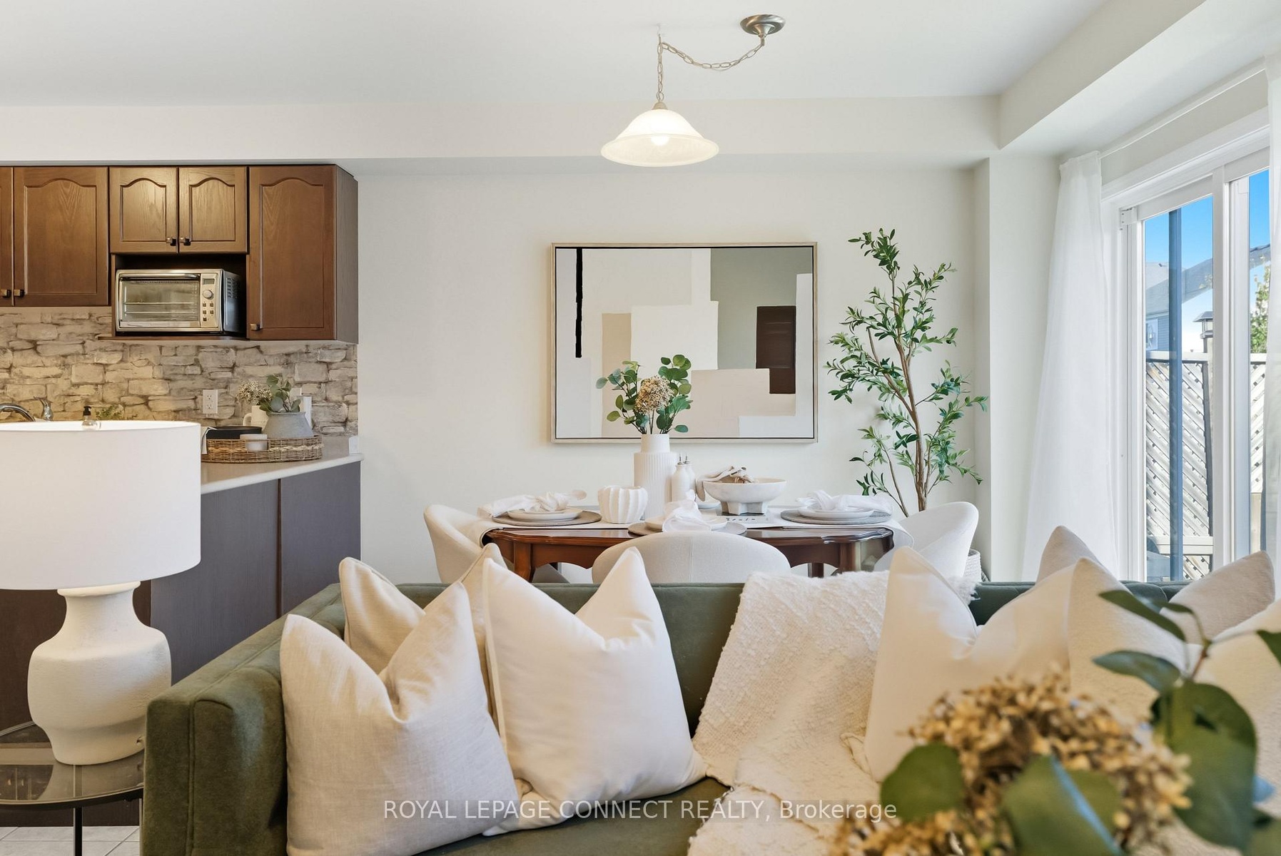 Welcome home! This 3 bedroom, 3 bathroom townhome with a 1 car garage is located in the prestigious Park Ridge Forest - an exclusive community nestled within a serene forested ravine! The main floor features an open concept layout with a bright living room, kitchen, and breakfast area, perfect for everyday living and entertaining. The living room's gas fireplace adds warmth and charm, creating a cozy place to unwind. Upstairs, you'll find three generous sized bedrooms, including a primary suite with a walk-in closet and private 4 piece ensuite bathroom. Downstairs, the finished basement provides additional living space with a rec room, second fireplace (electric), laundry room and loads of storage. The outdoor spaces are fantastic! You can enjoy your morning coffee on the front porch overlooking the green space, or relax in the fully fenced, south facing backyard complete with a large deck and hot tub with privacy gazebo -your own private retreat. Within walking distance to elementary and high schools, box stores, restaurants, community centre, movie theatre, public transit and short drive to both the 401 and the 407, convenience is at your fingertips! POTL fee of $223/month includes your water, common element property maintenance/landscaping and garbage removal. Nothing to do here except move in and enjoy this beautiful tranquil neighbourhood!
