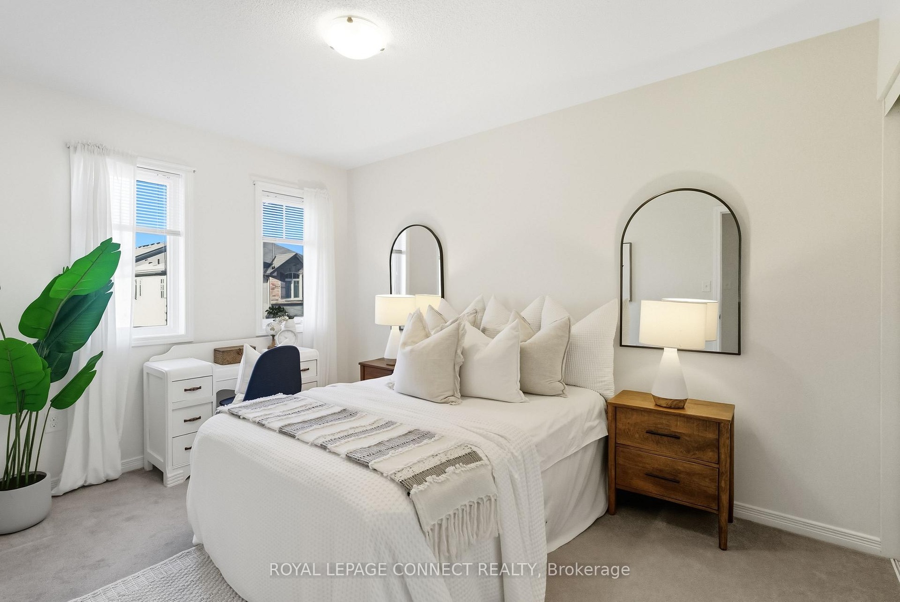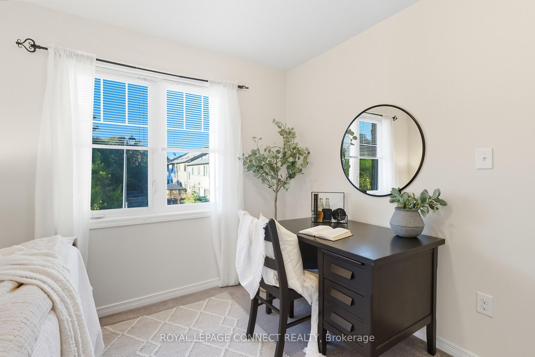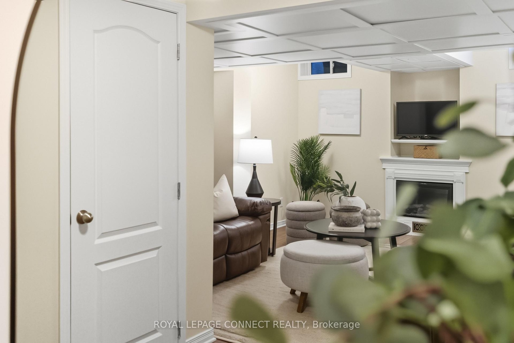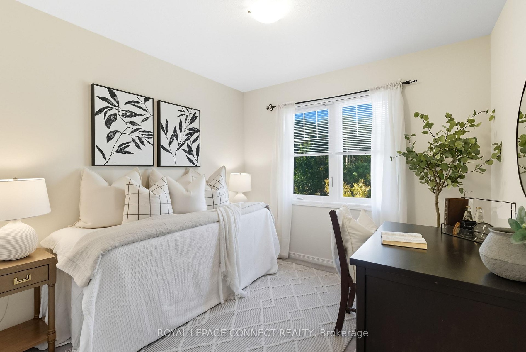 Welcome home! This 3 bedroom, 3 bathroom townhome with a 1 car garage is located in the prestigious Park Ridge Forest - an exclusive community nestled within a serene forested ravine! The main floor features an open concept layout with a bright living room, kitchen, and breakfast area, perfect for everyday living and entertaining. The living room's gas fireplace adds warmth and charm, creating a cozy place to unwind. Upstairs, you'll find three generous sized bedrooms, including a primary suite with a walk-in closet and private 4 piece ensuite bathroom. Downstairs, the finished basement provides additional living space with a rec room, second fireplace (electric), laundry room and loads of storage. The outdoor spaces are fantastic! You can enjoy your morning coffee on the front porch overlooking the green space, or relax in the fully fenced, south facing backyard complete with a large deck and hot tub with privacy gazebo -your own private retreat. Within walking distance to elementary and high schools, box stores, restaurants, community centre, movie theatre, public transit and short drive to both the 401 and the 407, convenience is at your fingertips! POTL fee of $223/month includes your water, common element property maintenance/landscaping and garbage removal. Nothing to do here except move in and enjoy this beautiful tranquil neighbourhood!