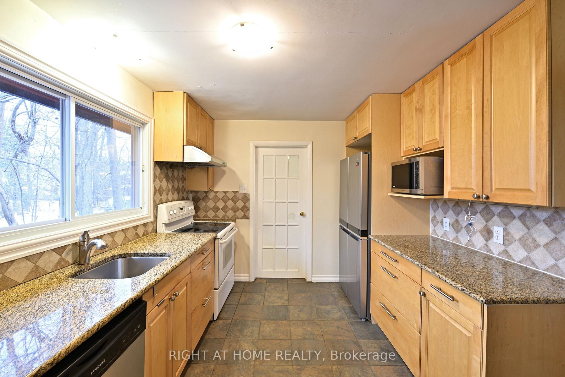 Spacious 5-Bedroom Home Backing onto Cunningham Park No Rear Neighbours! Nestled on a quiet, family-friendly street, this beautiful five-bedroom home offers the perfect blend of privacy, space, and convenience. Backing directly onto Cunningham Park, youll enjoy peaceful forest views, mature pine and oak trees, and a country-like setting all just minutes from the city.Inside, the bright and open-concept living and dining area welcomes you with large panoramic windows and a cozy stone fireplace, creating a warm and inviting atmosphere. The modern kitchen features solid hardwood cabinets, granite counters, a ceramic backsplash and floors, and an eat-in breakfast nook that comfortably seats 46 people.The lower level includes a spacious in-law suite with a separate kitchenette and bathroom ideal for extended family, guests, or professionals seeking privacy. You'll also find a large workshop, laundry area, and plenty of storage space. The entire foundation has been professionally weatherproofed, ensuring a dry and comfortable basement year-round.Step outside to your own private oasis, surrounded by towering trees, parkland, and walking trails. A dog park and green space are just steps away.Conveniently located within walking distance to CHEO, The Ottawa General Hospital, and Riverside Hospital, this home combines serenity with accessibility perfect for families or professionals seeking a peaceful retreat in the heart of the city.Highlights:5 spacious bedroomsSeparate in-law suite with kitchenette & bathroomHardwood and ceramic flooring throughout. Granite counters & modern kitchenStone fireplace with forest views. Huge workshop & storage area. Walk to hospitals, parks, and trailsQuiet street, no rear neighbours. Some photos are virtually staged and the property is vacant.