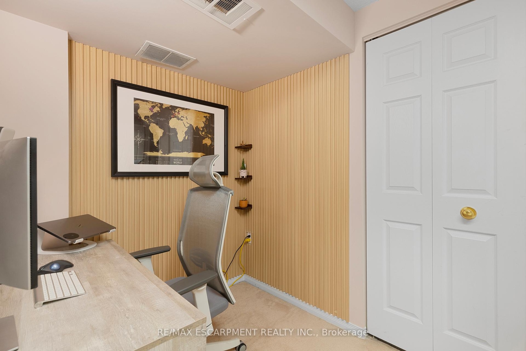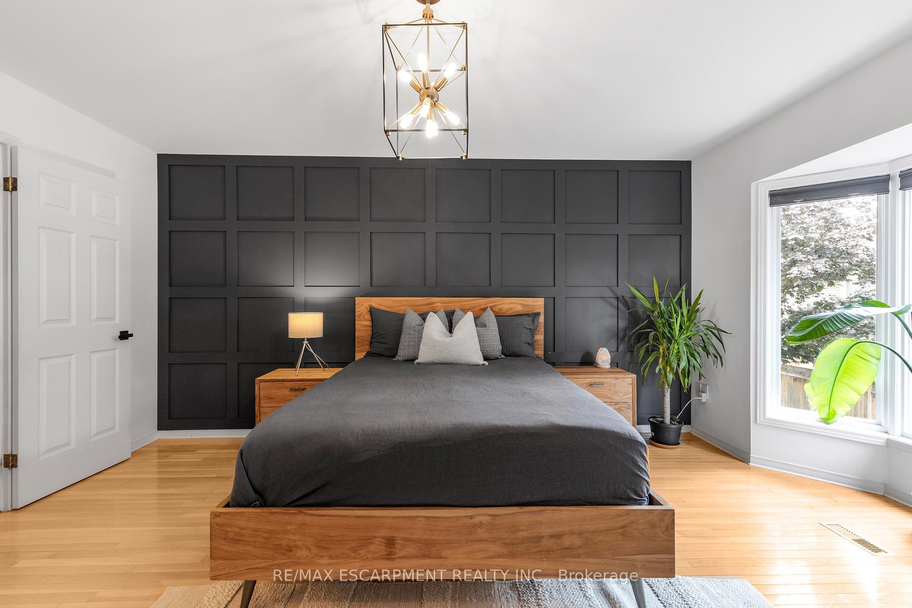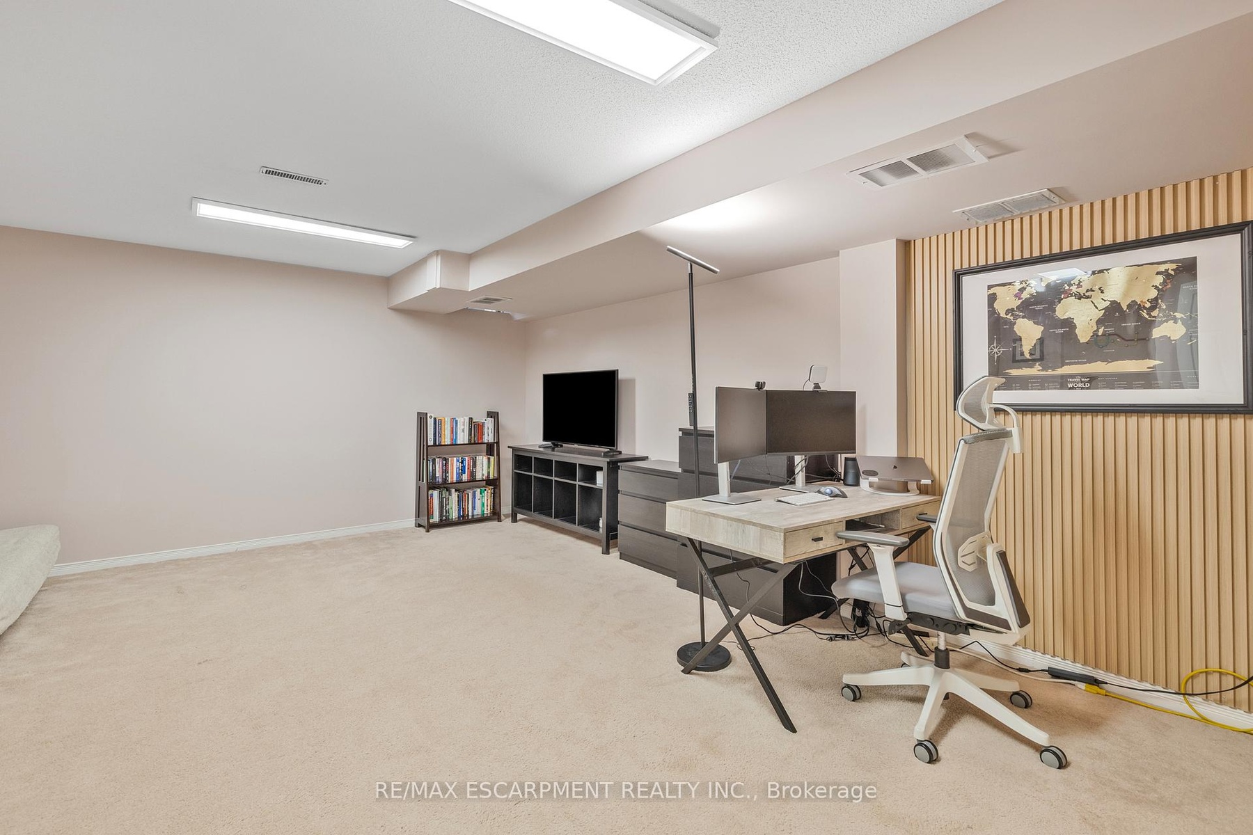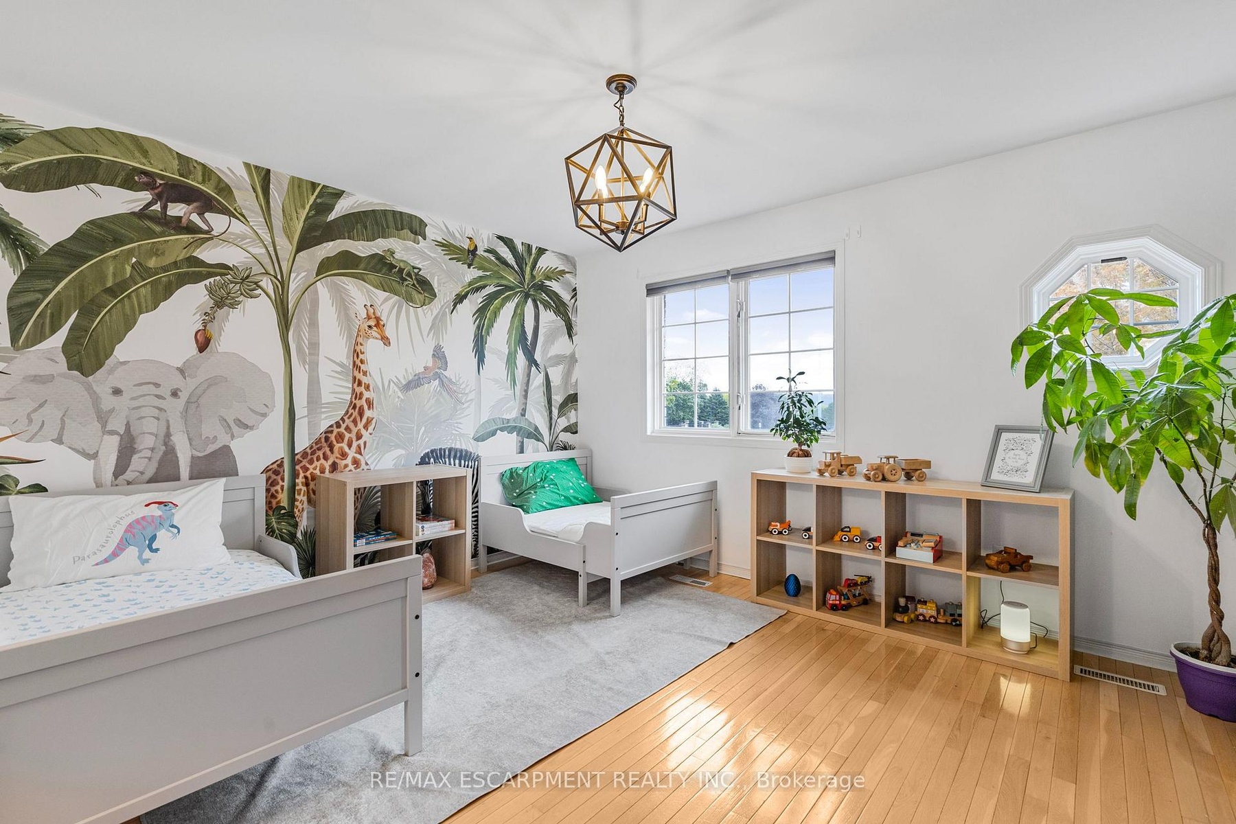 Welcome to Headon Forest living. This updated townhome offers a bright and functional layout in one of Burlington's most convenient neighbourhoods. Both bedrooms are generously sized and include private ensuites: the primary (2022) features a spa-like 4-piece bath with porcelain tile, soaker tub, and separate shower, while the second was refreshed in 2025 with updated flooring and paint. The main level combines an open concept kitchen and living area, ideal for everyday living. The kitchen, updated with quartz counters and cabinetry (2022), flows into the dining/living room with a gas fireplace and walkout to a private deck. Hardwood flooring extends throughout both the main and upper levels. The finished lower level provides flexible space for a family room, office, or gym. Other recent updates include main level hardwood flooring (2021), range (2021), washer (2021), attic insulation top-up (2024), and A/C (2025). Set in a family-friendly community, this move-in ready home is within walking distance to schools and a forested park, with nearby shopping and easy highway access. A well-cared-for home in a great location-ready to welcome its next owners.