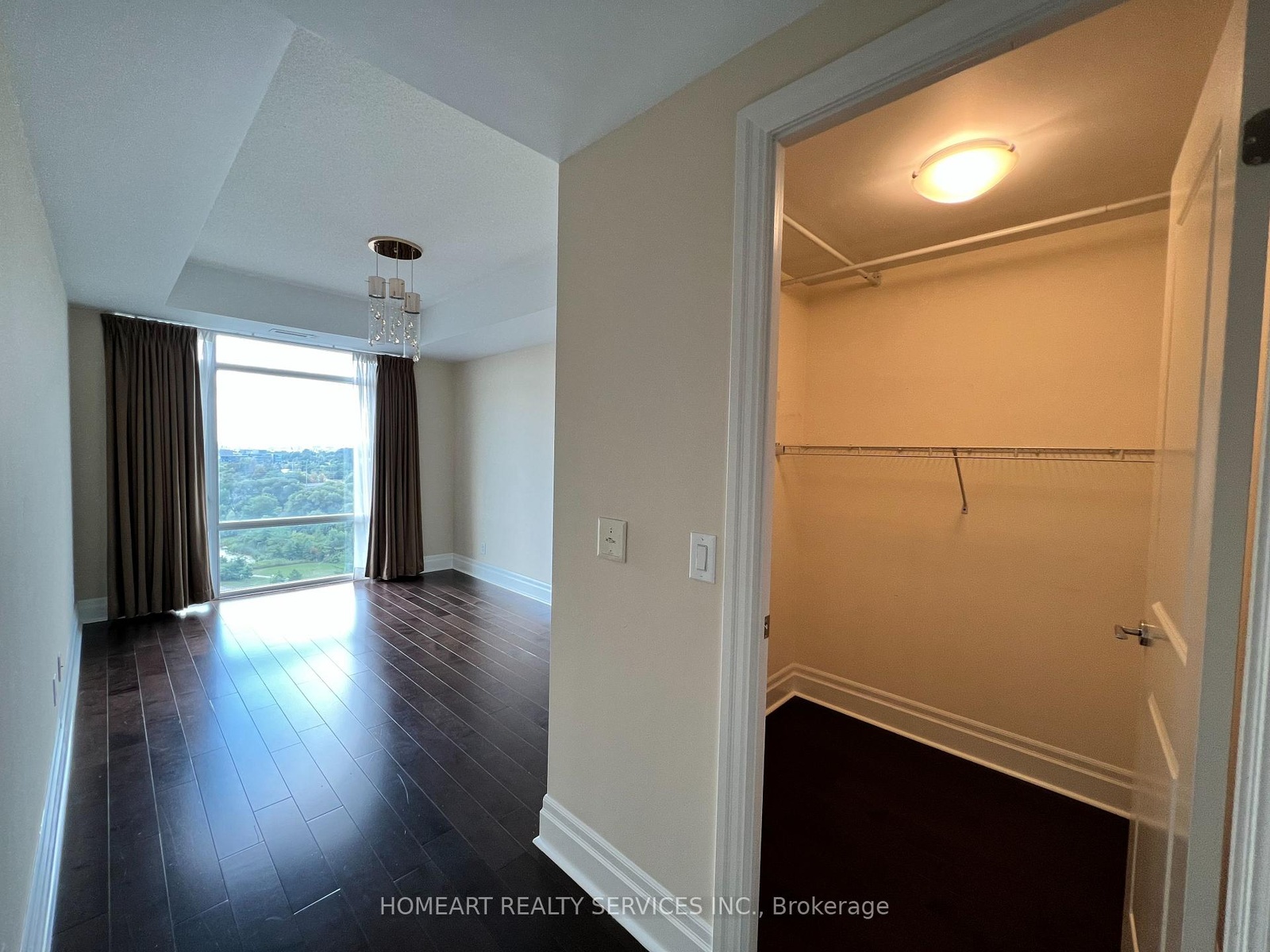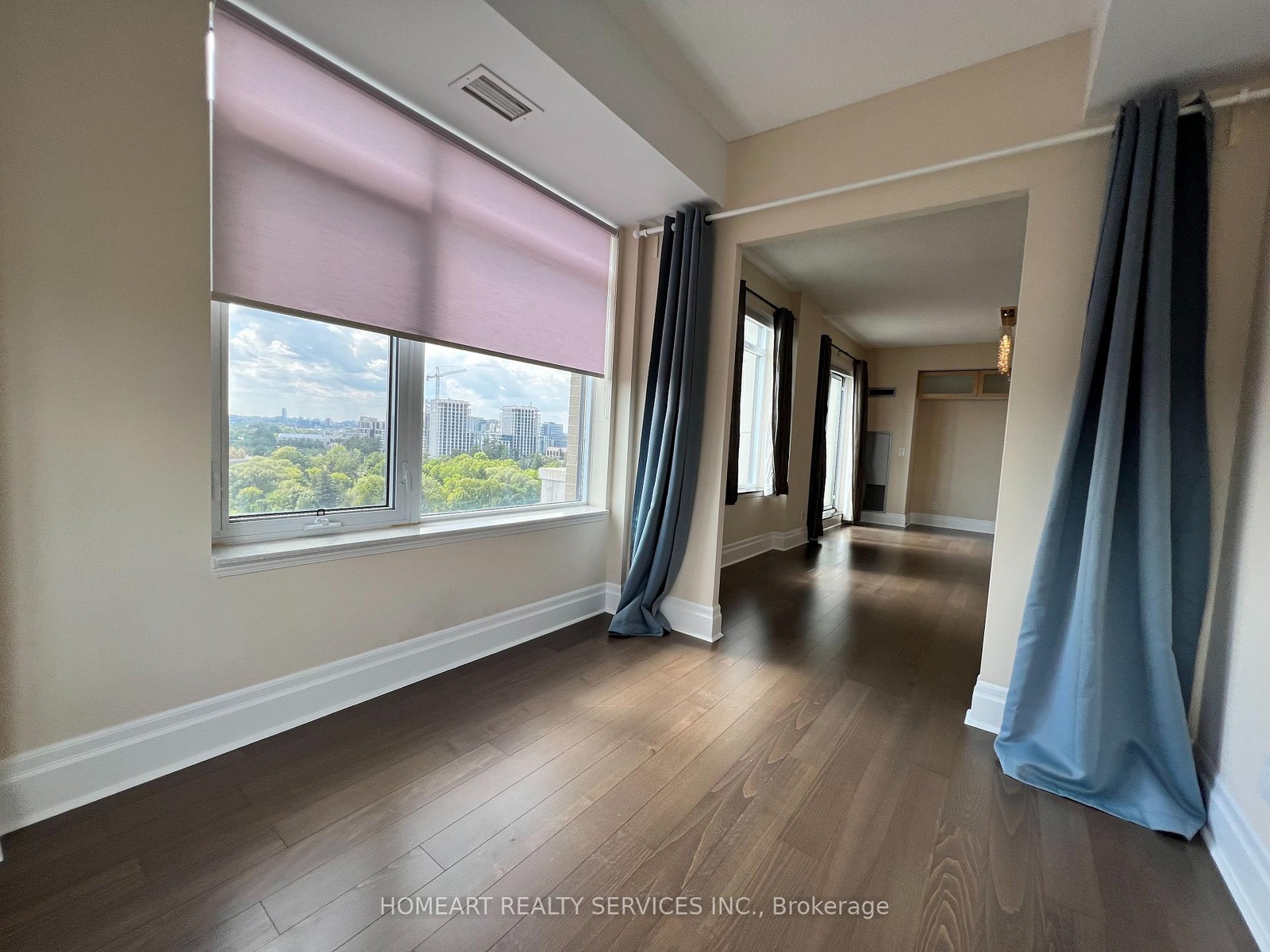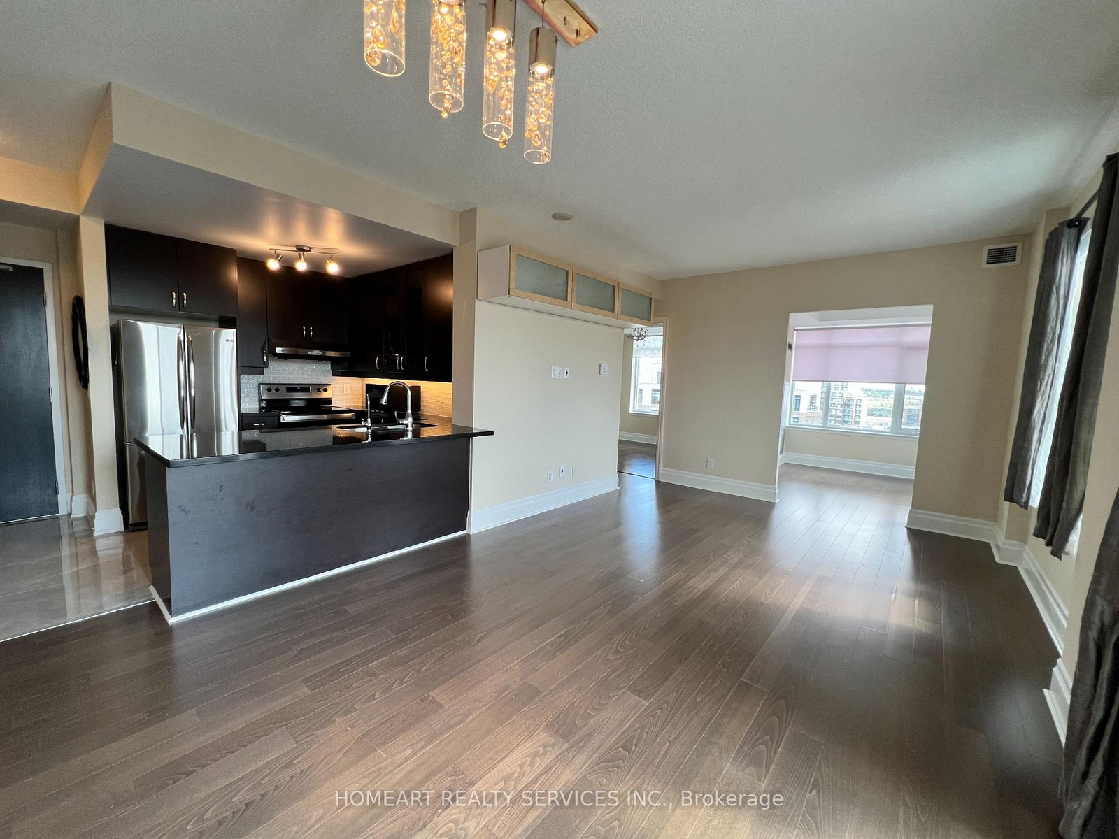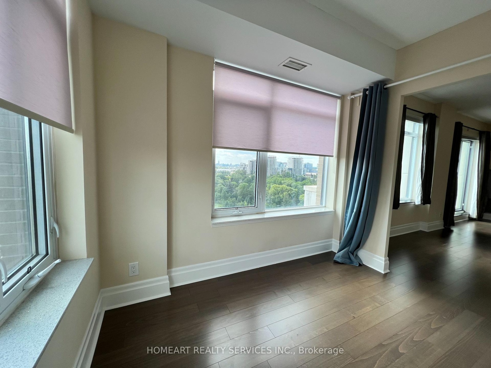 Welcome To The Verdale, A Prestigious Condo Nestled In The Vibrant Heart Of Downtown Markham. This Stunning 2-Split Bedroom Suite + Spacious Den Offers Unparalleled Urban Living, Harmonizing Comfort And Convenience. Boasting 1100 Sqft Of Elegant Space, This Sun-Filled Corner Unit Is Graced With Soaring 9-Ft Ceiling That Elevate Its Open-Concept Design & Unobstructed View Of Greenspace Outside. The Primary Bedroom Features Ample Closet Space And 4-Pc Ensuite Bath, While 2nd Bedroom Offers Versatility For Family Or Guests. A Generous Den Provides An Ideal Work-From-Home Setup Or Another Spacious Bedroom! Comes W/ Rare Luxury Of Two Side-By-Side Parking Space and a locker. 24HR Concierge, Top Of The Line Amenities, Steps To Park, Cineplex Theatre, Restaurants, Shops, YMCA, York University, Community Center, Transit, Mins To Hwy And More!