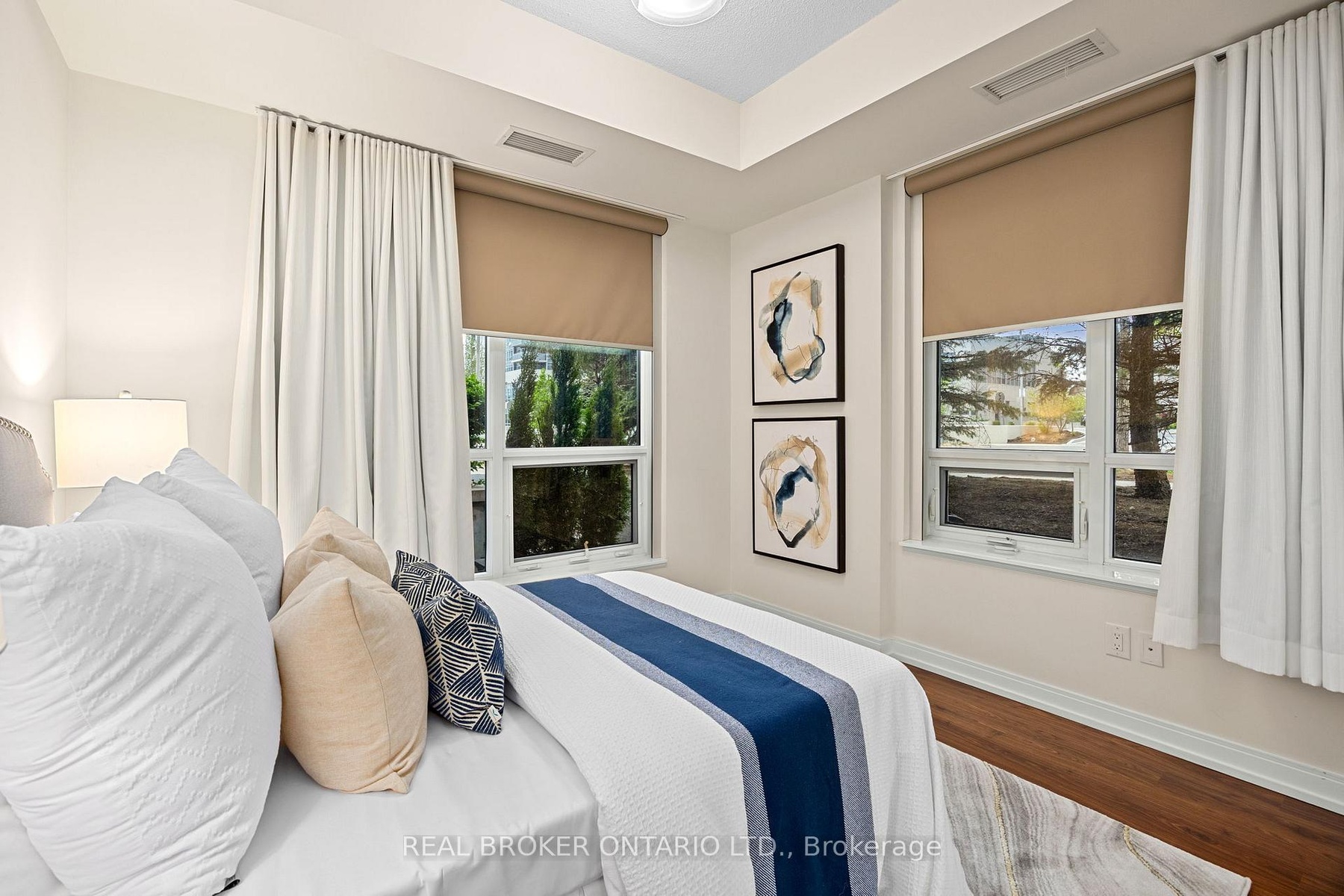 A truly spectacular ground floor suite that will wow & delight! This 2-bedroom & 2-bathroom corner suite in the coveted Ventus II by Tridel in Prime Scarborough shows like a model suite and has everything a fussy buyer could want & much more! From the moment you walk through either the front door or your private patio door, you will notice the impressive 9-foot ceilings and immediately fall in love. The chefs' kitchen is immaculate and well-equipped, offering stainless steel appliances, granite countertops, a custom pantry, and a reverse osmosis filtration system! The living & dining room are the perfect space to entertain, and the ability to move your party outdoors to your oversized patio is exquisite! Whether you are looking to enjoy your morning coffee or a glass of wine, the outdoor space is the perfect place to do it. The delightful patio is perfect for pet owners looking for an easy in & out to the park and for homeowners who crave outdoor space! If you are a gardener, then you will be in heaven on this patio where you can enjoy your flowers all summer long. Desirable split bedroom floorplan with a sophisticated & spacious primary suite. The beautiful, vaulted ceilings in the the beautiful primary bedroom add to the airiness & charm of the space, and the professionally installed closet organizers add form & function. A pristine 4-piece ensuite bath rounds out the space! The second bedroom is spacious and offers ample closet space with organizers too! The second bedroom could make for the perfect guest suite or home office. Enjoy all of the comforts of condo living like exceptional amenities, while reaping the benefits and conveniences that only a ground-floor suite offers! The unbeatable location across from the park makes this suite feel just like - home sweet home. Enjoy Tridel's renowned amenities like Concierge, Fitness Centre, Party Room, 4th Floor Outdoor Terrace/BBQ, Guest Suites, Visitor Parking & More!