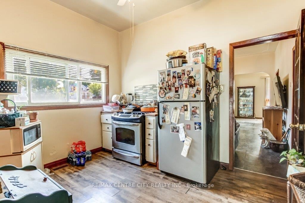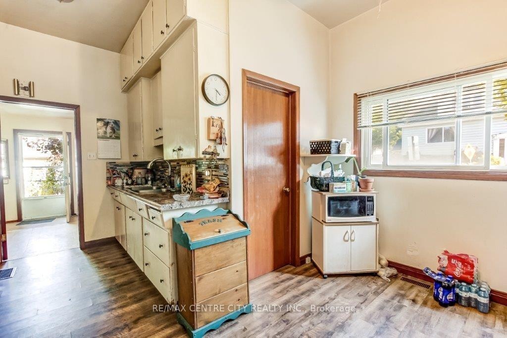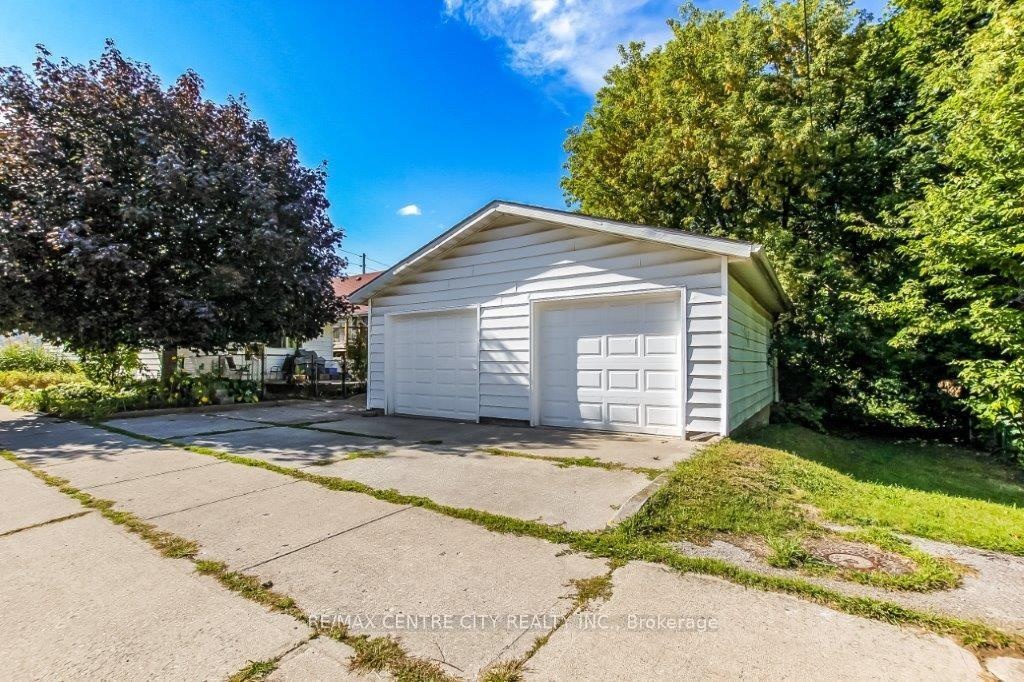 Circa 1905, this bungalow offers 10' ceilings throughout. As you enter the front door you will find the living room, followed by a centrally located spacious dining room. As you approach the rear both the kitchen and 4-piece bath are conveniently located. At the back of the home is a sunroom/office with stairs leading to an untouched basement. There are 3 average sized bedrooms completing the home. Outside you will discover a detached oversized 2-car garage that measures 23' x 23', great size for any hobbyist. There is a deck off the sunroom as well. Furnace (2007), roof shingles (2015), 100 amp breaker service. Shop and compare at this price especially with the bonus garage.