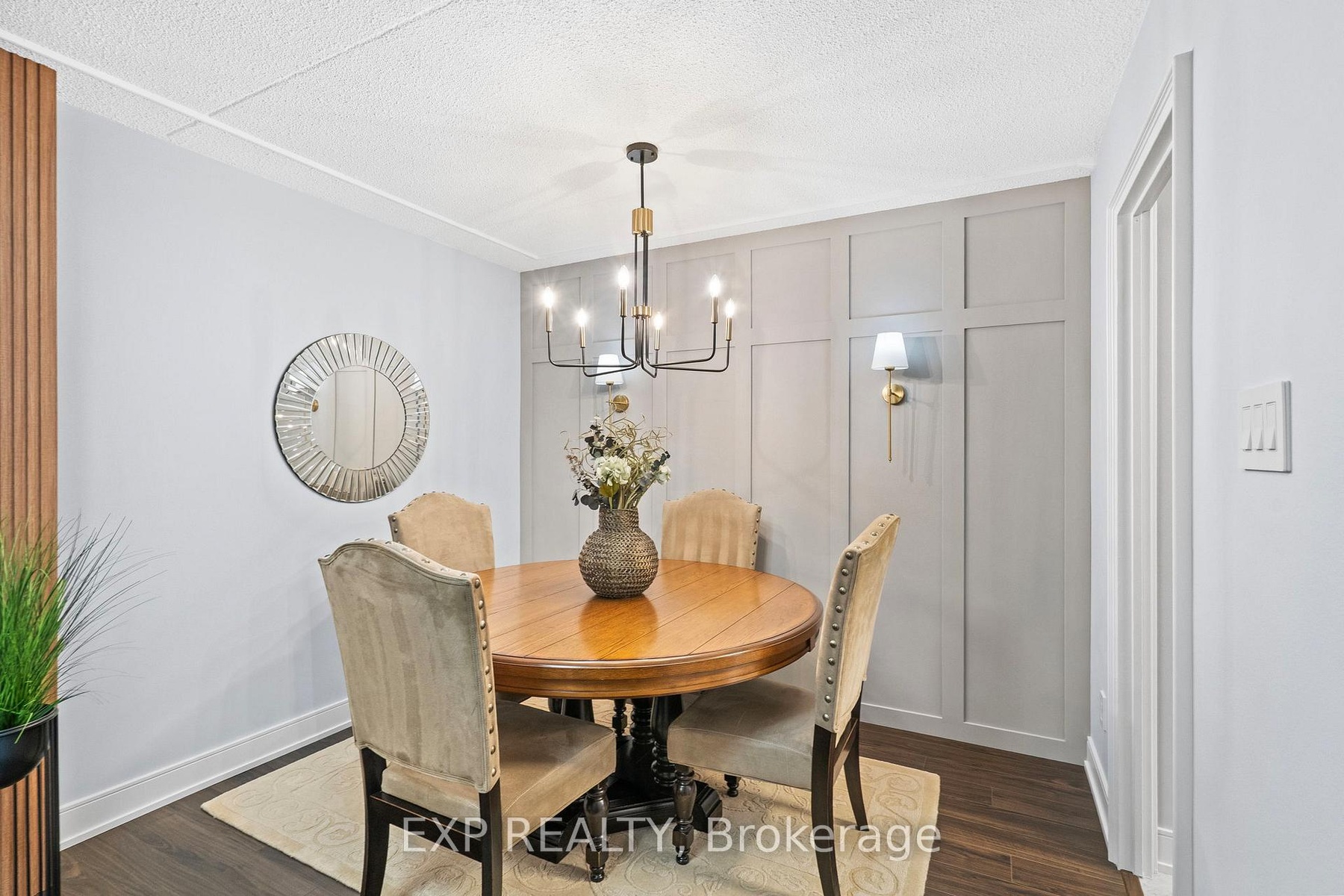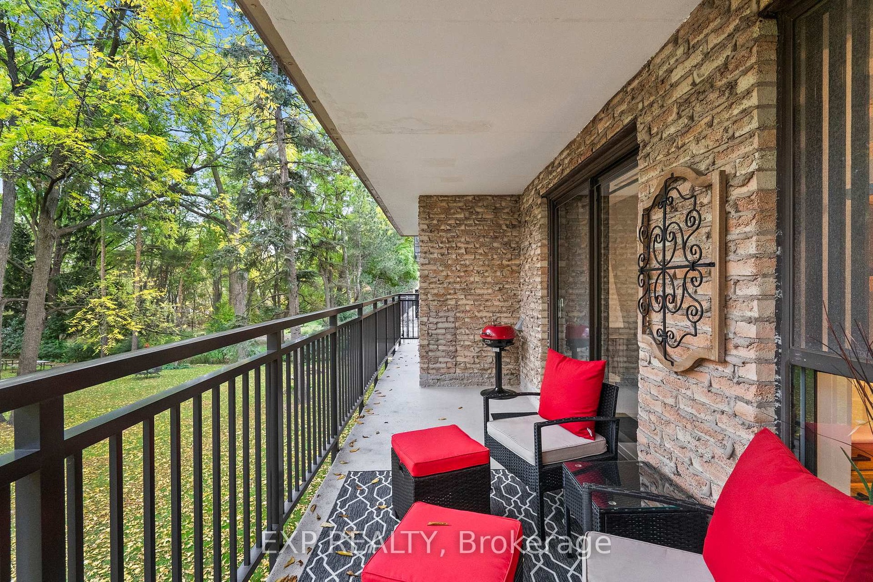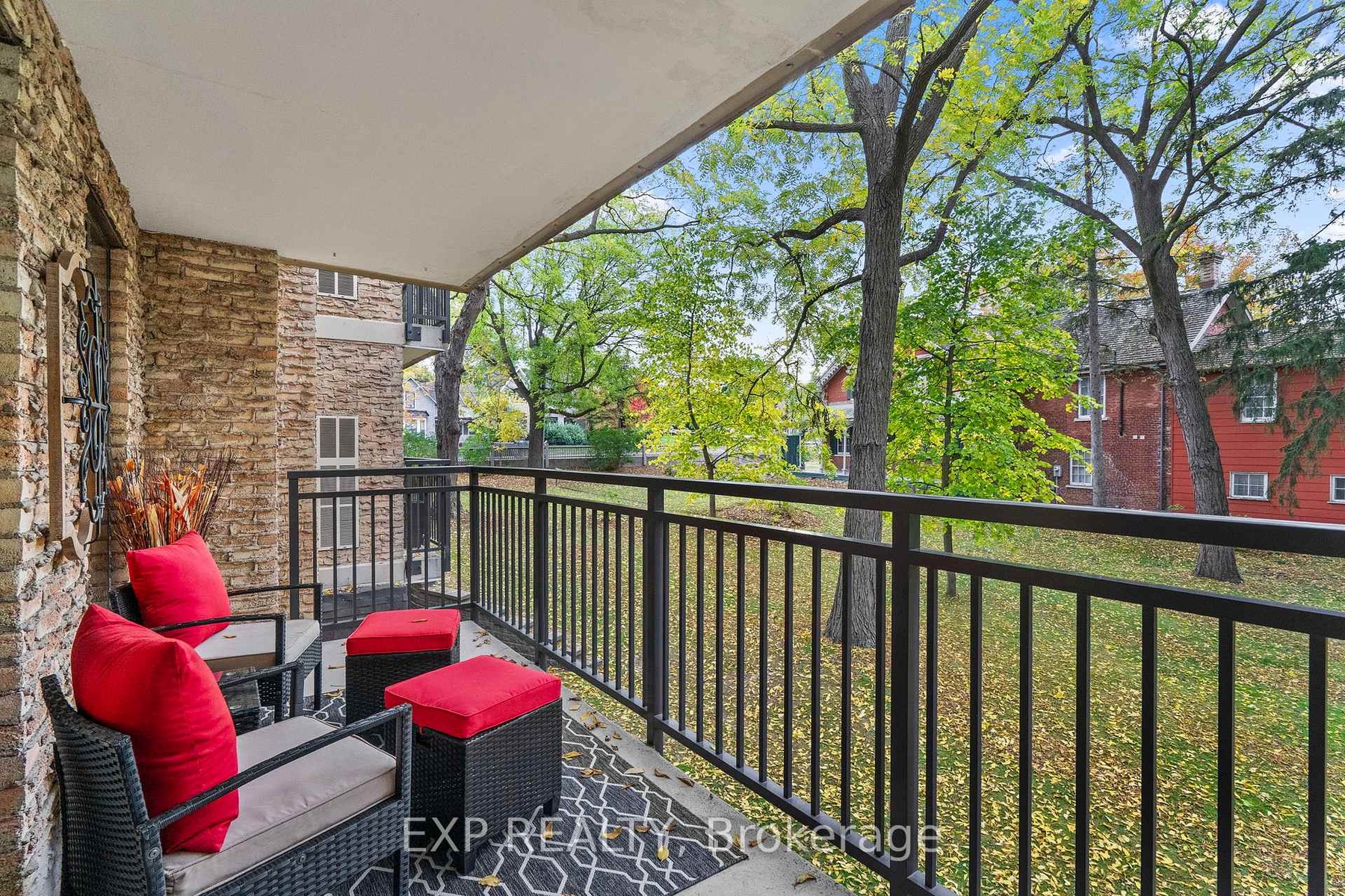 Welcome to Devonshire Place, one of Aurora's most sought-after addresses - where comfort, charm, and convenience meet. This bright, beautifully maintained 2-bedroom condo offers a sunny south-facing view overlooking the historic Hillary House and tranquil, tree-filled gardens - your own private escape in the heart of the city. Freshly painted and move-in ready, the home features laminate floors in the main living areas and soft Berber carpet in the bedrooms for a perfect blend of style and comfort. The open-concept living and dining area flows seamlessly to the private balcony - ideal for morning coffee or a quiet evening unwind. The eat-in kitchen is thoughtfully designed with custom honey birch maple cabinetry, tile backsplash, and stainless steel appliances, perfect for everyday living or entertaining friends. Both bedrooms are generously sized with great closet space, and the building itself is known for its peaceful atmosphere, caring community, and meticulous upkeep. Steps from transit, parks, schools, and Aurora's vibrant downtown - this home delivers modern convenience in a classic setting. Discover easy condo living in a location that truly has it all.
