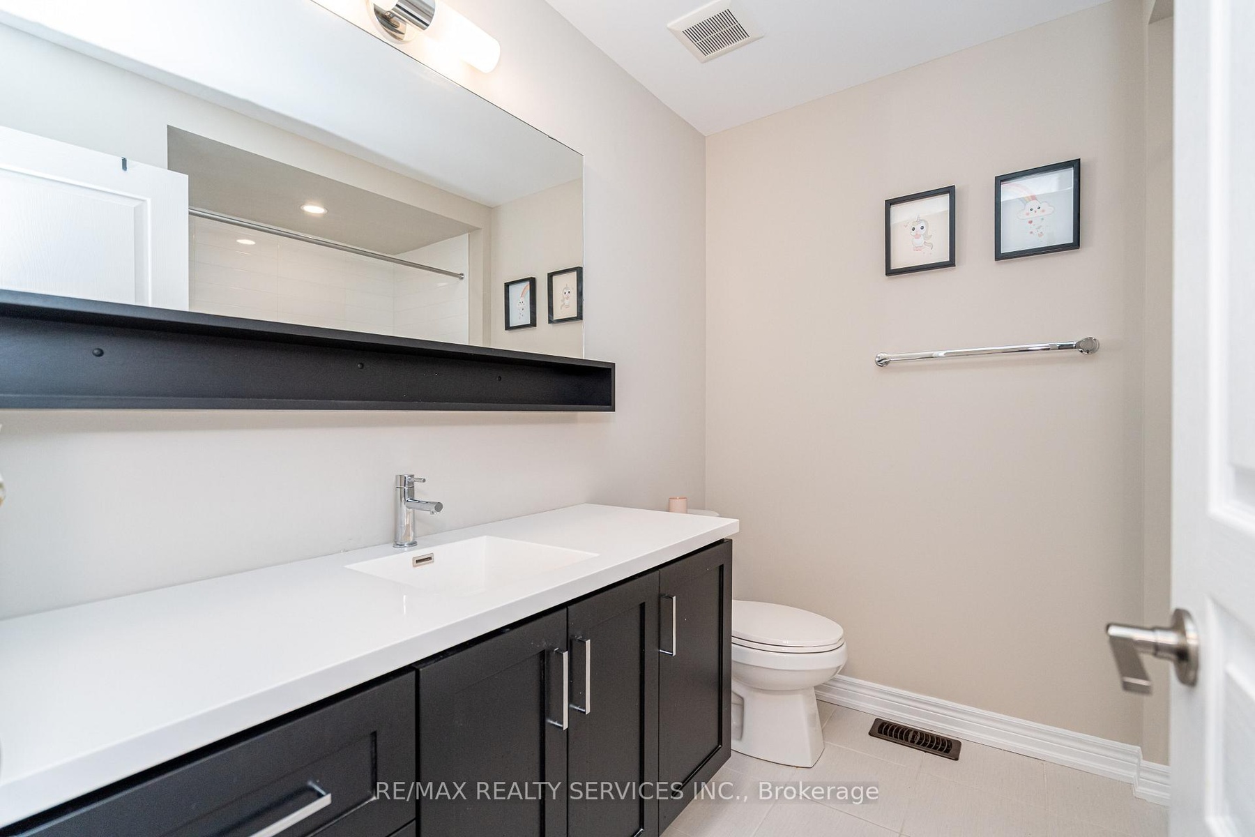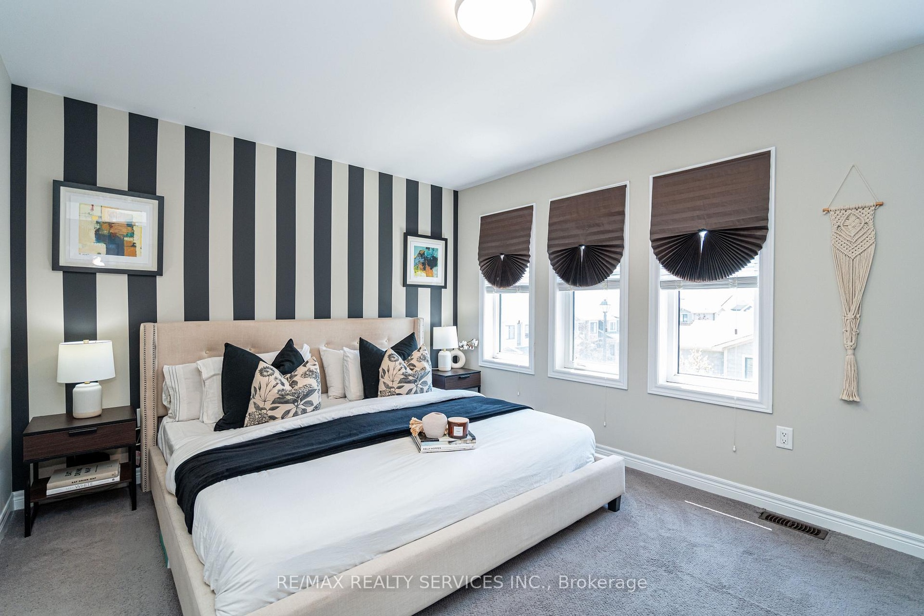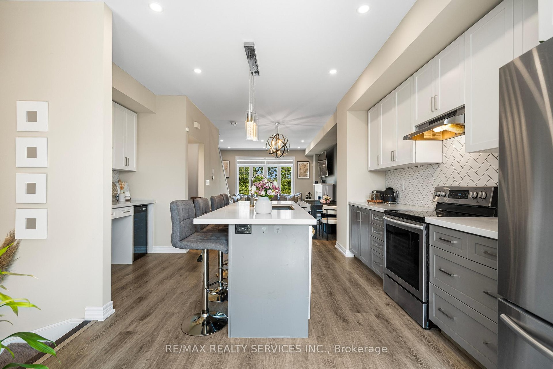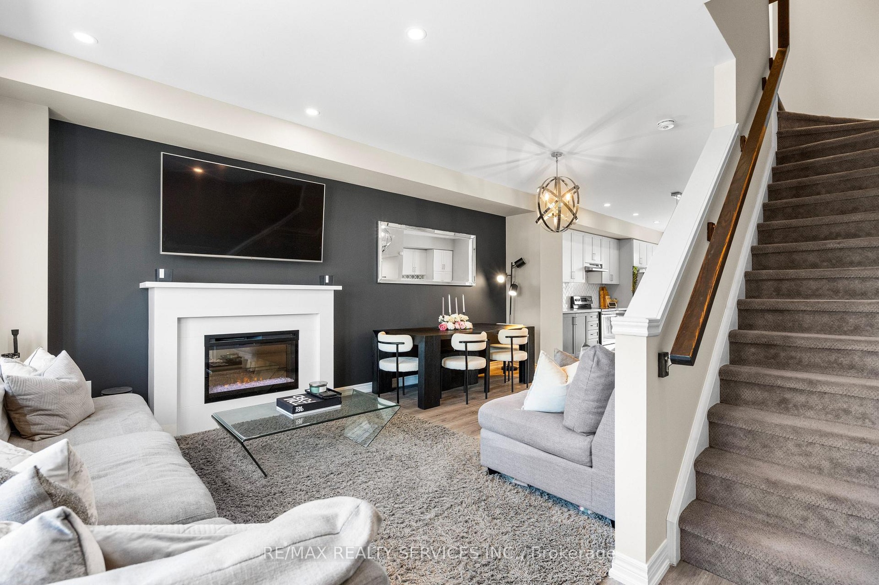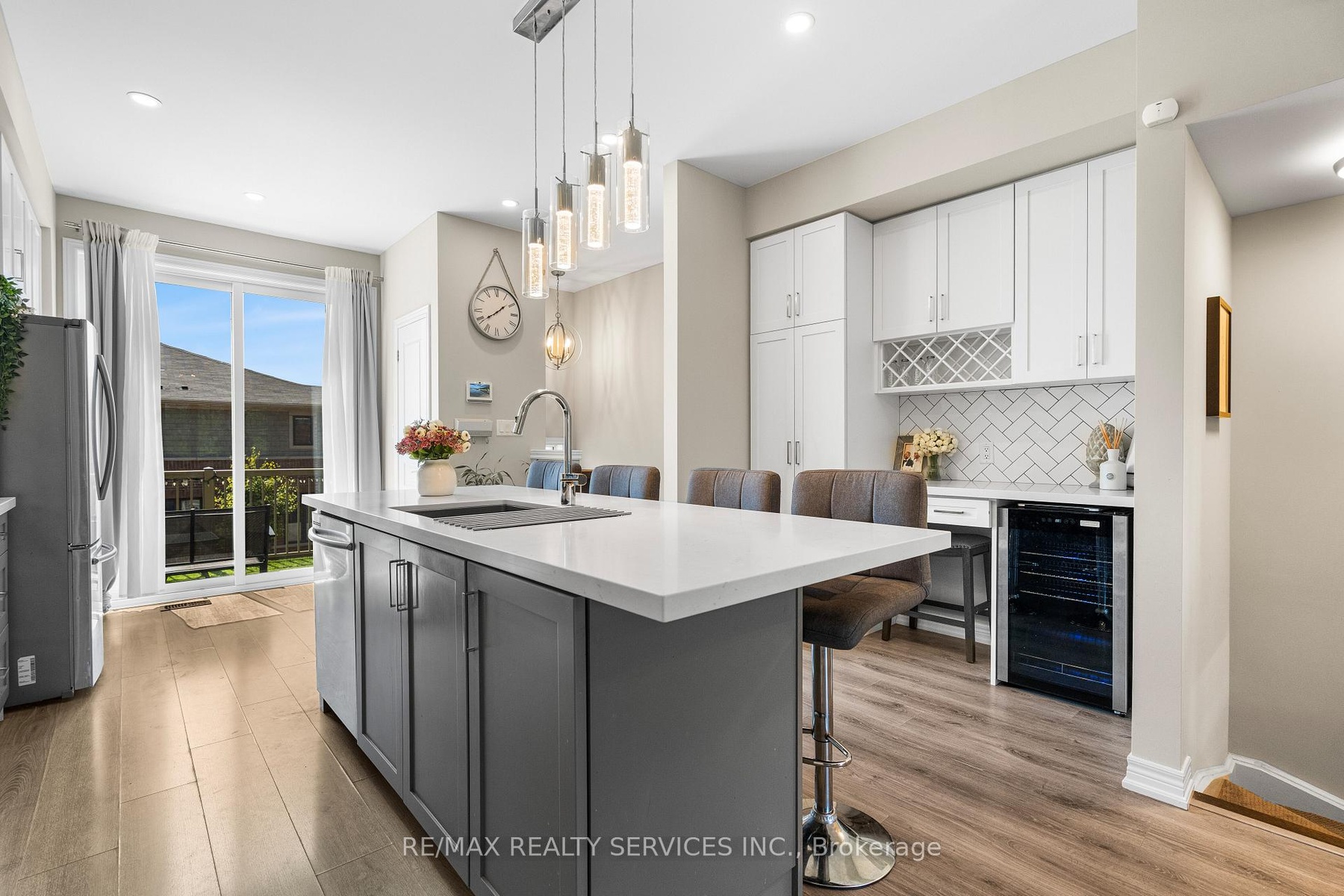 Welcome to Branthavens newest modern community, where style meets functionality in this spacious 3-storey townhouse offering over 1,900 sq. ft. of beautifully finished living space (excluding basement). This stunning home features a custom extended chefs kitchen with quartz countertops, stainless steel appliances, and upgraded light fixtures perfect for both cooking and entertaining. 9 ft ceiling on the 2nd level with pot lights creating a bright and welcoming atmosphere. With 3 generous bedrooms and 3 full bathrooms, including 2 private ensuites, this home is ideal for growing families or multi-generational living. The finished basement includes a versatile rec room perfect for relaxing or hosting guests. Two separate walkout balconies provide additional outdoor space, while thoughtful features like window coverings, direct access to a wider garage, and a low POTL fee add to the homes comfort and convenience. Ideally located with direct highway access to Red Hill and the LINC, this property is also within walking distance to both elementary and high schools, as well as major amenities. This is modern living at its finest don't miss your opportunity to call this exceptional home yours! POTL fees $78.56 for common area and snow cleaning
