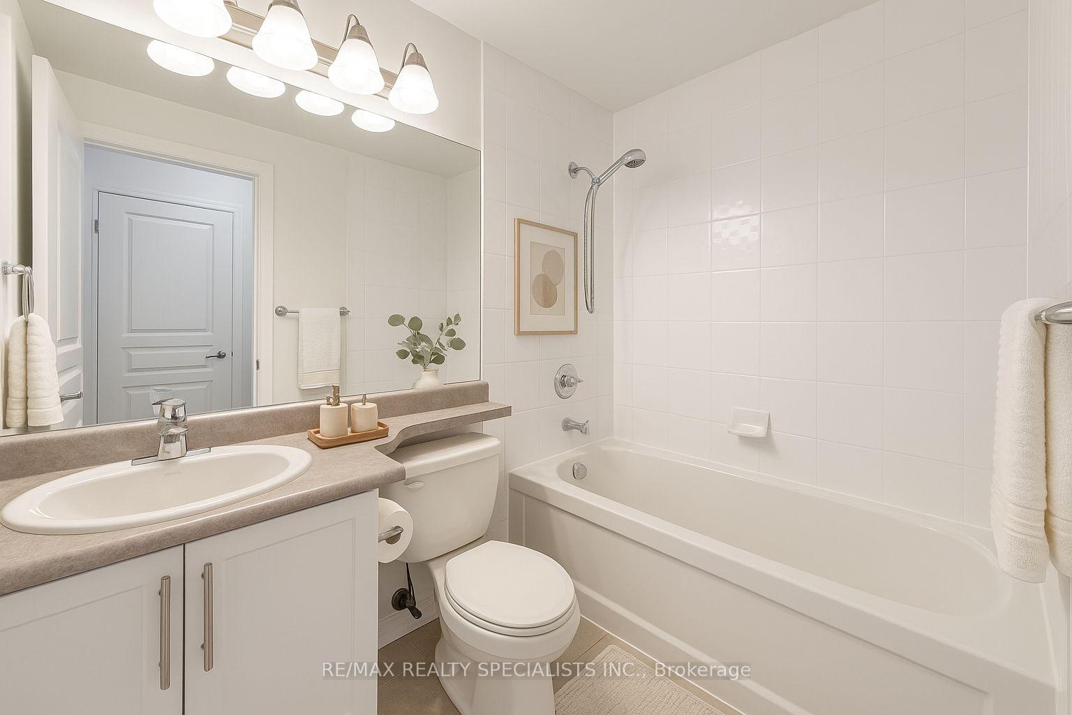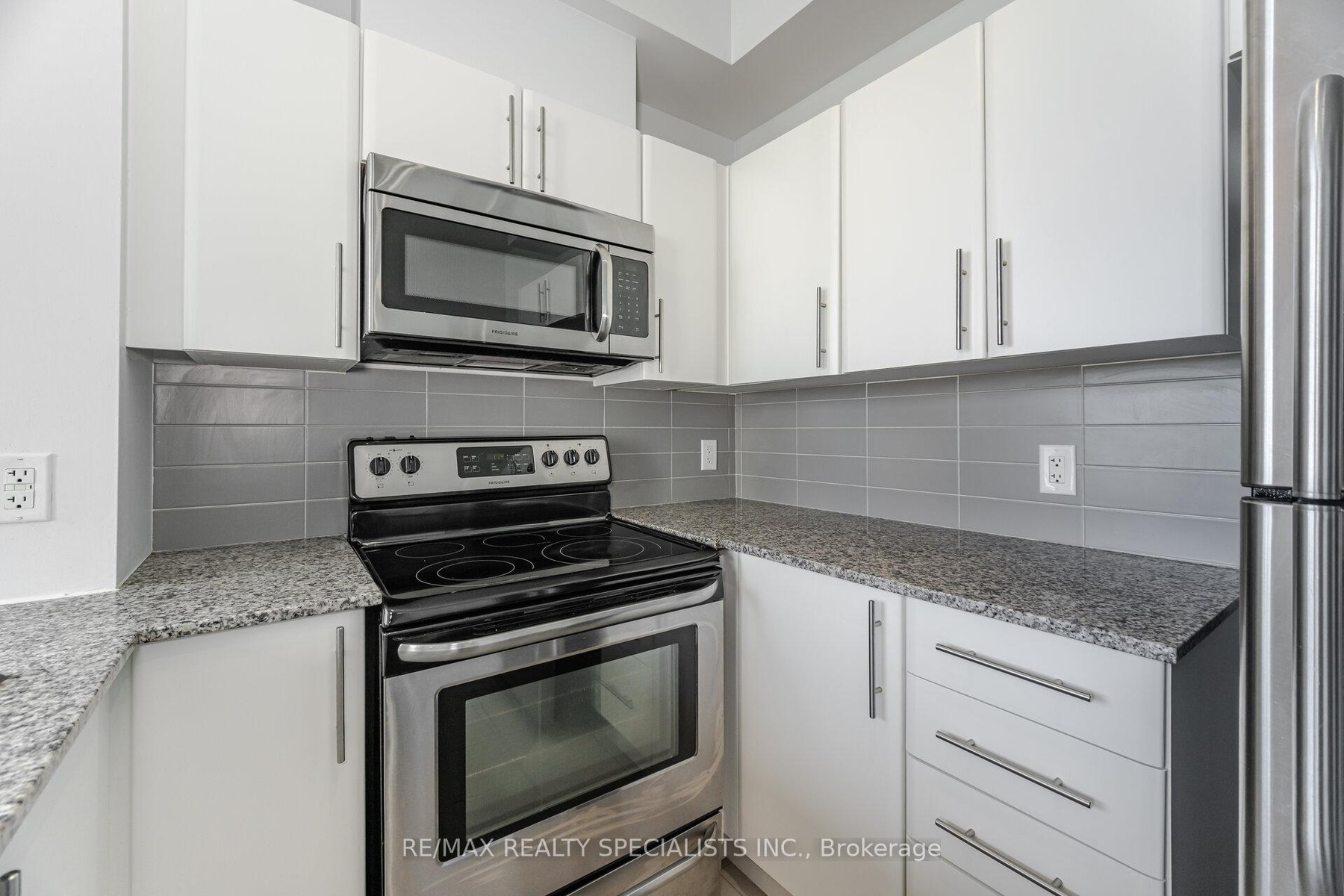 Eve Condos presents a bright 1+1 in the heart of Mississauga with southeast exposure, nine foot ceilings, and floor to ceiling windows. The separate den suits an office or nursery. The eat in kitchen features granite counters, a double stainless steel sink, and stainless steel appliances. The open living and dining area has laminate flooring and a balcony walkout. The bedroom offers new laminate and a wall to wall mirrored closet. The four piece bath is finished with ceramic tile. In suite laundry with a Whirlpool stacked unit. One parking and one locker. Amenities include an indoor pool, gym, 24 hour security, theatre, and party room. Walk to Square One, Celebration Square, Kariya Park, Mississauga Valley Park, Elm Drive Public School, and the future Hurontario LRT. Minutes to GO Transit, MiWay, major highways, and top rated schools.