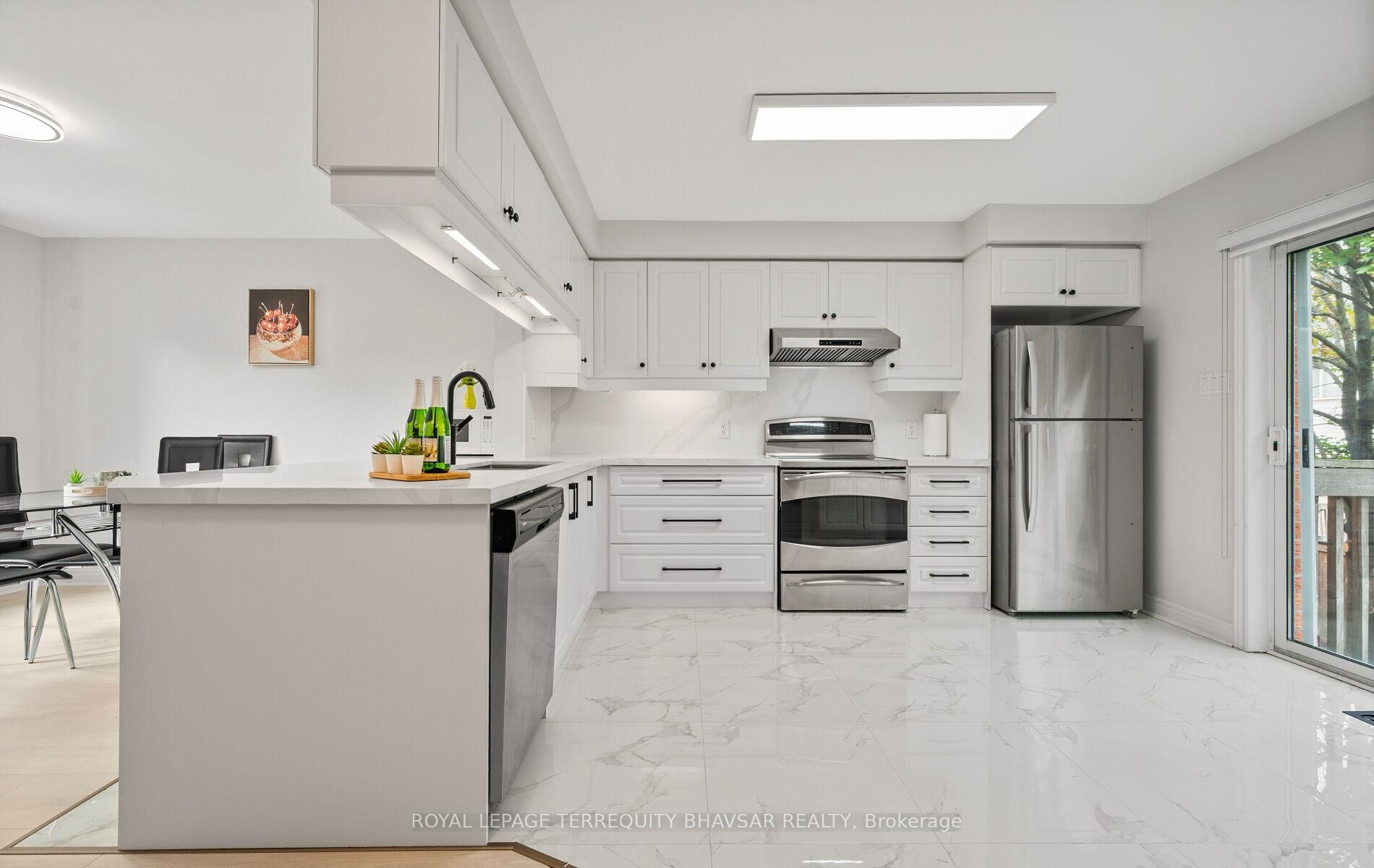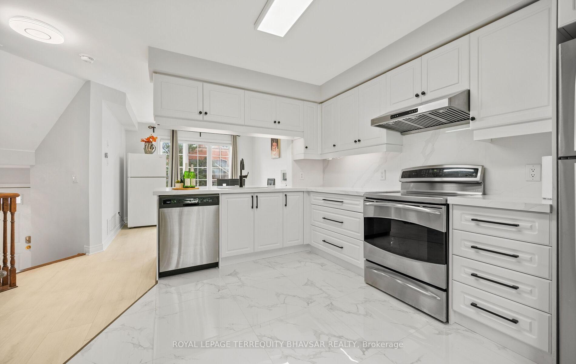 Stylishly updated from top to bottom, this stunning 3-bedroom, 3-washroom condo townhouse offers the perfect blend of comfort and contemporary design in the highly sought-after Eglinton Avenue and Creditview Road neighbourhood of Mississauga. The fully renovated kitchen(Sept 2025) is a showstopper, featuring all stainless steel appliances including Induction Stove, sleek quartz countertops with matching backsplash, elegant undermount lighting, tons of storage, and a huge pantry. The living room, dining room, and foyer feature brand new flooring, while the powder room and primary Ensuite have been fully renovated with stylish modern finishes. The entire home has been freshly painted (Sept 2025) and enhanced with new light fixtures and zebra blinds throughout, creating a bright and move-in-ready space. Additional highlights include central vacuum, garage access from inside the home, a sizeable private backyard, and a walk-out basement with Gas Fireplace offering great versatility. Enjoy peace of mind with a new front porch installed by condo management. Ideally located within walking distance to grocery stores, pharmacy, and banks, and just minutes from Square One Shopping Centre, Credit Valley Hospital, Erindale GO Station, top-rated schools, and easy access to Hwy 403.
