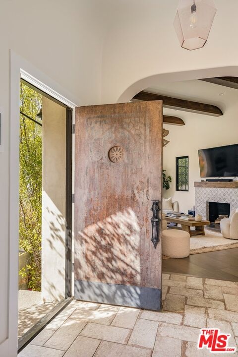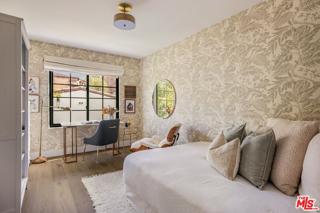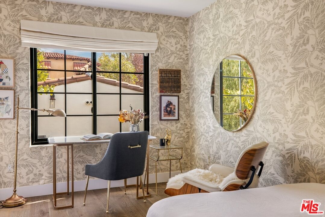 Nestled in the heart of Hancock Park, this enchanting Spanish home blends timeless charm with modern indoor-outdoor living. This three-bedroom, two-bathroom home is surrounded by lush and meticulously maintained landscaping, creating a serene oasis of privacy. Inside, classic Spanish details such as arched doorways, tiles, and exposed wood beams complement the home's elegant yet cozy aesthetic. The sunlit primary suite opens effortlessly to the backyard through bifold doors, leading to a tranquil garden escape. A quiet seating area invites peaceful reflection, while an outdoor fireplace enhances the ambiance for intimate gatherings under the stars. The spacious living room flows seamlessly into a formal dining area and a thoughtfully updated kitchen outfitted with premium appliances and a banquet ideal for both entertaining and everyday living. A gated entry and mature hedges provide a secluded retreat, inviting you into the home's warm, character-rich ambiance. The detached garage offers flexible potential as a creative studio, gym, or office. This home is a gem in one of L.A.'s most sought-after neighborhoods, where historic charm meets contemporary luxury. Just around the corner from LA favorites like Osteria Mozza and Petit Trois, and mere minutes from the vibrant shops, cafs, and weekend farmers market of Larchmont Village, this location offers the perfect blend of quiet sophistication and urban convenience.Whether you're hosting al fresco dinners under the stars or enjoying a peaceful morning coffee in the garden, this is California living at its finest.