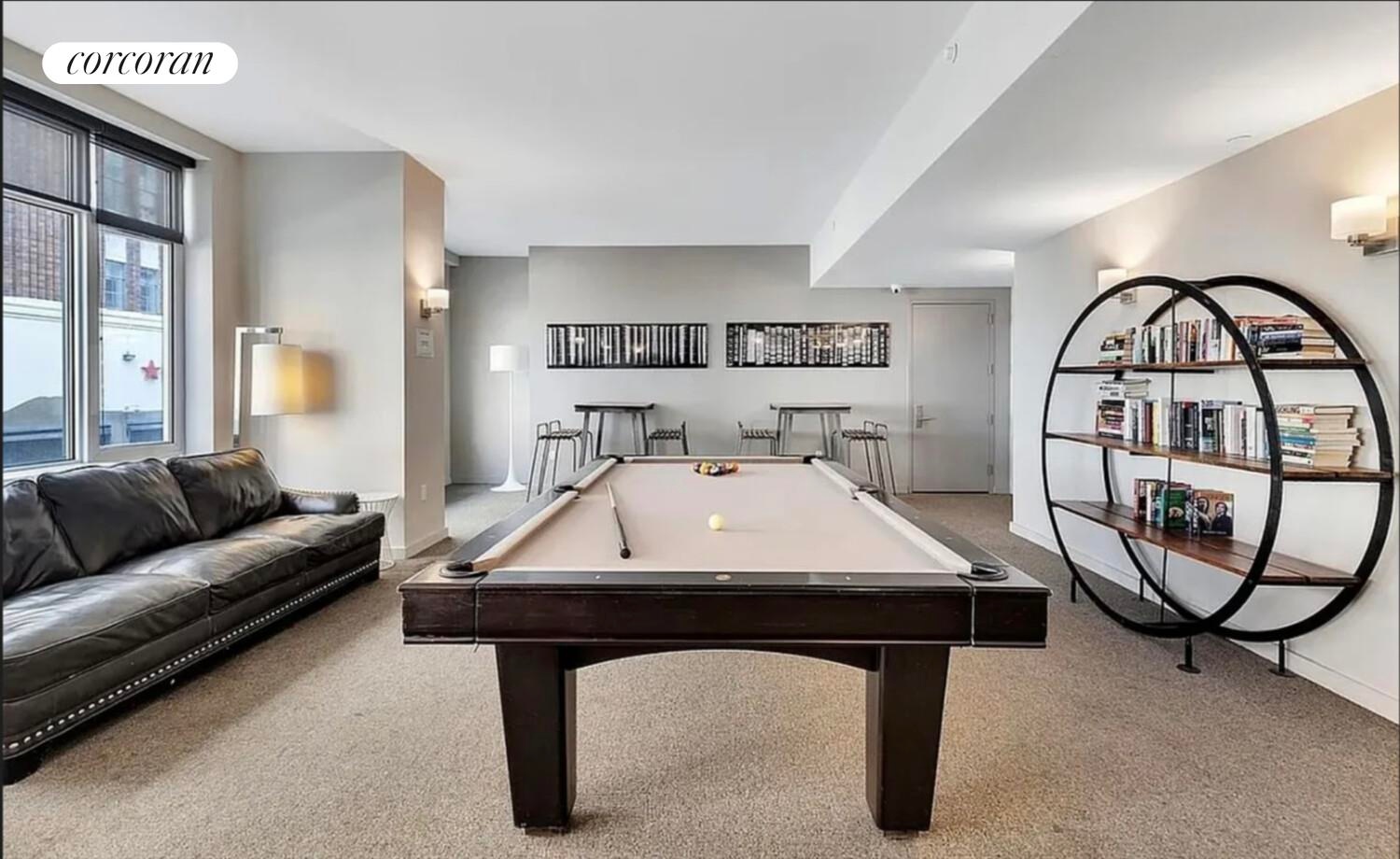 Be@Schermerhorn is a full-service, pet-friendly condominium offering a 24-hour attended lobby, live-in superintendent, state-of-the-art fitness center, residents' lounge, media room with billiards, laundry facilities, landscaped courtyard, and a furnished roof deck with panoramic views. On-site garage parking is available for an additional fee, and Wi-Fi is provided throughout the common areas.