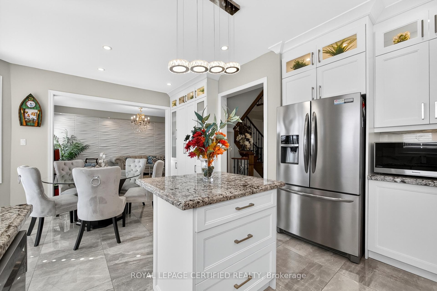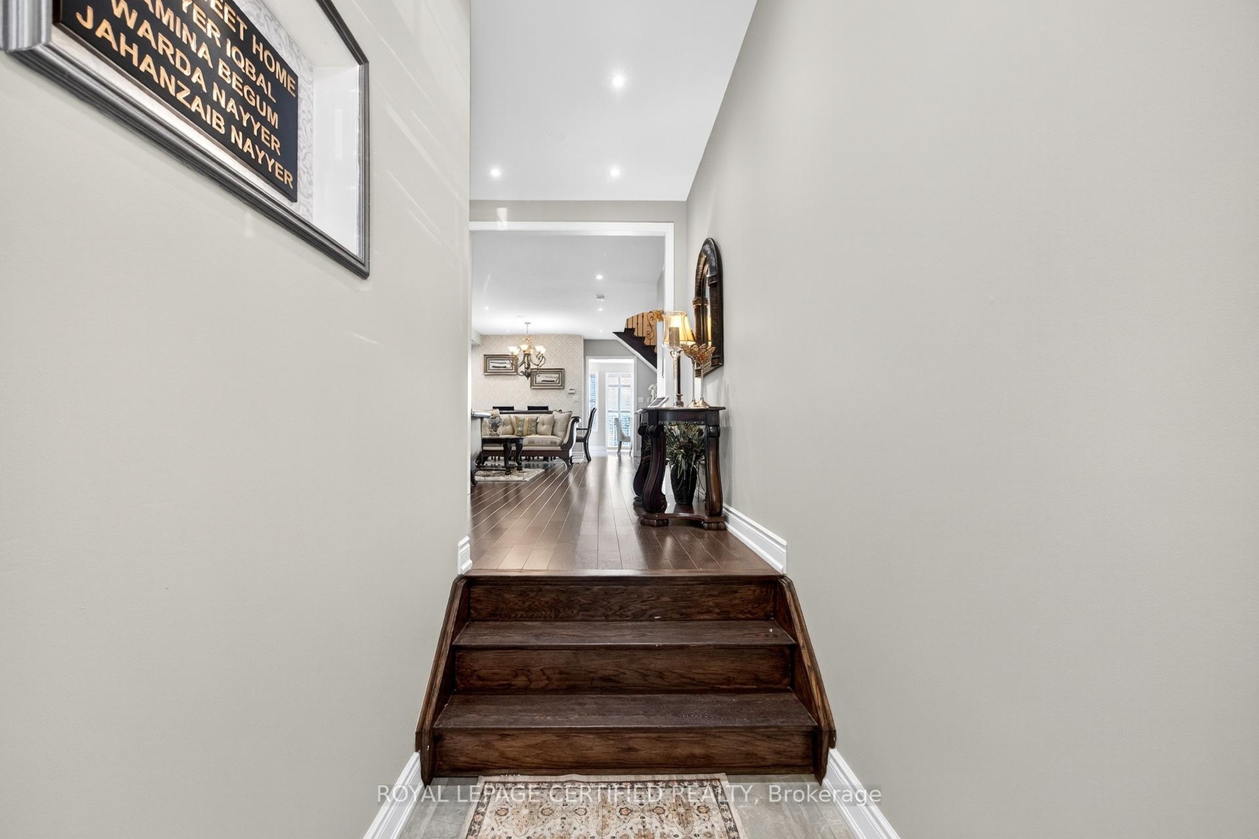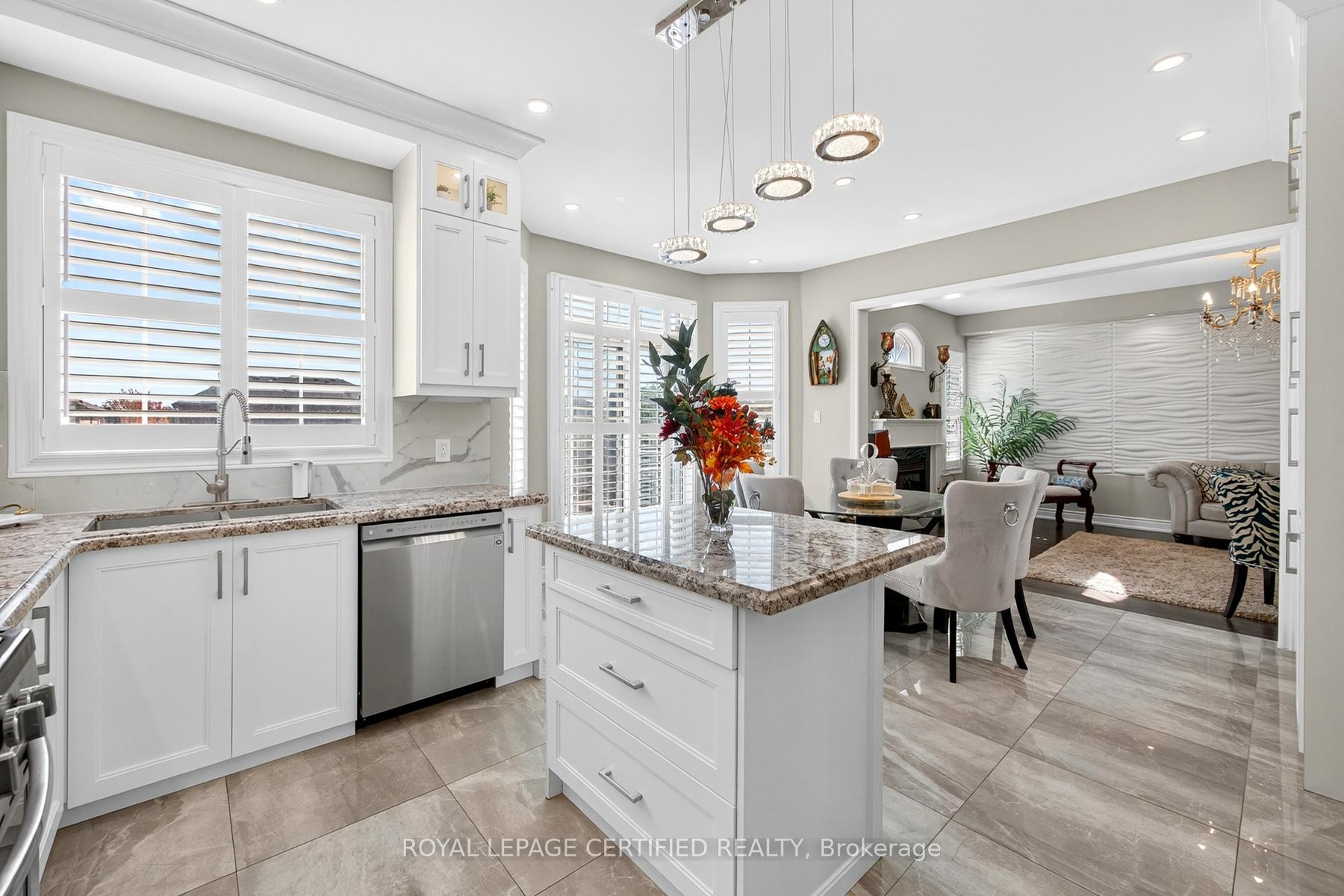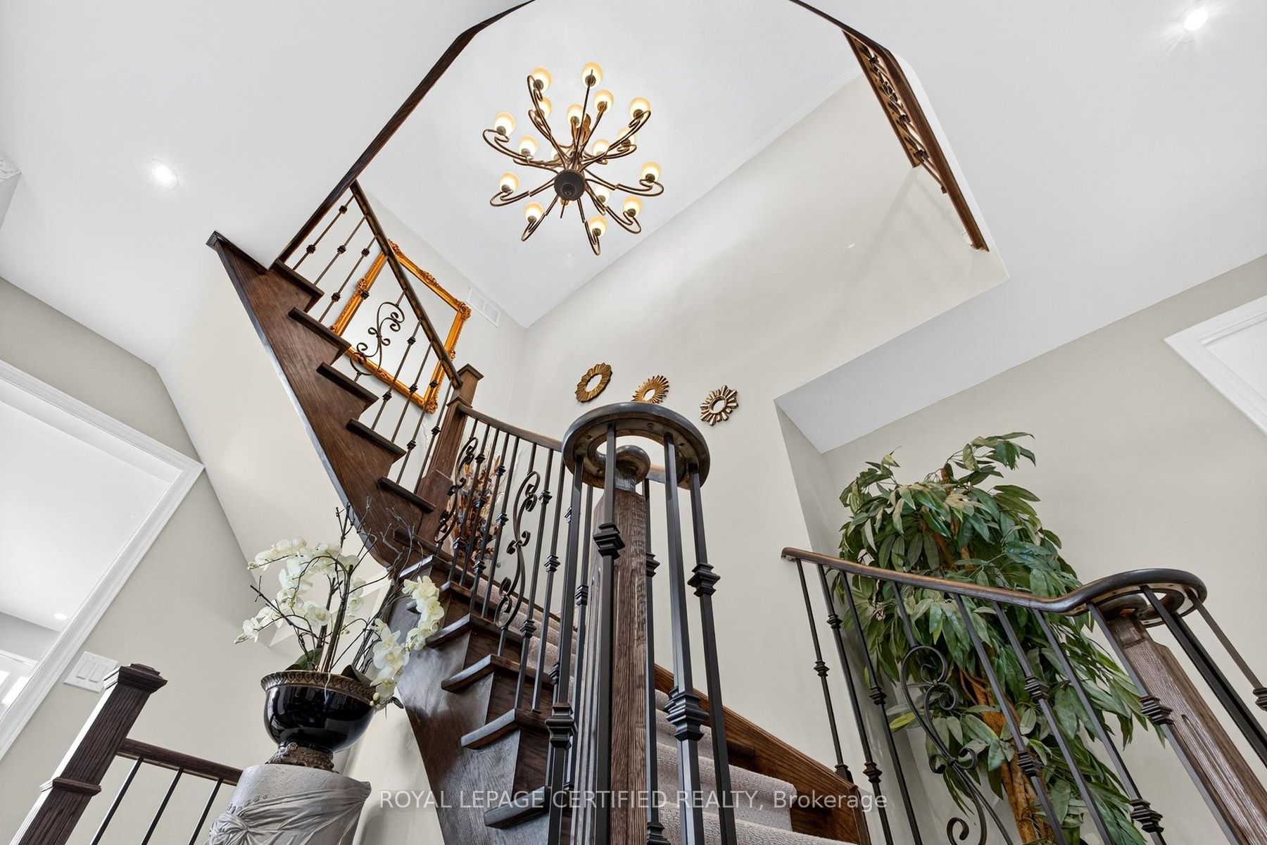 Offering nearly 4,000 sq ft of beautifully finished living space, this stunning Greenpark MONTANA Model (2,956 sq ft above grade as per builder) is located on a quiet, family-friendly street in one of Oakville's most desirable communities, just minutes from the new Oakville Hospital and surrounded by scenic trails and green space. This extensively renovated home (over $300K spent) features 9-ft ceilings, 8-ft custom doors, smooth ceilings on the main level. Elegant hardwood spiral staircase with wrought iron pickets, hardwood flooring, California shutters, gas fireplace, pot lights, and modern light fixtures throughout. This exclusive 5-washroom layout model sits on a quiet street. Upgraded kitchen showcasing extended tall white cabinetry, granite countertops, backsplash, central island, and stainless steel appliances, a very convenient office/den and laundry on the main level. A perfect luxurious model home for family breakfasts, entertainment, or perfect for evening parties. The main floor is adorned with premium 24x24 porcelain tiles, adding to the luxurious feel. Upstairs, you'll find four spacious bedrooms, three full bathrooms on the second level, and a versatile additional sitting area or den ideal for a home office, kids' play area, or relaxing space. A fully finished walk-out basement with kitchen and 3-pc washroom along with electric fireplace. Major updates include a new hot water tank (owned, 2024), furnace and central A/C (2021), and roof (2020). This thoughtfully upgraded and distinct layout is designed for modern family living. This move-in-ready home is a rare find in a premium Oakville location.