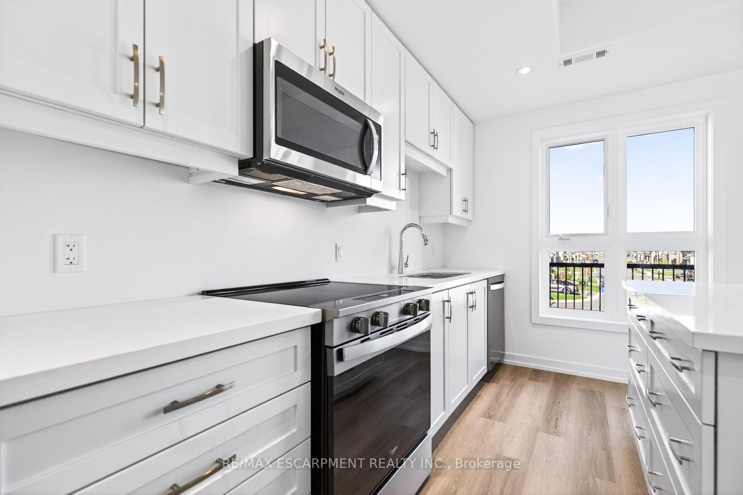 Stunning brand new, never lived in stacked townhome by award-winning New Horizon Development Group. This 3-bedroom, 2.5-bathroom unit offers 1,362 sq ft of contemporary living space, featuring a functional open-concept layout, a 4-piece ensuite in the principal bedroom, and a 160 sq ft private terrace. Additional features include a single-car garage, quartz countertops, vinyl plank flooring, 12x24 tile, and pot lights in both the kitchen and living room. . Just minutes from vibrant downtown Waterdown, you'll have access to boutique shopping, diverse dining, and scenic hiking trails. With easy access to major highways and transit, including Aldershot GO Station, you're never far from Burlington, Hamilton, or Toronto.