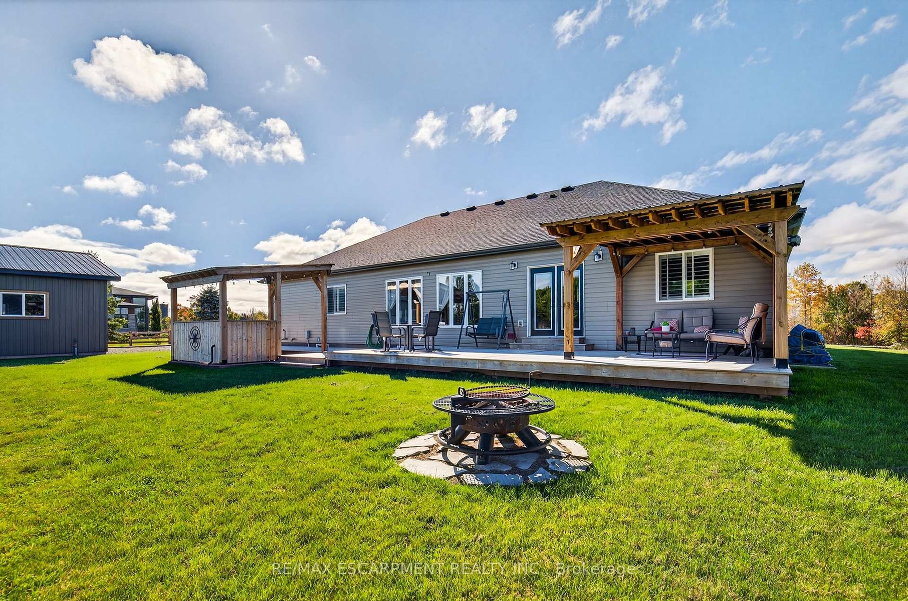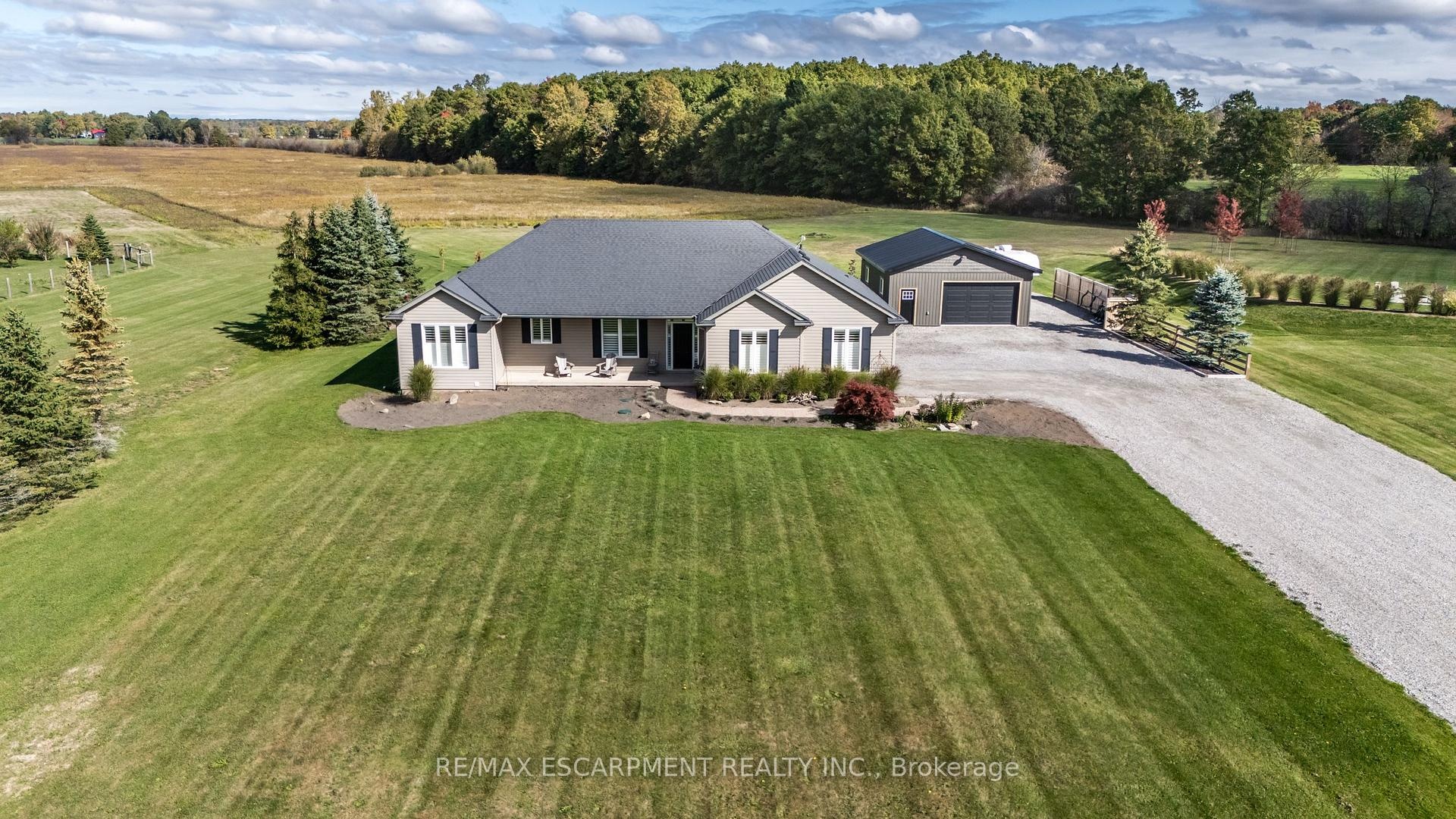 Experience the perfect blend of luxury and comfort in this stunning 1,902 sq. ft. bungalow set on 2.09 beautifully landscaped acres. Fully renovated main level and truly move-in ready. This 3 bedroom, 2 bath home is designed to impress. Step inside to find Luxury Vinyl Plank flooring throughout, freshly painted interiors, and a gorgeous modern kitchen with a breakfast bar, idealfor morning coffee or casual entertaining. The spacious great room boasts soaring cathedral ceilings, custom fireplace, and built-in shelving, creating the perfect gathering space for family and friends. The 1,853sq ft partially finished basement offers endless potential. Outdoors, you'll fall in love with the in-ground pool with nothing but open space, offering the ultimate private oasis. The backyard deck features both a cozy covered seating area along with a covered culinary space, perfect for summer barbecues and evening entertaining. For hobbyists or those with a love for mechanics, the separate serviced shop (with both water and hydro) provides ample room for projects, storage, or toys. This property truly has something for everyone inside and out.