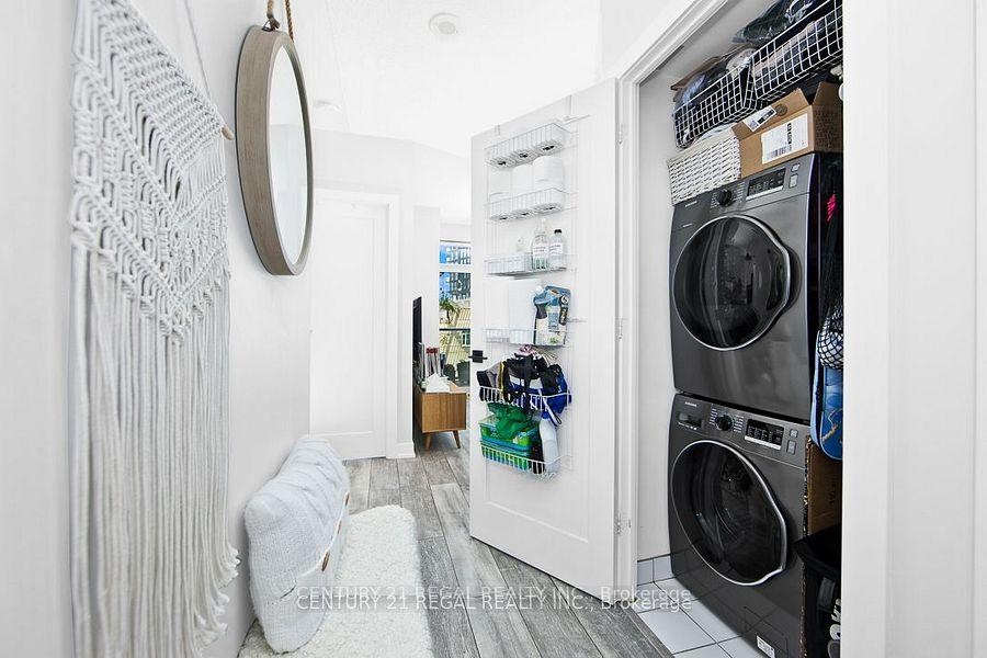 Welcome to this meticulously maintained, upgraded suite at The Verve - a highly regarded Tridel-built, green-certified building. The Verve features stunning amenities that suit all your needs included in very low maintenance fees! This spacious unit features a functional open-concept layout with laminate flooring throughout, creating a modern and cohesive look. The updated kitchen is equipped with granite countertops, ample cupboard space, open shelving, and contemporary finishes perfect for both cooking and entertaining. Enjoy beautiful east-facing views that fill the space with natural light. Thoughtful upgrades and quality finishes throughout make this home move-in ready and truly stand out. Perfect for urban professionals or savvy investors!