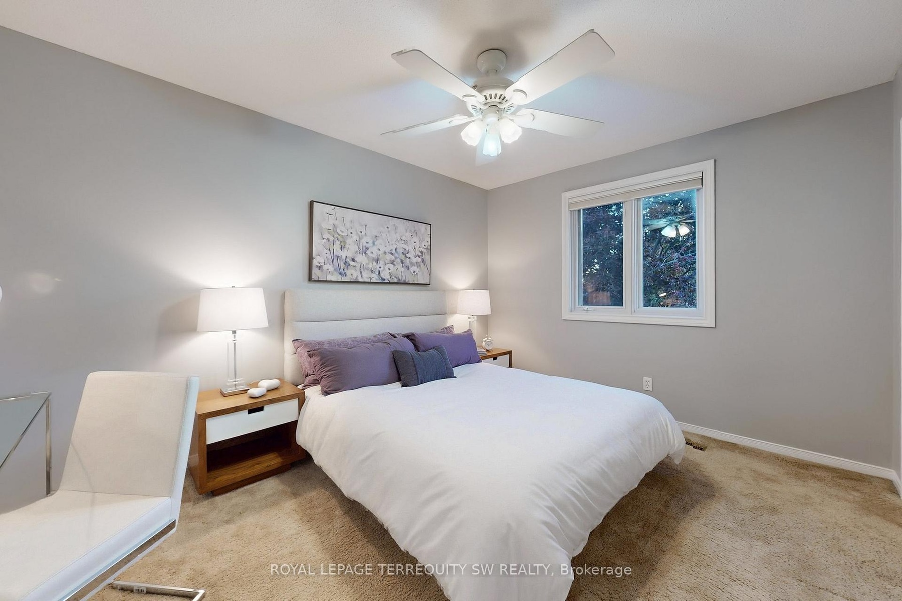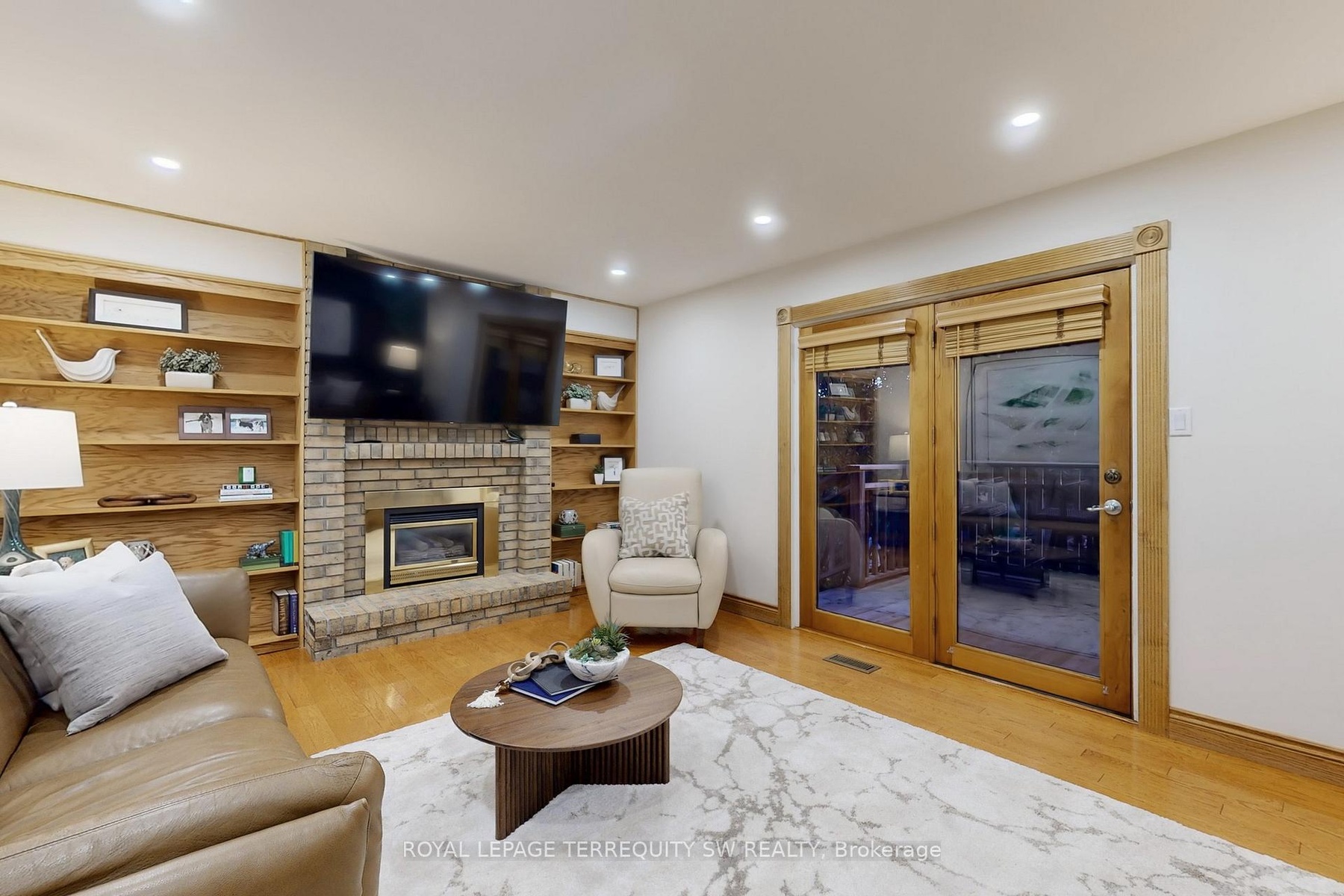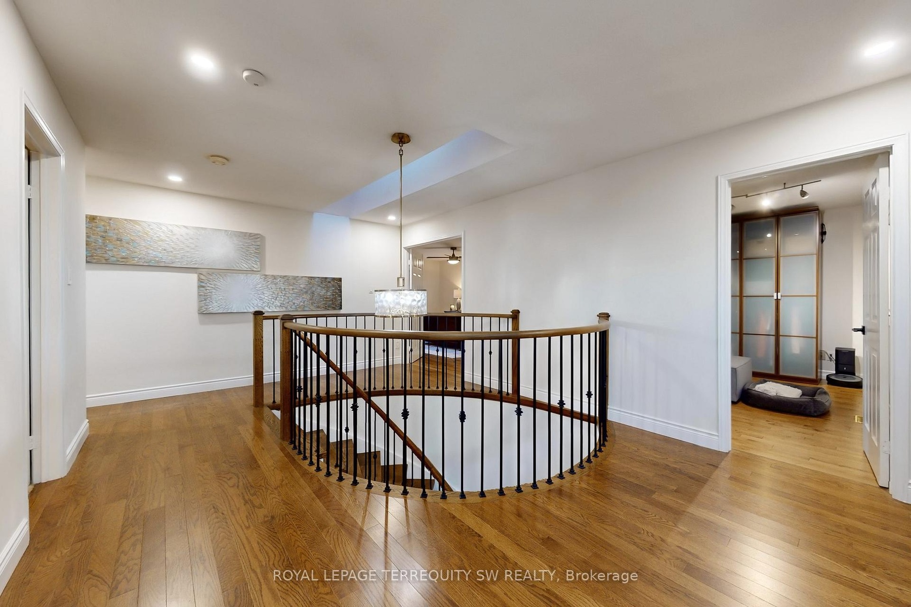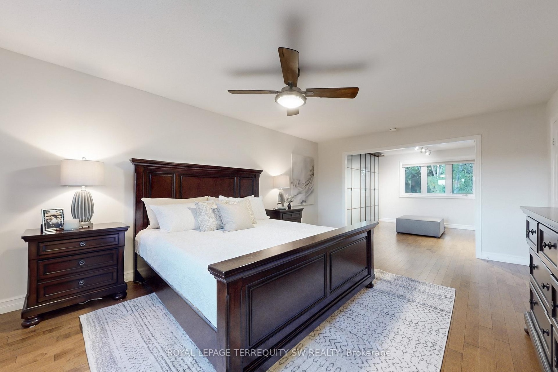 Tucked away on a quiet cul-de-sac in one of Brampton's most established enclaves, 8 Chalmers Court offers an exceptional balance of elegance, comfort, and family functionality. This detached two-storey executive brick home sits on a mature, pie-shaped lot-52 ft at the front widening to over 130 ft at the rear-surrounded by manicured gardens, mature trees, and resort-style outdoor living with a stone patio, gazebo, and pristine heated in-ground pool. A gracious foyer opens to distinct principal rooms with refined finishes: formal living and dining rms with French doors, smooth ceilings, and gleaming hardwood floors; a bright family room anchored by a gas fireplace, built-in cabinetry, and patio doors to the sun deck. The chef's kitchen impresses with granite countertops, centre island, custom backsplash, gas stove, under-mount lighting, pot lights, beverage fridge, and stainless-steel appliances. The adjoining breakfast room-featuring a bay window and walk-out to the deck-overlooks the lush gardens, gazebo, and pool. Upstairs, the spacious primary suite (incorporating the fifth bedroom) offers a private dressing area, hardwood floors, and a luxurious 4-pc ensuite with heated flrs, dble sinks, glass shower, and standalone tub. Three additional bedrooms and a skylit hallway complete the level. The finished lower level adds a versatile recreation room with wood-burning fireplace, wet bar, games area, 4-pc bath with Jacuzzi, exercise space, built-ins, and a walk-out to the patio. Recent updates incl roof (2023), main bath (2016), new blinds throughout, 200-amp service + pony panel, pool liner(10 yrs), pump (5 yrs), heater(10 yrs), and backyard patio (3 yrs). Additional features: central air, central vac, security system, in-ground sprinklers, landscape lighting, and gas line for BBQ/fire table. Minutes to schools, parks, and major routes (410/407/401), this is a beautifully maintained executive residence on a peaceful court-where pride of ownership shines inside and out.