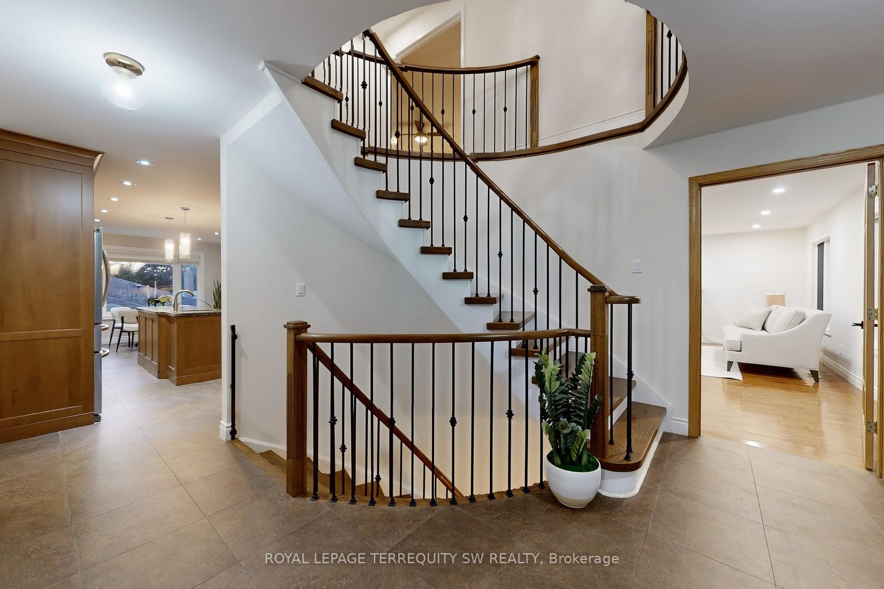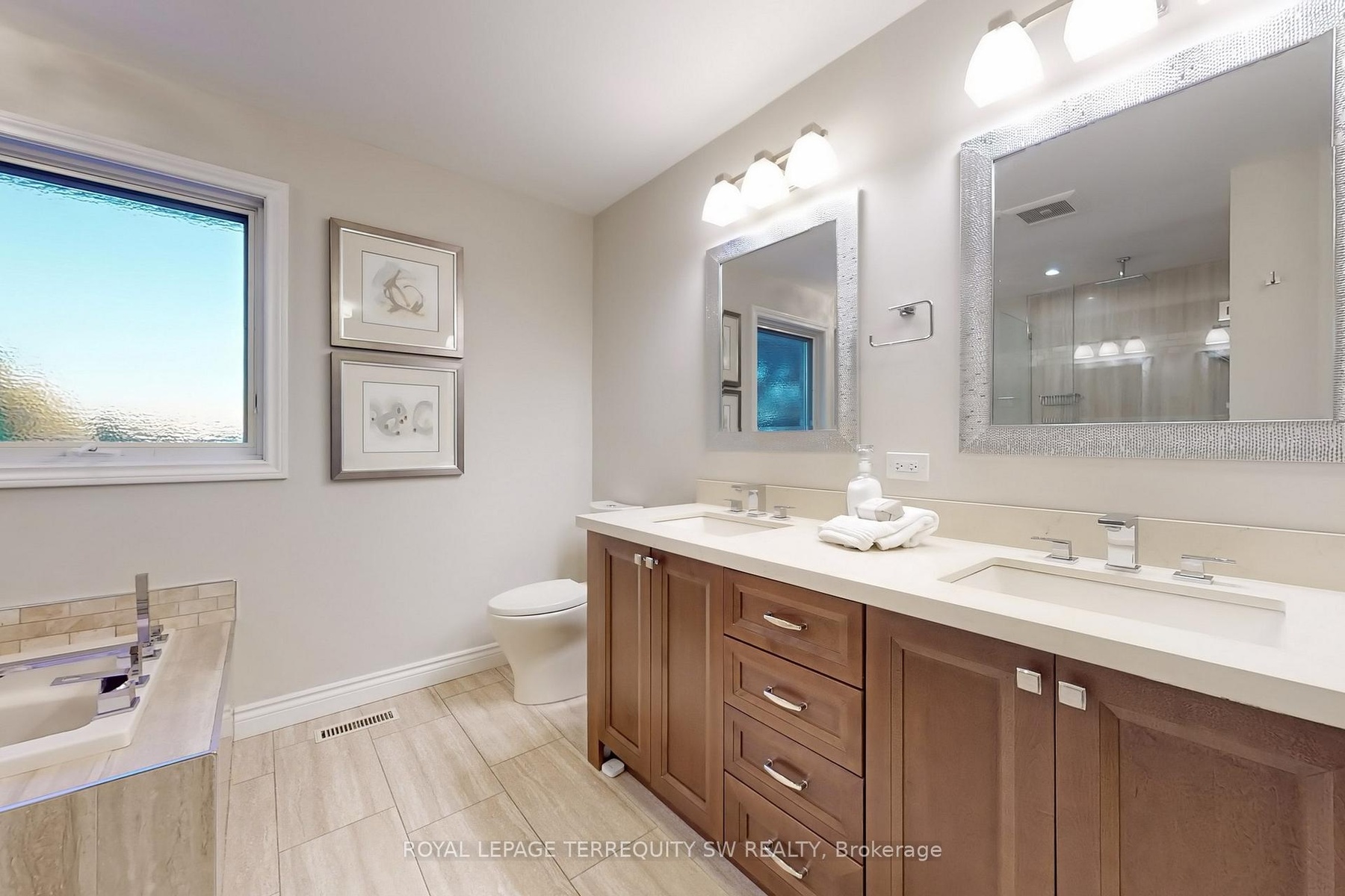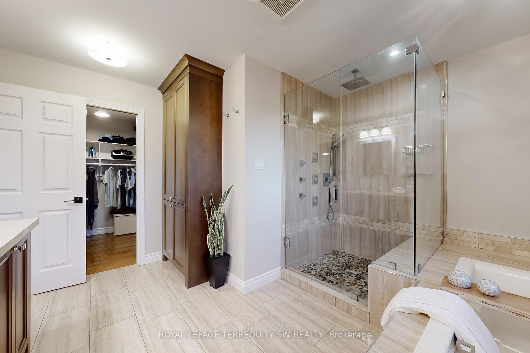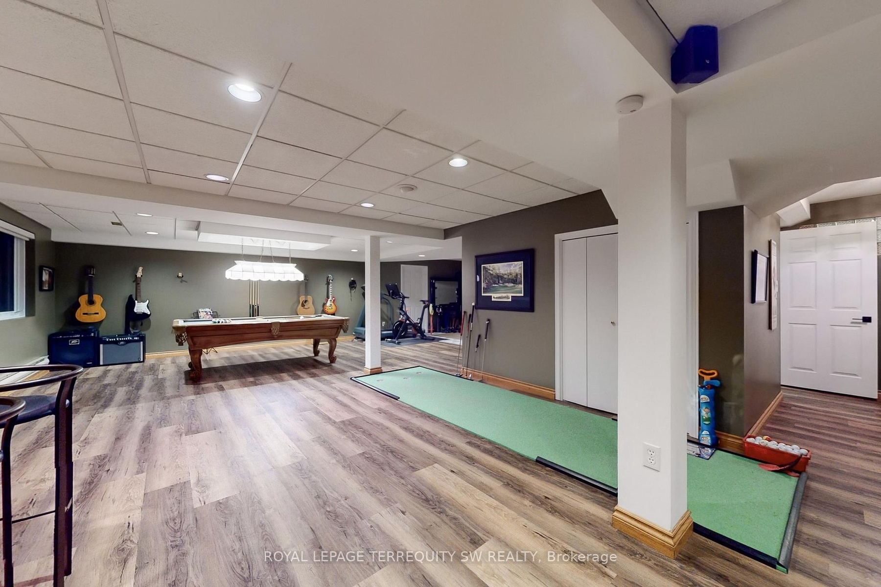 Tucked away on a quiet cul-de-sac in one of Brampton's most established enclaves, 8 Chalmers Court offers an exceptional balance of elegance, comfort, and family functionality. This detached two-storey executive brick home sits on a mature, pie-shaped lot-52 ft at the front widening to over 130 ft at the rear-surrounded by manicured gardens, mature trees, and resort-style outdoor living with a stone patio, gazebo, and pristine heated in-ground pool. A gracious foyer opens to distinct principal rooms with refined finishes: formal living and dining rms with French doors, smooth ceilings, and gleaming hardwood floors; a bright family room anchored by a gas fireplace, built-in cabinetry, and patio doors to the sun deck. The chef's kitchen impresses with granite countertops, centre island, custom backsplash, gas stove, under-mount lighting, pot lights, beverage fridge, and stainless-steel appliances. The adjoining breakfast room-featuring a bay window and walk-out to the deck-overlooks the lush gardens, gazebo, and pool. Upstairs, the spacious primary suite (incorporating the fifth bedroom) offers a private dressing area, hardwood floors, and a luxurious 4-pc ensuite with heated flrs, dble sinks, glass shower, and standalone tub. Three additional bedrooms and a skylit hallway complete the level. The finished lower level adds a versatile recreation room with wood-burning fireplace, wet bar, games area, 4-pc bath with Jacuzzi, exercise space, built-ins, and a walk-out to the patio. Recent updates incl roof (2023), main bath (2016), new blinds throughout, 200-amp service + pony panel, pool liner(10 yrs), pump (5 yrs), heater(10 yrs), and backyard patio (3 yrs). Additional features: central air, central vac, security system, in-ground sprinklers, landscape lighting, and gas line for BBQ/fire table. Minutes to schools, parks, and major routes (410/407/401), this is a beautifully maintained executive residence on a peaceful court-where pride of ownership shines inside and out.