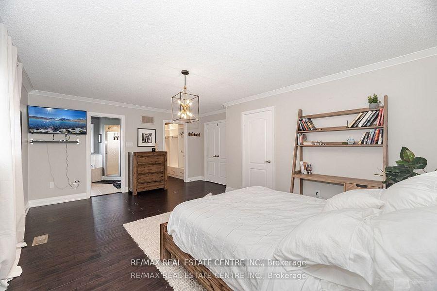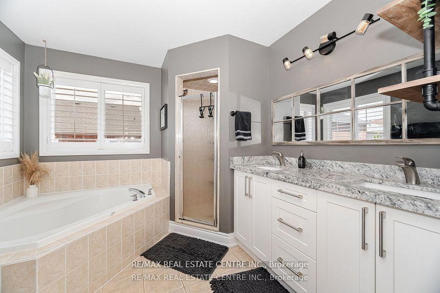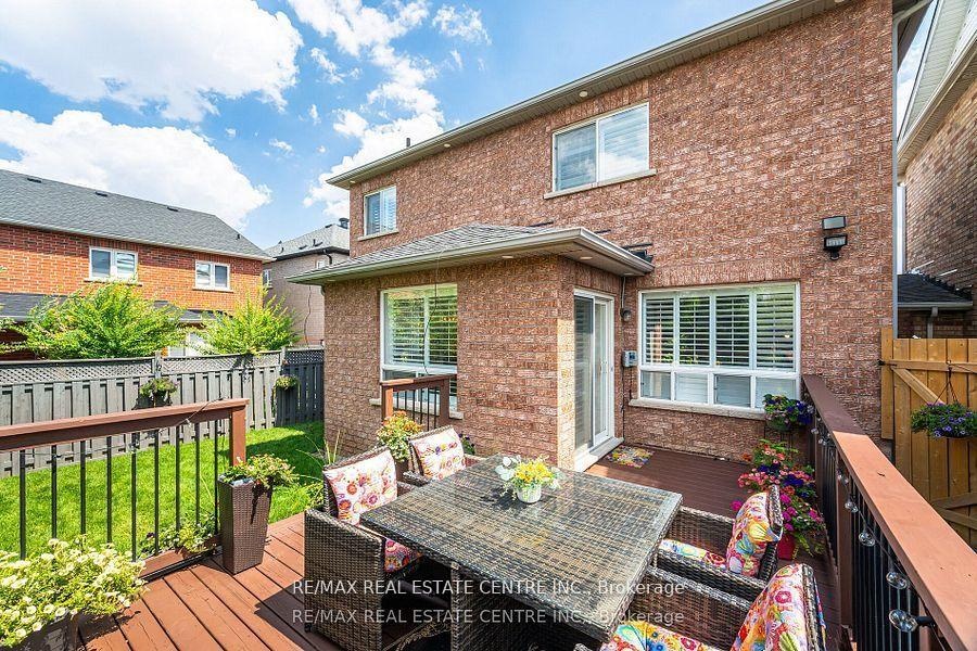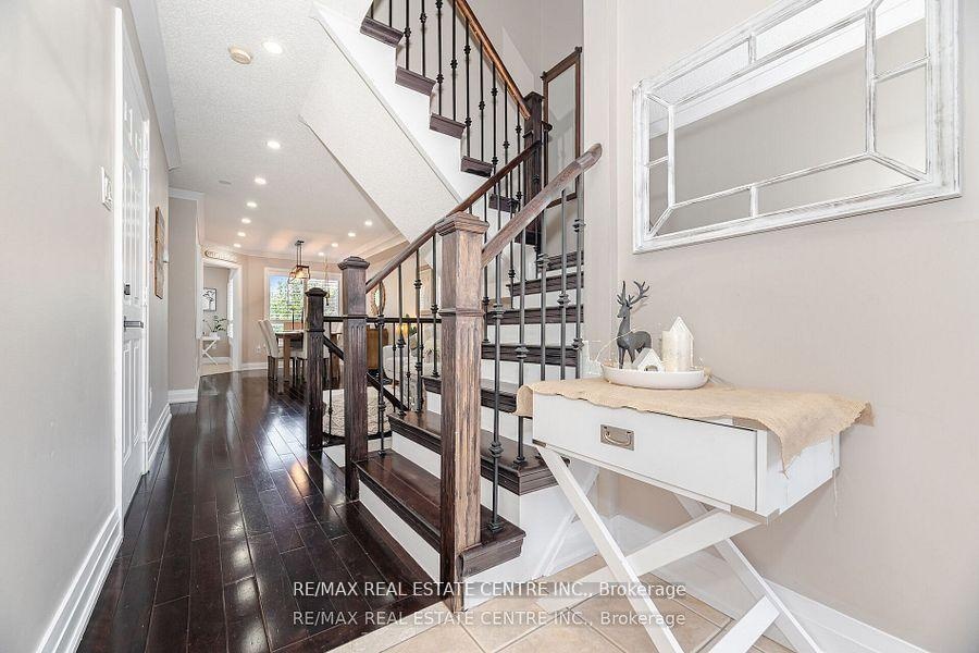 Welcome to this tastefully upgraded one of a kind Fernbrook Home in highly sought-after, family-friendly neighbourhood in Fletcher's Meadow! This beautifully maintained single owner home offers the perfect blend of comfort, style, and convenience. Hardwood floors, custom-built oak staircase, elegant crown moulding,Upgraded baseboards&trims, Crown moulding, potlights, California Shutters(wood), custom closets in all bedrooms, professionally landscaped and maintained garden with underground sprinkler system. Upstairs, you will find three generously sized bedrooms with upgraded laminate flooring. The primary suite has a massive custom walk-in closet, a secondary closet, California Shutters and a five-piece ensuite with a soaker tub and separate shower. The tastefully upgraded finished basement offers an additional living/ entertainment area, and an in-law suite.