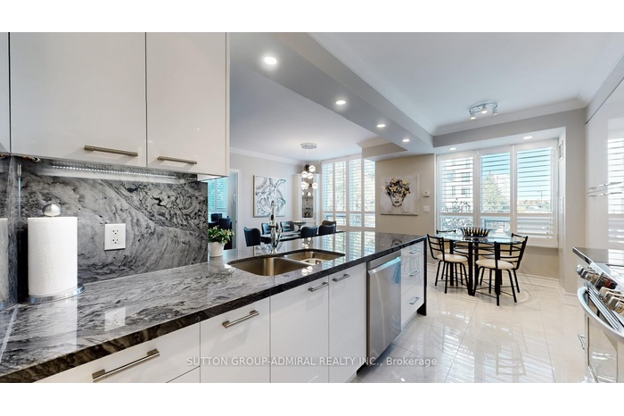 Rarely Available! Discover this Stunning 2+1 Bedroom Corner Unit in the highly coveted Promenade Circle community! This beautifully redesigned and meticulously renovated 2nd-floor suite offers an exceptional blend of luxury, space, and functionality - boasting approximately 1,300 sq ft of thoughtfully planned living space. Perfect for downsizers, professionals, or anyone seeking sophisticated comfort in a prime location. From the moment you step inside, you'll be impressed by the elegant engineered hardwood flooring, modern LED pot lights, smooth ceilings, and custom cabinetry throughout. Every detail has been considered - including upgraded hardware, designer window coverings, and the rare addition of a central vacuum system with attachments for effortless cleaning. Flooded with natural light through expansive panoramic windows, each room feels open and airy. Step out onto the large west-facing balcony, where you'll enjoy peaceful views and breathtaking sunsets - your own outdoor oasis! The custom open-concept kitchen is a chef's dream, featuring quartz countertops, upgraded cabinets, and an added pantry for ample storage - ideal for both entertaining and everyday living. The spacious primary bedroom features a large walk-in closet with custom built-ins, an extra double closet, and a spa-inspired ensuite with a frameless glass shower, elegant double vanity, and bidet toilet for added comfort. The second bedroom includes a full wall unit with 2 Murphy beds, perfect for guests or flexible use. A generously sized den serves easily as a third bedroom, office, or media room. There's also a separate laundry room with a utility sink. Enjoy resort-style amenities: indoor pool, gym, squash court, game and party rooms, guest suites, 24/7 security, pet-friendly areas, and more! Steps to Promenade Mall, T&T Supermarket, community centre, transit, and top-rated schools. This is truly turnkey living just move in and enjoy a life of style, comfort and convenience!