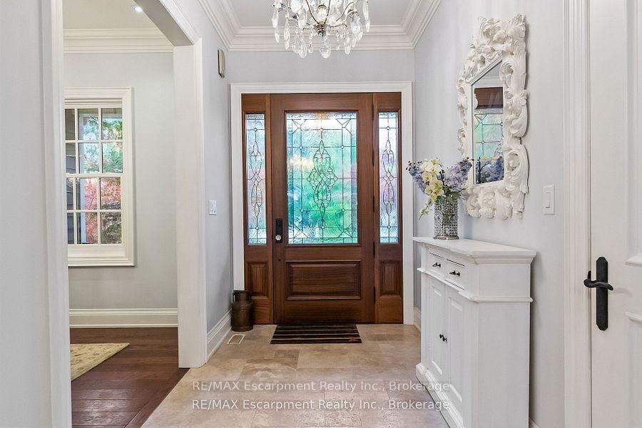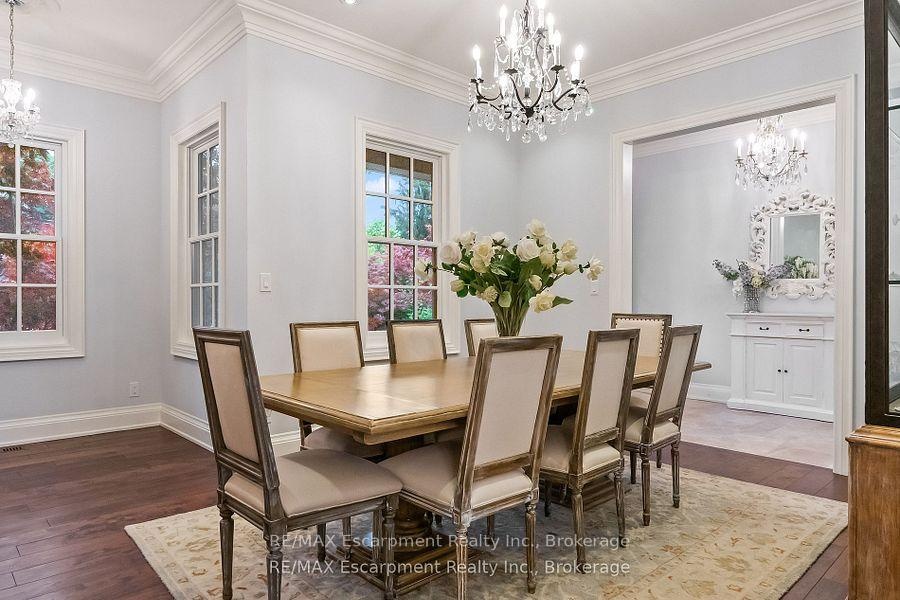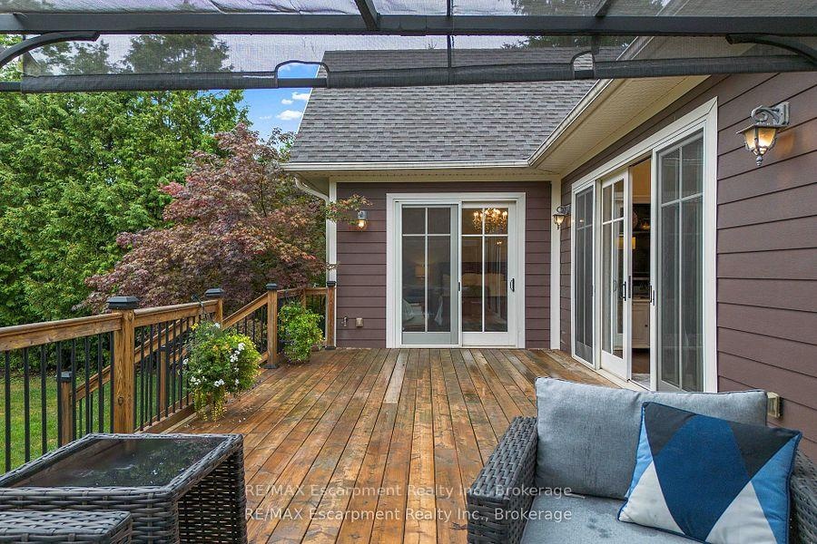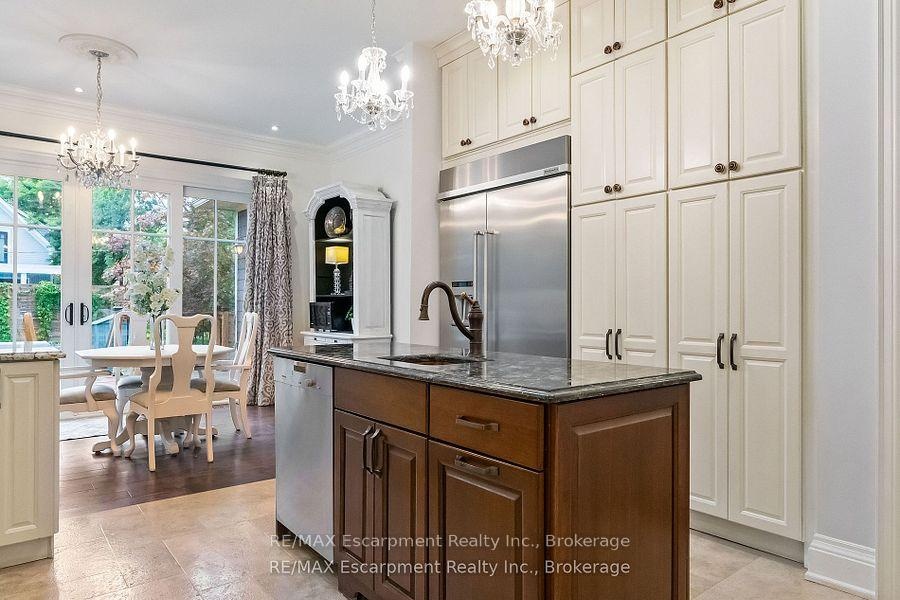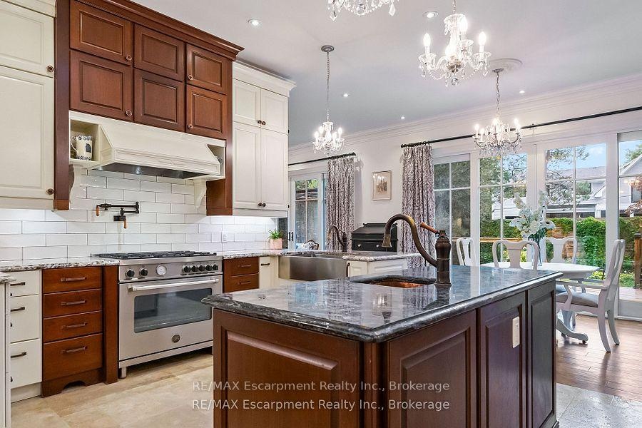 Discover this stunning custom-built bungalow nestled in prestigious Southeast Oakville, where architectural excellence meets family comfort. This exceptional property showcases 4,356 square feet of thoughtfully designed living space on a premium-sized lot with an expansive backyard perfect for outdoor activities. The main floor impresses with soaring 10-foot ceilings and gleaming hardwood floors throughout. Enter through formal dining and living areas, where a gas fireplace creates warmth while 8-foot sliding doors flood the space with natural light. The open-concept kitchen stands as the home's culinary centerpiece, featuring granite countertops, a Bertazzoni gas stove, and distinctive Belfast sink. The breakfast area provides convenient deck access for seamless indoor-outdoor entertaining. The luxurious primary bedroom offers a five-piece ensuite complete with clawfoot soaker tub, spacious walk-in closet, and French sliding doors leading to the deck. Two additional generously-sized bedrooms complete the main level, ensuring comfortable family living. The finished lower level expands your living options with a large recreation room featuring its own gas fireplace, dedicated games area, wet bar, laundry facilities, and two additional bedrooms ideal for guests or extended family. Outside, the expansive deck provides an ideal entertaining space, while the double-wide driveway accommodates six vehicles plus a two-car garage. This quiet, family-oriented neighbourhood offers proximity to top-rated schools including Oakville Trafalgar High School, Deer Run Park for recreation, convenient grocery shopping at Sobeys Maple Grove, and excellent transit connections. Experience the finest Southeast Oakville living in this move-in ready home. Luxury Certified.