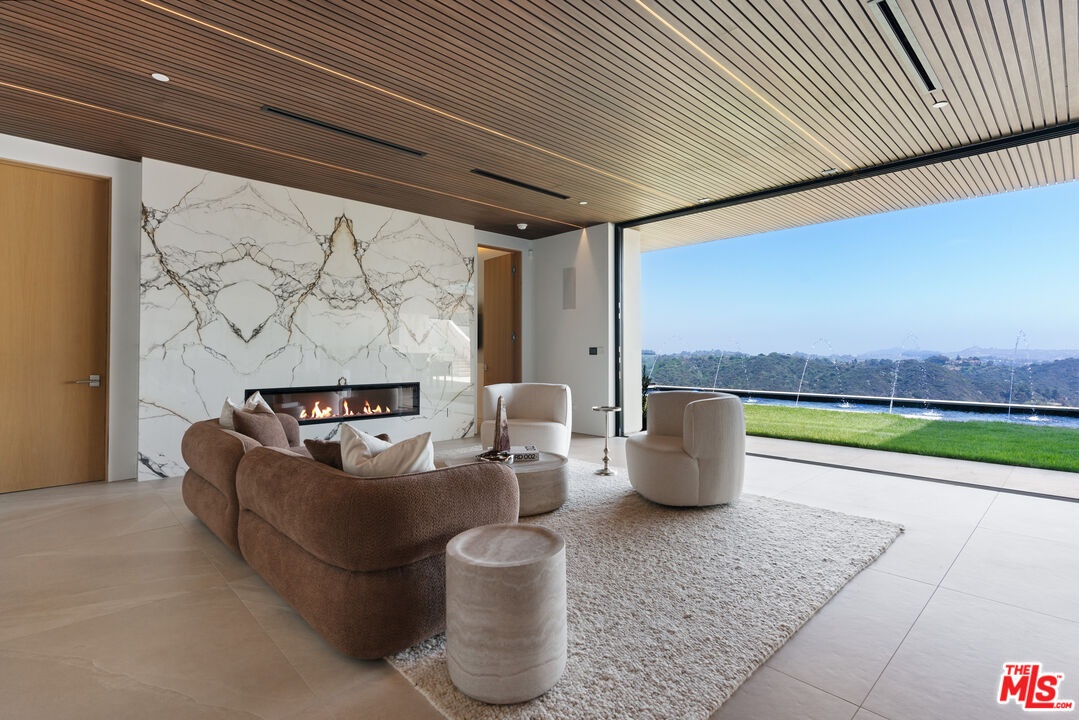 Immaculate contemporary new construction offering breathtaking panoramic views of the reservoir and Downtown LA. The impeccable quality of finishes and thoughtfully crafted design elements throughout accentuate the setting and the picturesque vistas. Enter into an expansive, open-plan living room with soaring ceilings, where large glass walls and doors seamlessly open to blend the interior with the stunning natural surroundings. The main level features a living room with an elegant marble wall fireplace, a family area, a formal dining room, a fully equipped kitchen, and a butler's kitchen, all outfitted with top-of-the-line appliances, as well as a guest bedroom. On the upper level, the primary suite awaits, complete with a large wraparound terrace that overhangs the breathtaking vistas, a marble fireplace, generously sized dual luxurious closets, and bathrooms adorned with the finest stone finishes. The north wing of this level houses three additional bedrooms, each with en-suite bathrooms, along with an upstairs laundry room.Take the elevator down to the lower level, where you'll find a state-of-the-art movie theater, an entertainment area featuring a large bar and a temperature-controlled wine wall, a gym, and two additional bedrooms. Floor-to-ceiling, automatic pocketing doors open to an outdoor kitchen and dining area, complemented by a stunning pool, spa, and yard that overlooks the reservoir.This is a rare opportunity to acquire a premier piece of real estate in Bel Air, offering unparalleled views and exceptional craftsmanship on an expansive lot of over an acre.