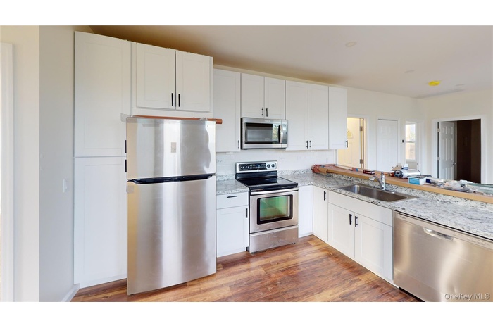 This unit has been a long time coming to market. Just fully renovated down to studs, with new windows, New roof, and completely new layout. Everything is new, both bathrooms, now have heated floors, and all surfaces and fixtures are new. There is an open floor plan for the living room, and eat-in kitchen complete with a beautiful butcher block bar area with amazing pop up outlets complete with usb charger ports. The kitchen cabinets are 42" tall, creating much more storage space. The master bedroom has a ensuite Master bathroom with the in-unit laundry. Enjoy a new heating and cooling system conveyed through ducts to each room. The unit received spray foam insulation in the floor, walls and ceiling. The energy usage in the unit will be very low compared to other units of its size. You will also get 2 assigned parking spaces in the private driveway. Only you, the first floor tenants and the landlord will use the driveway. The rear concrete patio is shared between the first floor tenants, second floor tenants and the landlord. This is your opportunity to live on the top floor which is only up one staircase, and be the first people to occupy a brand new unit in a sturdy 121 year old building with parking for 2 cars while being right in the middle of both Pelham and New Rochelle Motro North stations.