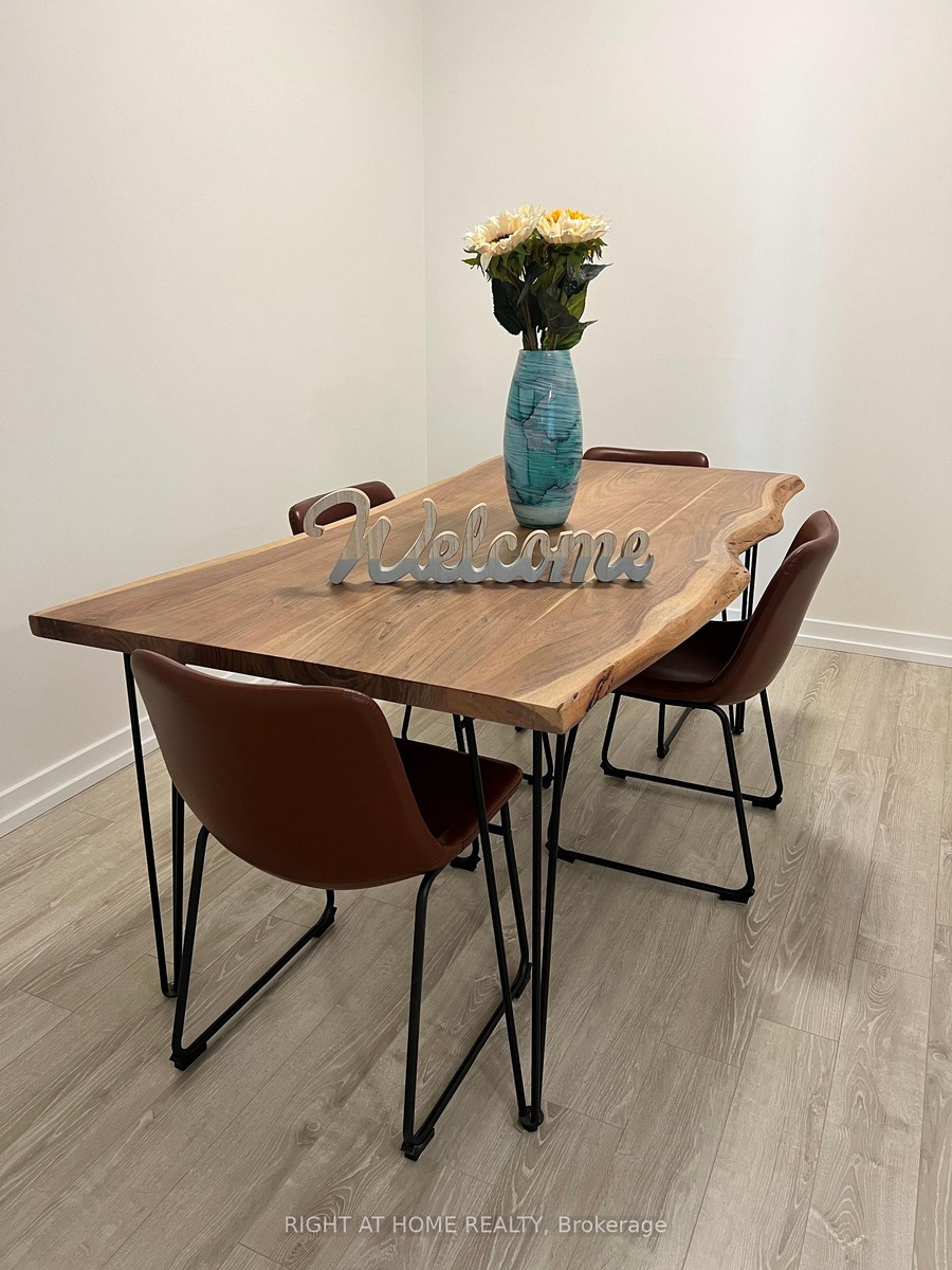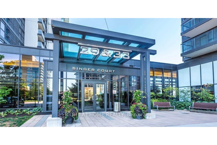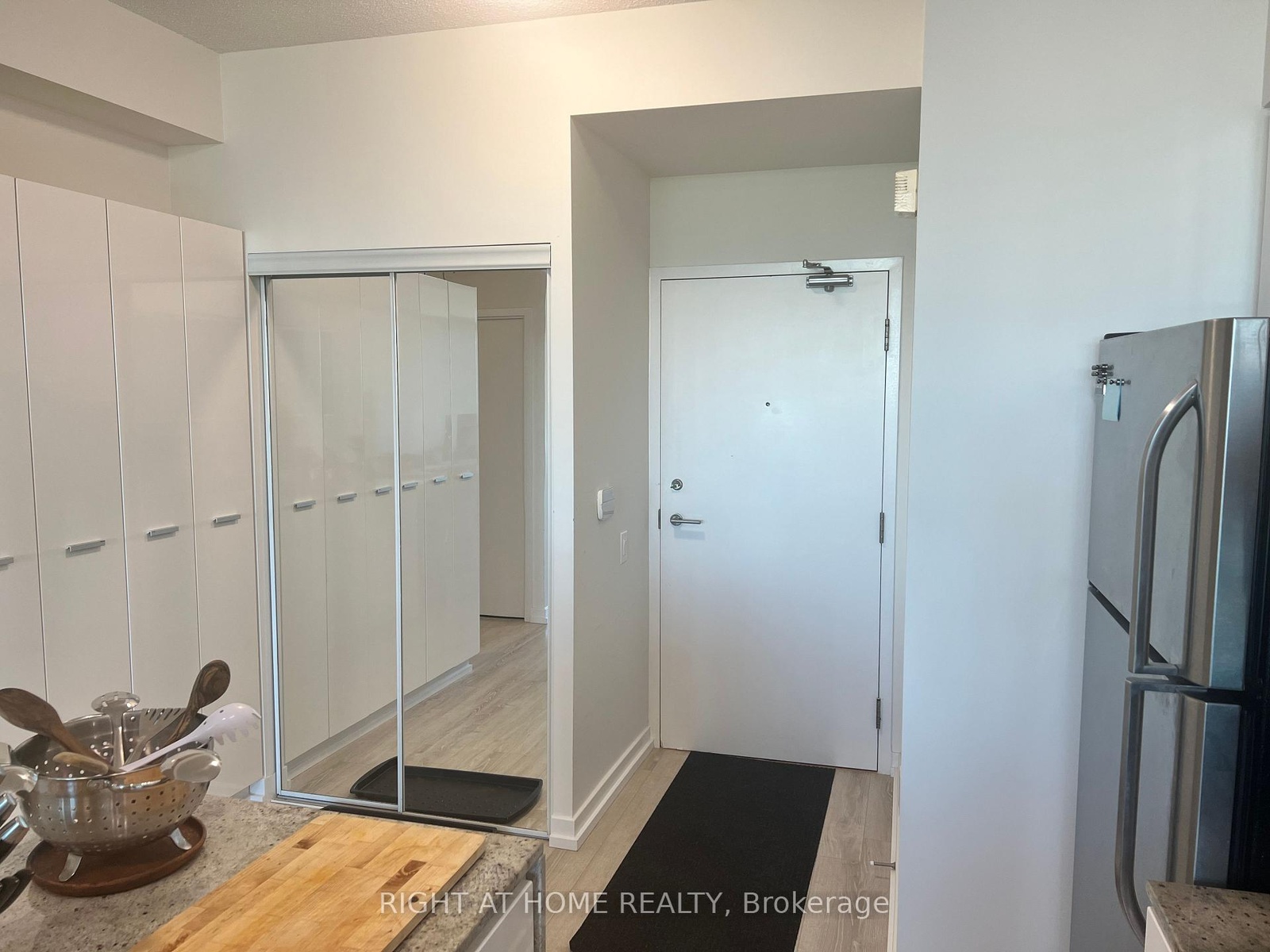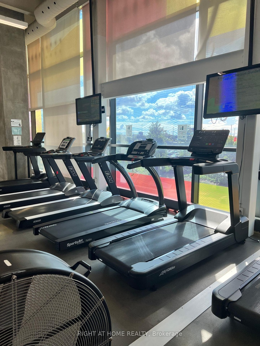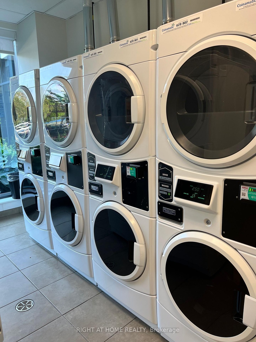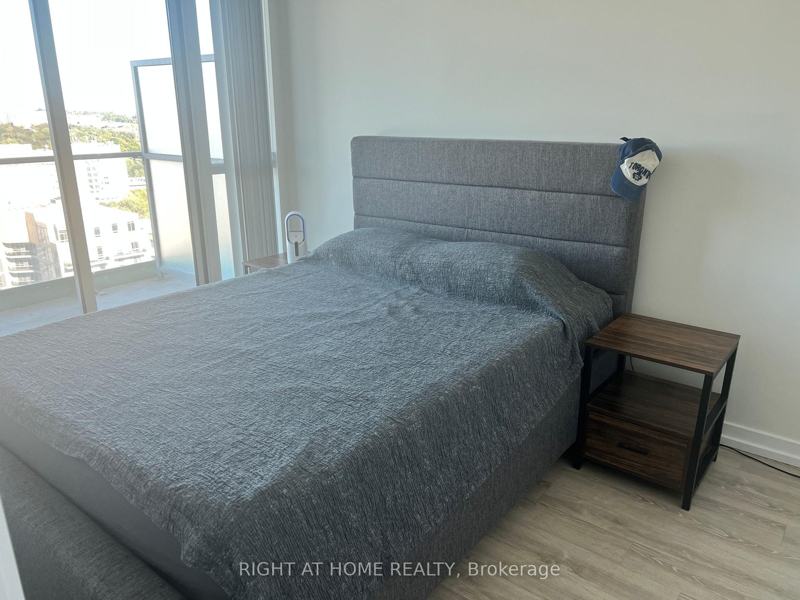 Large 1-bedroom + den (700+ SF), large balcony (116 SF) with indoor parking. With floor to ceiling windows (9-ft ceilings), and an open-concept living and kitchen area, plenty of natural sunlight covers the main living space. Unit comes either fully furnished / partially furnished / vacant of furnishings. The open concept kitchen has a large granite waterfall island and comes with S/S appliances: stove/oven, hood fan, dishwasher, fridge/freezer, microwave, toaster, and toaster oven. Large den is great for dining / work-from-home office / or bedroom area. The unit also has in-suite, all-in-one washer dryer. Plenty of cupboard space with a large modern pantry for storage. The main bedroom has a large double-sized closet, easily fits a queen-sized bed, with ceiling to floor windows and a sliding door that walks out to the balcony. Highly walkable (walk score = 80) community, with quick access to Hwy401, TTC or GoTrain. Building amenities: basketball/badminton court, an exercise/fitness room, movie room, party room, shared BBQ patio/terrace, play room for infants/young children, a lap pool with hot tub, steam room, games/card room, pet grooming room (dog-friendly building), shared laundry room (pay-as-you-go), bike racks (rentable), guest suites, & visitor parking (P1).