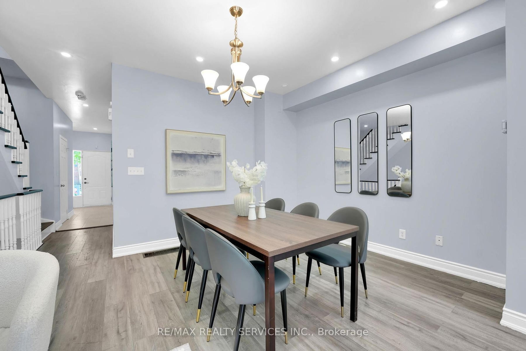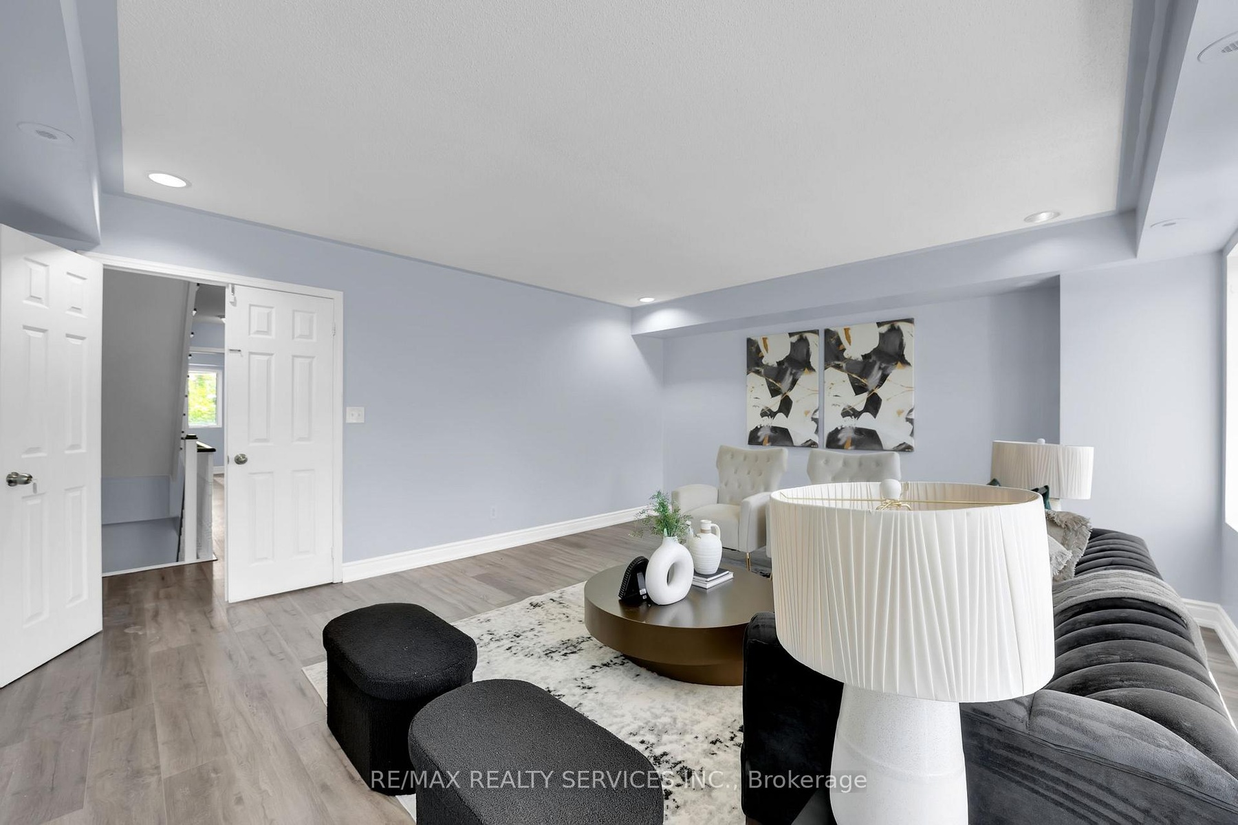 Welcome to this rare over 2200 sq/ft. End-unit, 3 story Executive townhouse just like a Semi-Detached home avaible for lease. Situated in the highly desirable family-friendly Harmony Village community. This property perfectly blends comfort, style and convenience. Backing on to the Humber River recreational trail, it offers privacy & a lush ravine view. Feature 5 Bedrooms 4 Bathrooms + finished basement with1bed & a rec room. Main level features open concept layout with living, dining, a modern kitchen with stylish backsplash a large island with extended breakfast bar & quartz countertops. This level features a walkout to a private deck, perfect for enjoying your morning coffee or relaxing with nature. Spacious 2nd level boasts a1st Master Bedroom with luxurious 5 pc en-suite & walk-in closet as well as a family room. 3rd level showcases 2nd Master Bedroom with 4pc en- suite & walk-in closet, 3 generous sized bedrooms share 4 pc common bath. Parking for two (1 garage + 1 driveway). Steps to the Finch LRT line, TTC bus routes, close to HWYS 400/407/401, community center, dining options, shopping, parks, trails, reputable schools and just minutes to York University & Humber College. Ideal location for big families, first time home buyers or investors. Upgraded from top to bottom in recent years, with renovations including new flooring, bathrooms, kitchen, pot lights, and fresh paint throughout. This home offers convenience and incredible value! Must watch attached virtual tour. Tenants pay 100% utilities.