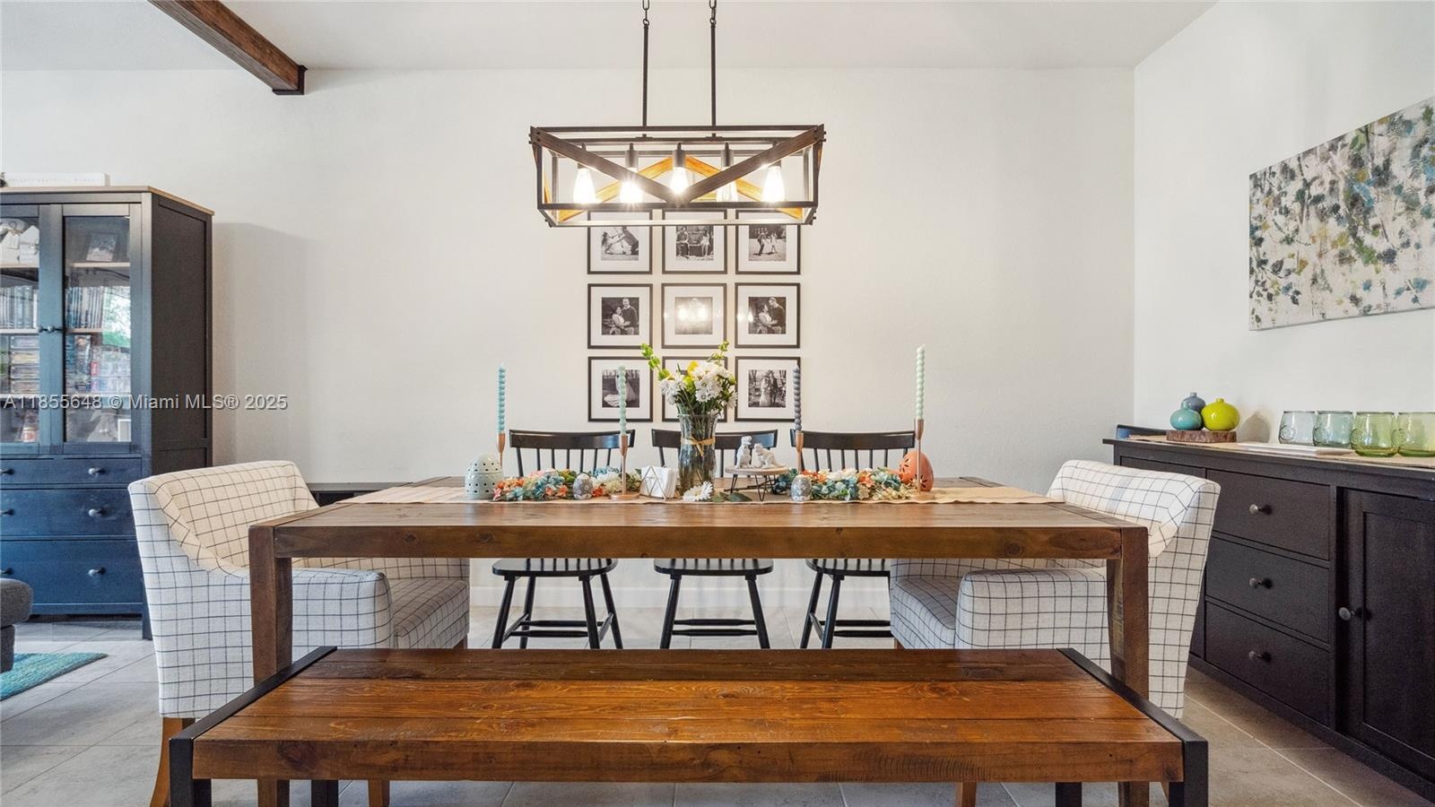 This contemporary townhome presents a large entry, airy dining room, eat in kitchen, and open concept family room complete with a custom wood beam.