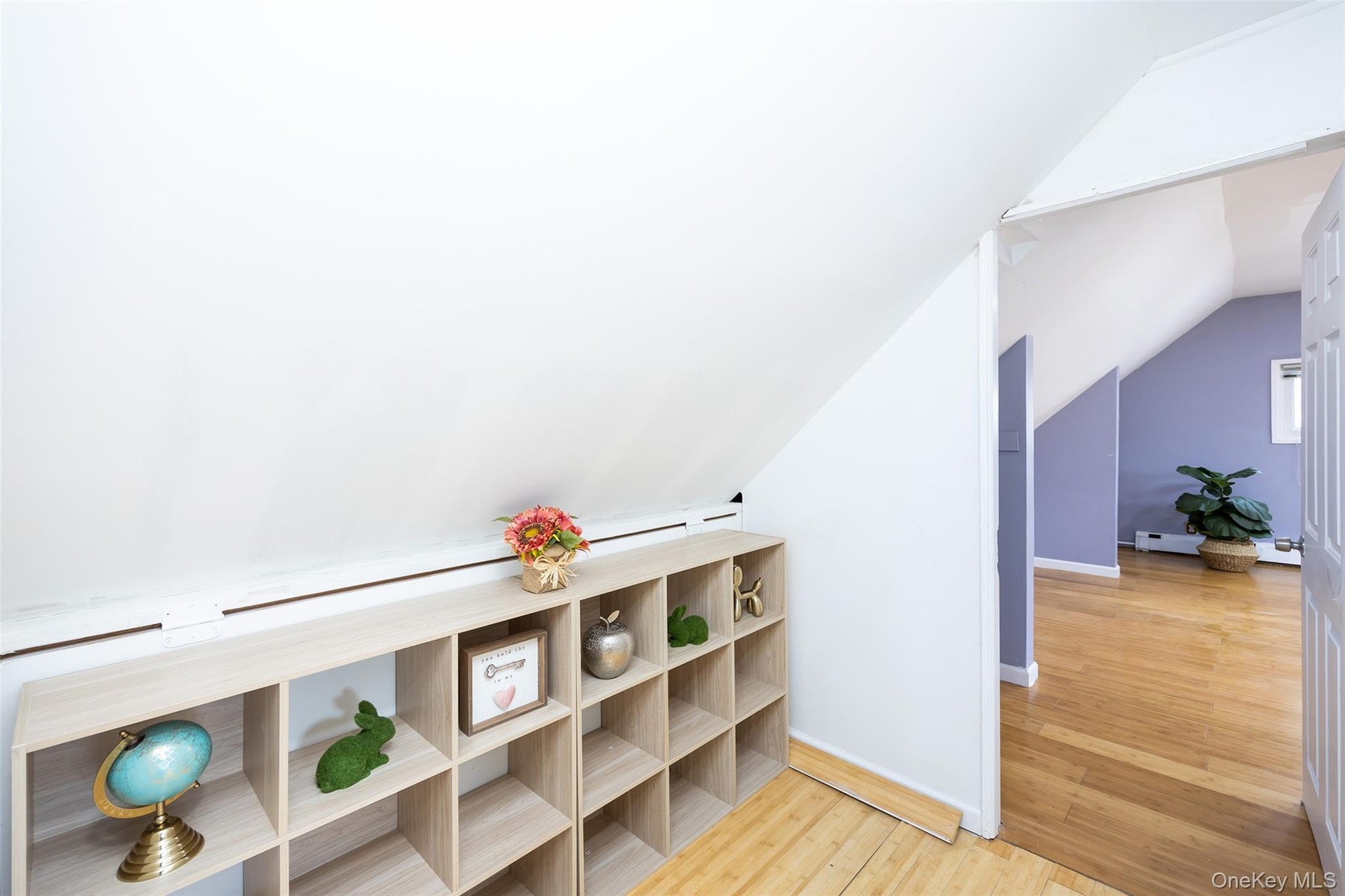 - Additional living space with lofted ceiling, recessed lighting, light wood-style flooring, and baseboard heating