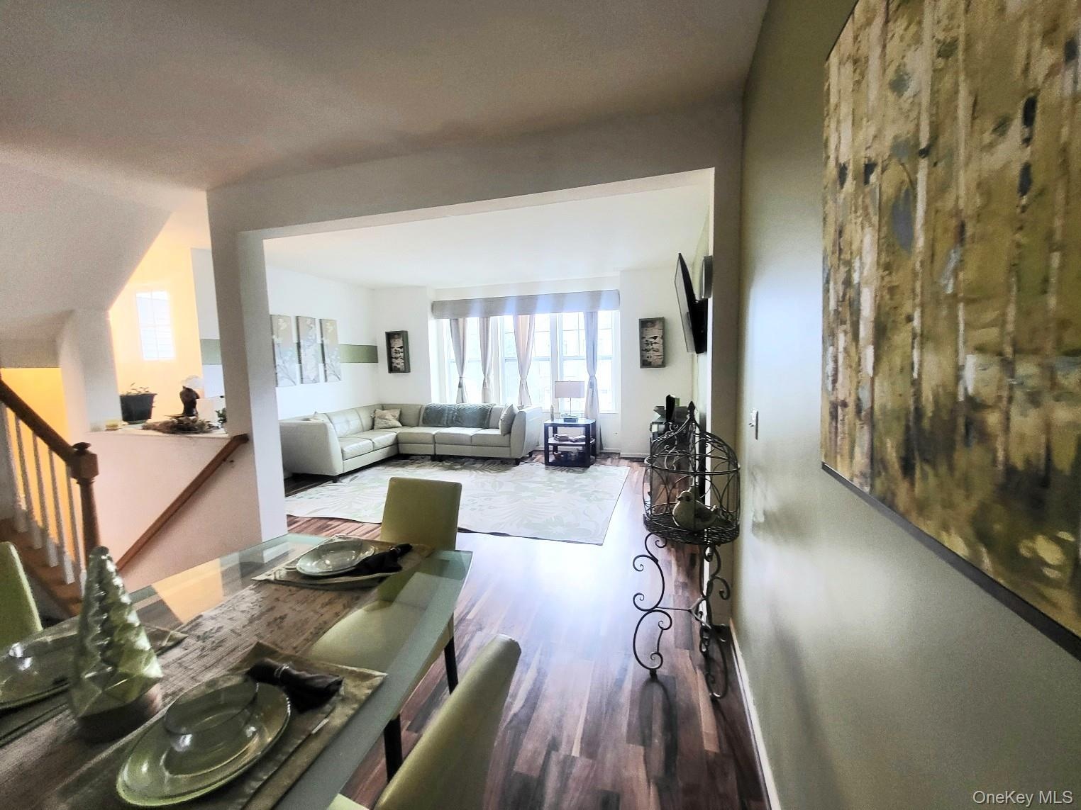 - Living area featuring dark wood-style floors and side stair case to 3 bedrooms~