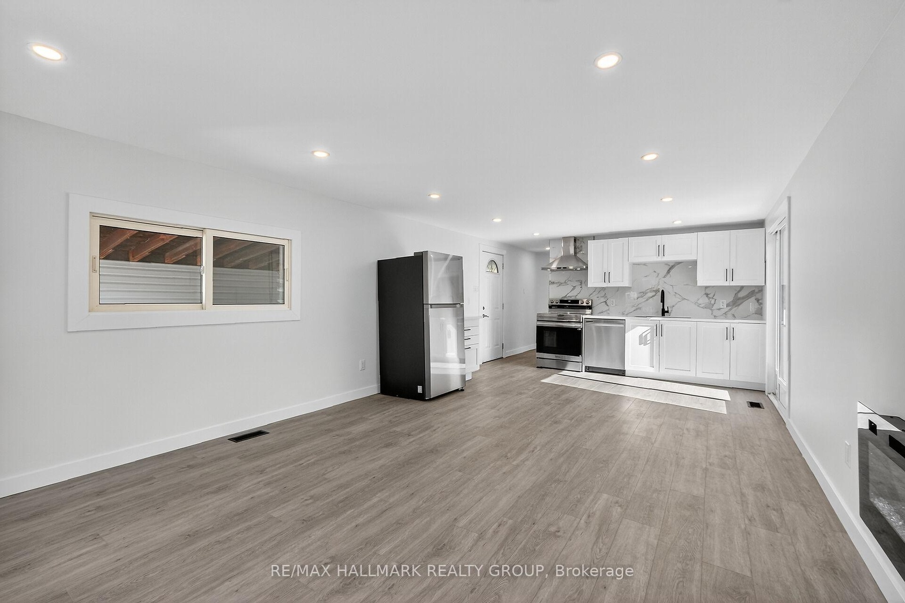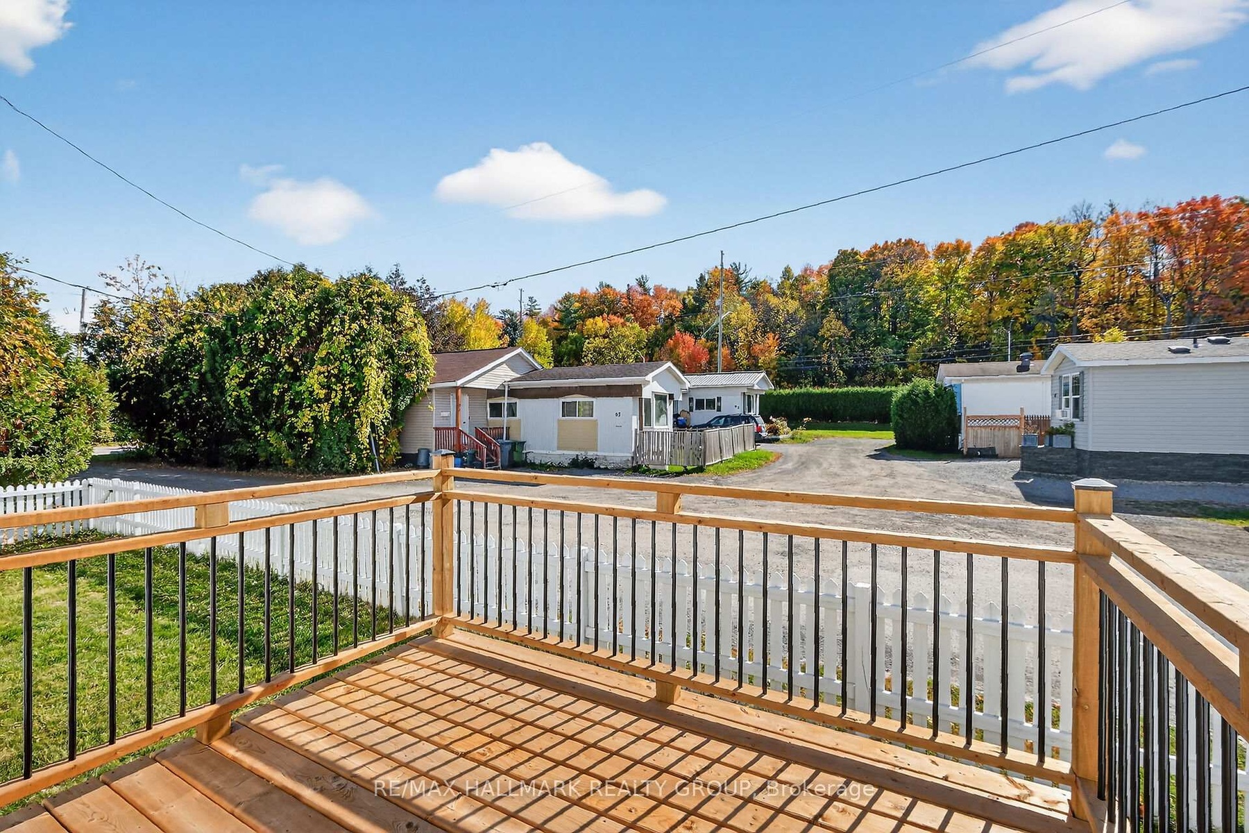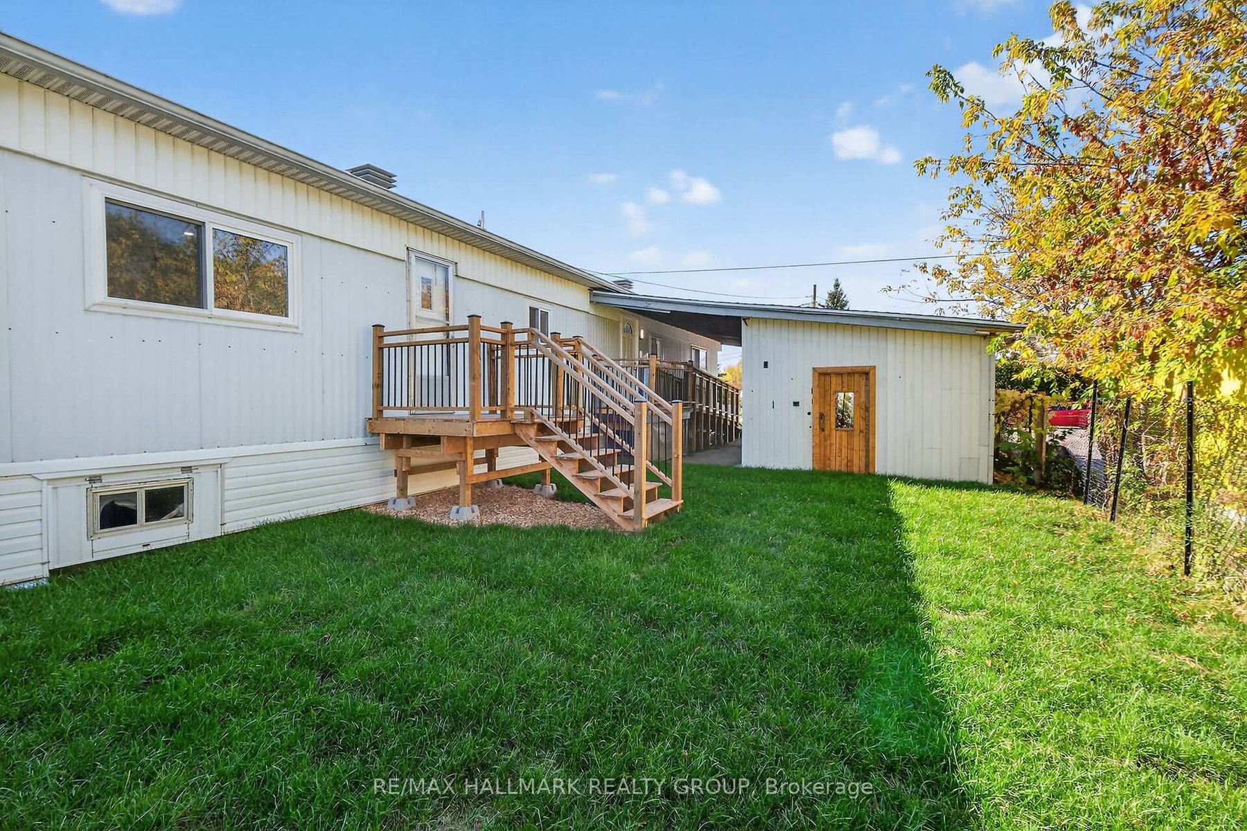 Welcome to Lot 68, Terra Nova Estates. Located on a large corner lot in a quiet, family-friendly community, this fully updated 2-bed, 1-bath home features pot lights and luxury vinyl flooring throughout. The open concept kitchen includes brand new stainless appliances, tiled backsplash and abundant cabinetry, with direct access to a new deck and propane hookup. A bright family/living room with large windows and an electric fireplace is truly perfect for entertaining. A modernized 3-piece bathroom full of elegant finishes is complete with a stackable washer and dryer. The spacious primary bedroom includes a built-in closet with custom cabinetry, while the second bedroom provides additional functionality. Outside, enjoy a fully fenced yard with fresh new grass and a ramp leading to the front entrance. The oversized garage includes its own electrical panel, and the large driveway provides plenty of parking. Monthly Park fees cover taxes, water, garbage, and snow removal, offering peace of mind and affordability. Located in a vibrant, peaceful neighbourhood, you'll enjoy quick access to Highway 417, shopping, restaurants, the LRT, and Place d'Orléans Mall all just minutes away. Don't miss the opportunity to make this stunning property your next home!