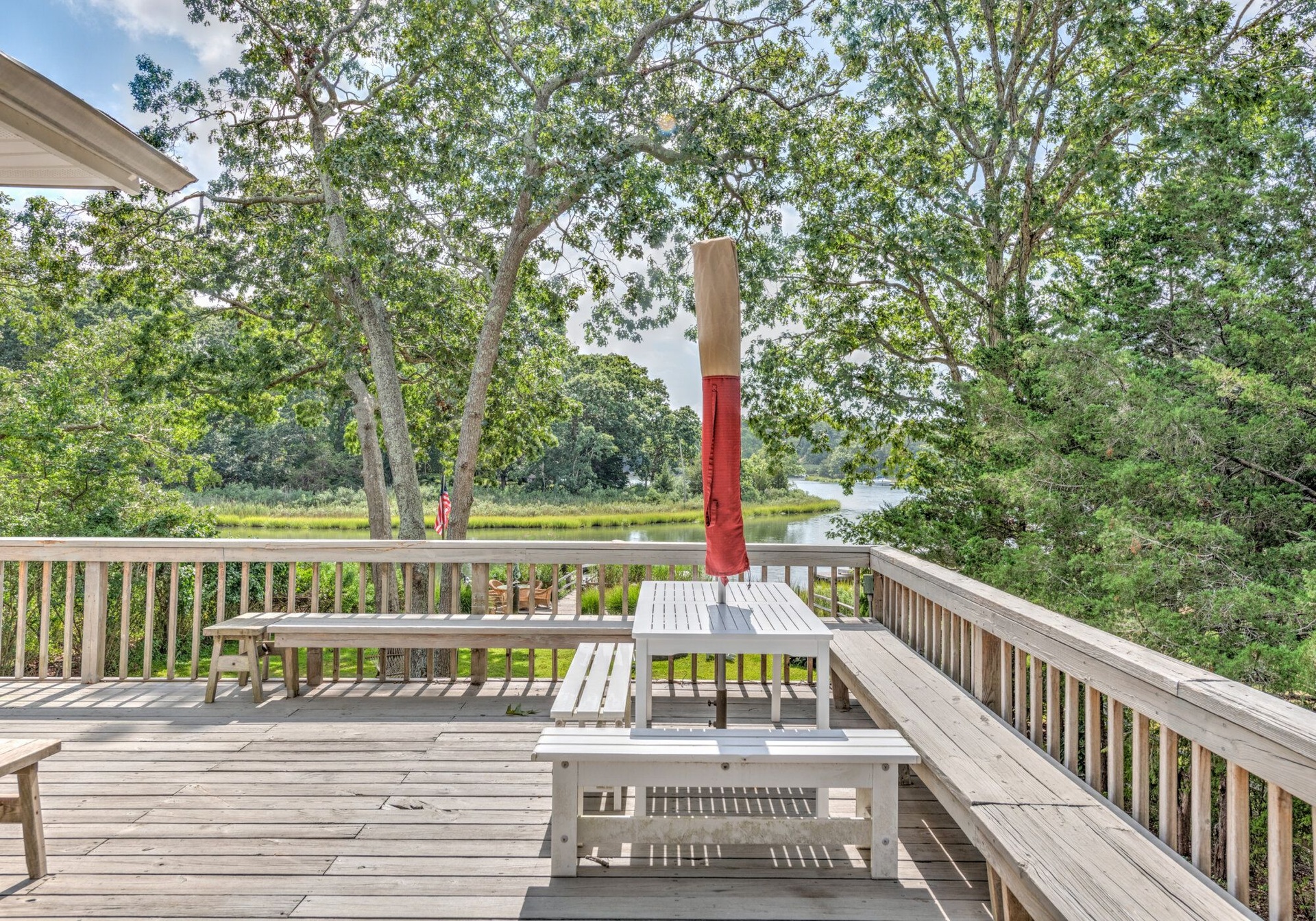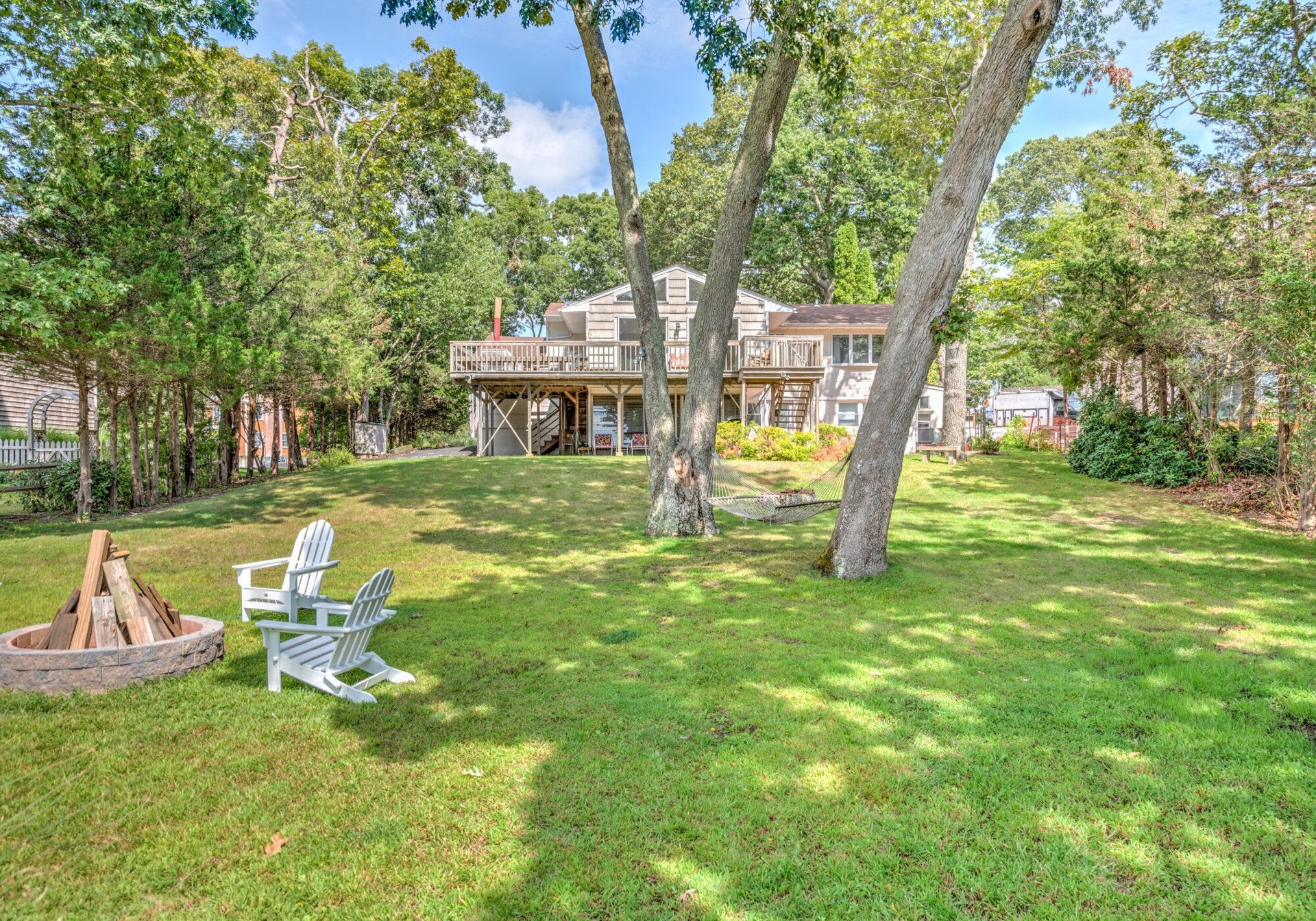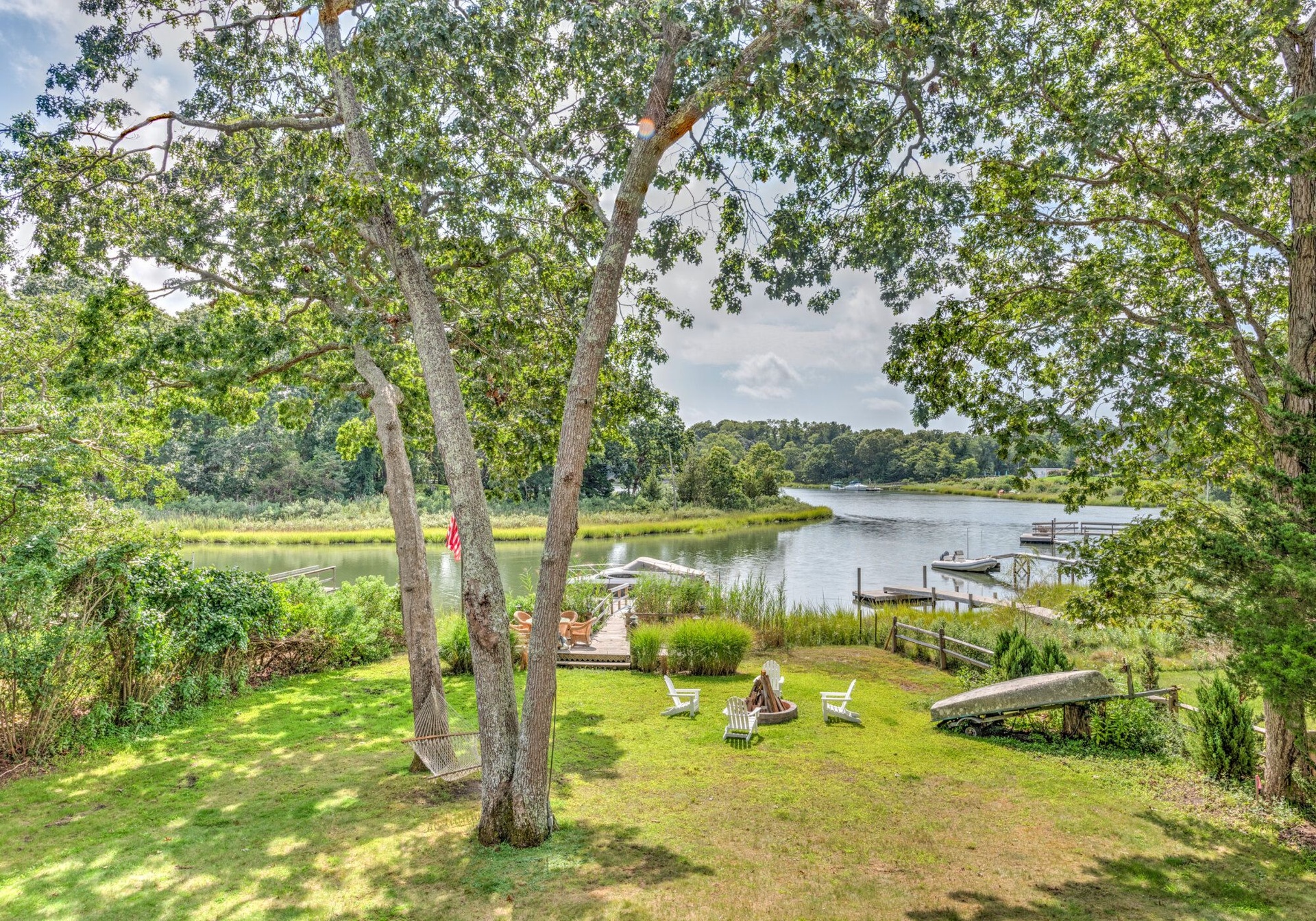 This Southampton home is a perfect waterfront destination. It offers five bedrooms, two living rooms, a formal dining room, two kitchens, and an oversized deck, perfect for hosting a summer soiree. The spacious backyard has a hammock, fire pit, a private dock, and plenty of space to enjoy the Hamptons at it's finest. This private retreat is just 1 mile from the beach and minutes away from great restaurants and shopping in Southampton Village and Sag Harbor.The home offers two floors that are connected by an interior staircase but also have separate entrances for privacy and ease of access. FInally, the property boasts about half an acre of waterfront land that offers a large illuminated dock that can accommodate multiple watercraft.