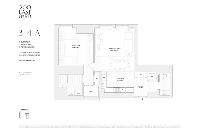 Residence 4A is a graceful and generously proportioned one bedroom with a charming south exposure that runs the entire width of the apartment. With a formal entry gallery, powder room, an open kitchen and a primary bedroom suite with generous closet space, this residence is especially charming, practical, and perfect for entertaining.