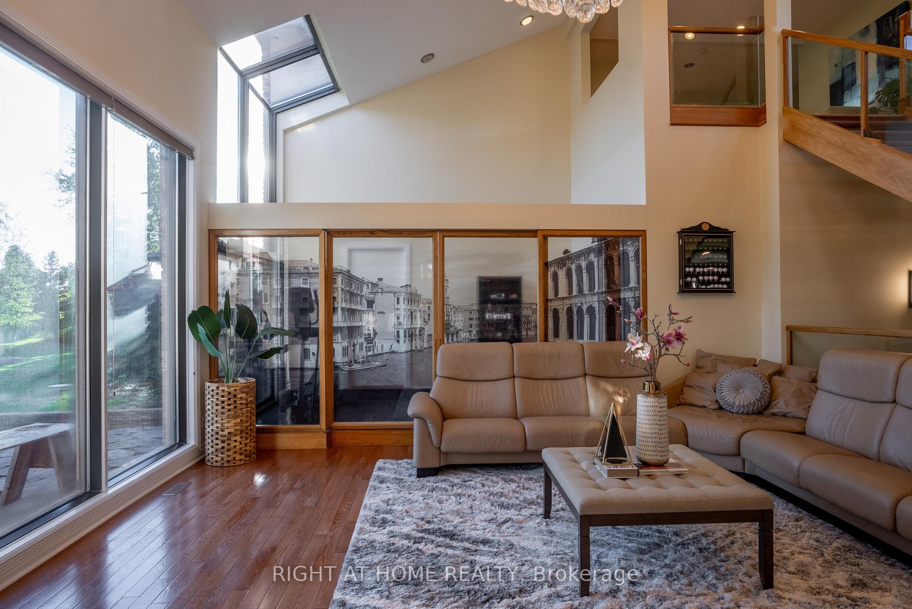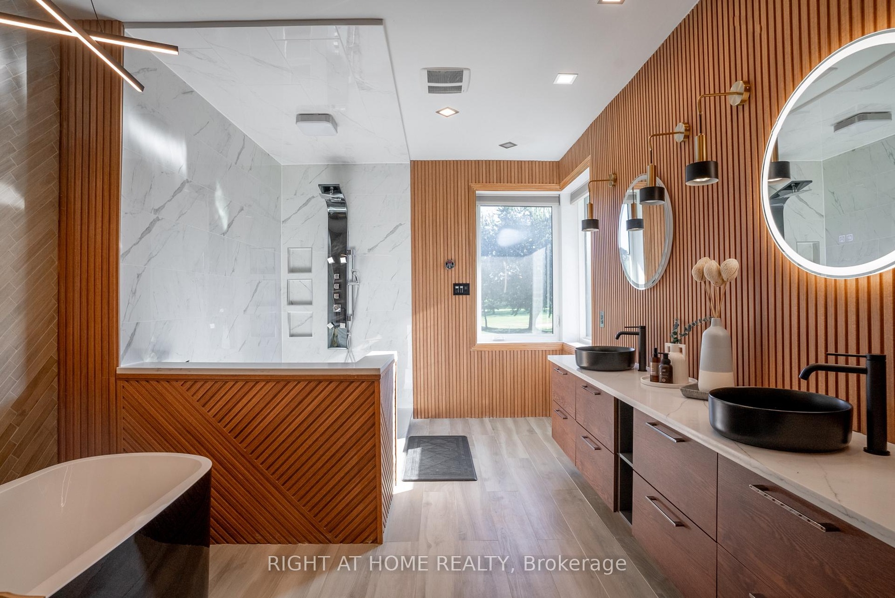 Welcome to this exceptional architecturally distinctive luxury residence in the prestigious Cedarhill community, offering over 8,500 sq. ft. of functional living space designed for comfort, sophistication, and modern family life. This custom-built bungaloft features soaring ceilings, floor to ceiling windows, and open-concept living areas filled with natural light and a separate entrance to the 3000 sq.ft finished basement. The gourmet kitchen boasts sleek cabinetry, one gas stove and one electric stove and a large island perfect for entertaining. With 6 spacious bedrooms, 5 full bathrooms, and 2 private offices, the home provides exceptional versatility for both family living and professional needs. The luxurious primary suite offers a spa-inspired ensuite with dual vanities, a freestanding tub, ,custom walk-in closets and a sauna. Enjoy wellness with a glass-enclosed jacuzzi area, and an additional sunroom to rewind. The private tennis court and the beautifully landscaped backyard with interlock patio creates an ideal setting for outdoor gatherings and peaceful retreat. A supersized 1,200 sq. ft. garage is perfect for car enthusiasts or extra storage. Perfectly situated in one of Ottawa's most exclusive and beautiful neighborhoods, this extraordinary property combines timeless architecture, tons of WOW features , and serene surroundings-offering a rare opportunity to experience resort-style living in the heart of Cedarhill. Unbeatable location ! only Minutes away from Highway 416, local shops, Costco and restaurants.