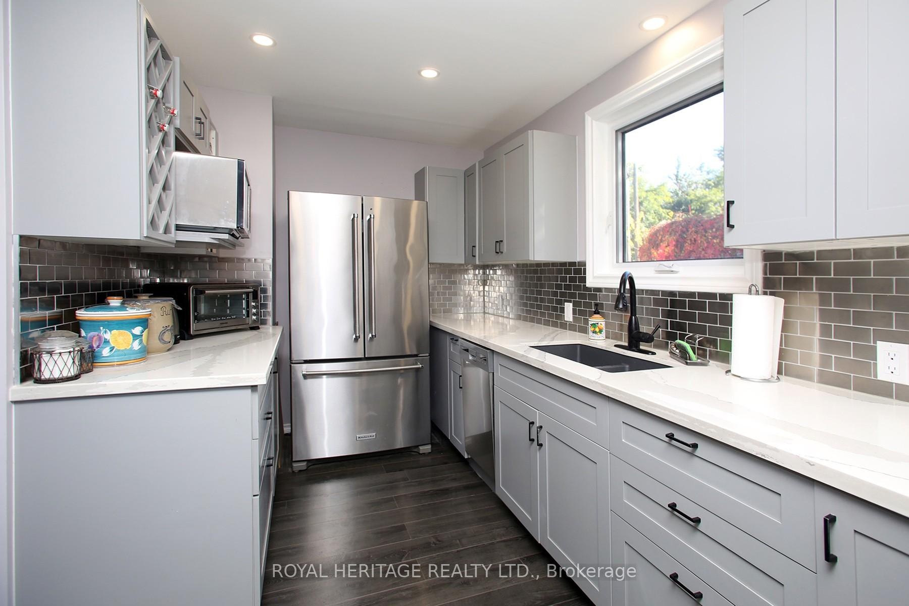 Discover the Charm of This S/E Ajax Family Home. This Upgraded, Charming, Well Maintained 1 1/2 Storey Home Having 3 Bedrooms is nestled on a Premium Private Fenced Lot with a Large Deck for those that like to Entertain and a Huge Back Yard allowing Kids/Pets Room to Run & Play. The Main Flr Boasts of a Updated Kitchen Featuring a Quarts Counter Top & SS Appliances, Living/Dining Rm Combination, Bed Rm and Updated 4pc Bath. The 2nd Floor Offers 2 Good Sized Bedrms. Additional Living Space can be found in the Finished Basement Offering a Recreation Room with Wood Burning Fire Place, 2pc Bath Rm/Laundry and Mechanical/Storage Area.