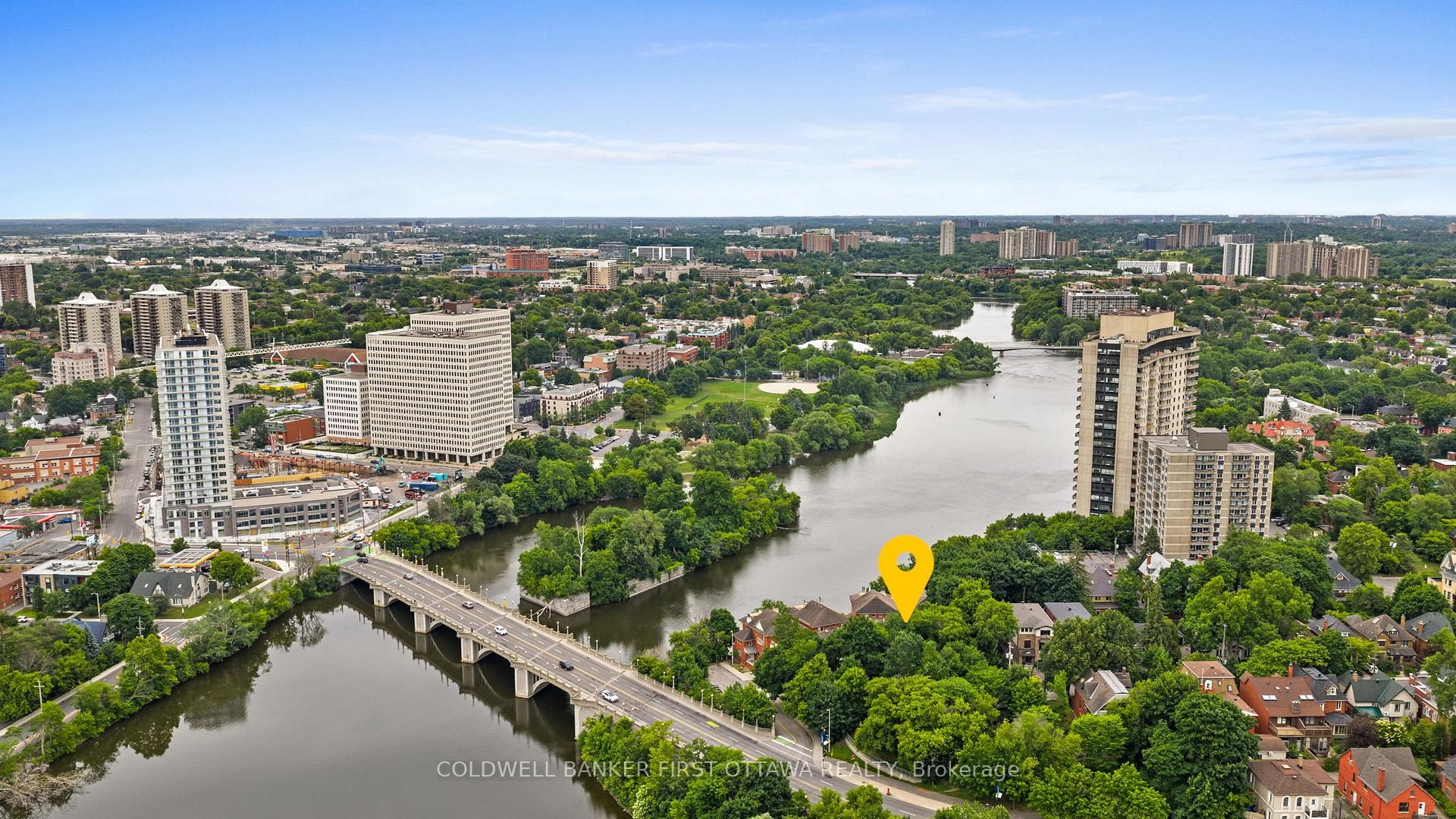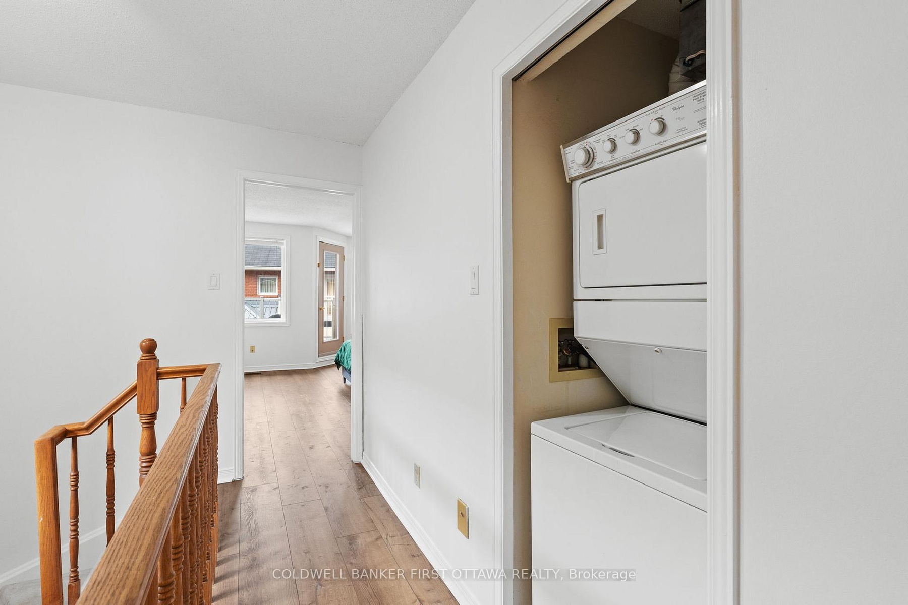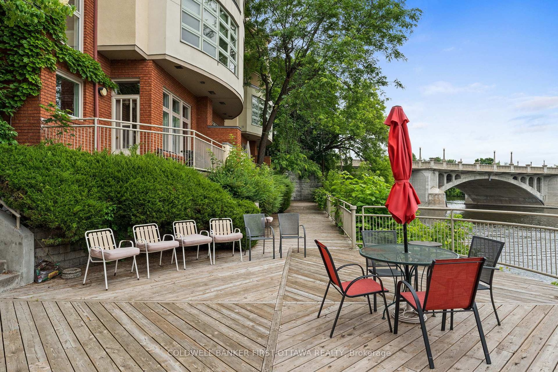 Welcome to The River Villa on Fountain! This stylish & spacious 1,401 sq ft 2 lvl condo is nestled in a Mediterranean-inspired courtyard, just steps from Rideau River. This unique, upper lvl unit offers privacy & charm w/ a semi-private entrance shared by only one neighbour & access to the beautifully updated (2024) communal courtyard, feat. new planters, upgraded drainage membrane, garage ceiling & custom fountain (on order). Ideal for outdoor enthusiasts, enjoy direct river access via the courtyard, perfect for kayaking, paddle boarding or relaxing by the water. Walk, run or cycle the nearby trails that connect to paths throughout the city. Inside, this well-maintained condo unit has been professionally painted (2025) & updated w/ luxury vinyl plank flooring on both levels (2020), LED lighting (2025) & front-entry privacy film (2025). The tiled foyer leads to a 2pc powder room & opens into a massive living/dining area w/ wood-burning fireplace, oversized windows overlooking trees/shrubs & no rear neighbours. The bright kitchen offers laminate counters, white upper/lower cabinets & access to a main lvl patio w/ room for seating and enjoying morning coffee & evening cocktails. Appliances incl.: Jenn-Air dishwasher, Whirlpool stove, GE fridge. A closet w/ wooden doors houses the Broan furnace & Rheem HWT. Second level, the spacious primary bed boasts 2 double closets, a 4pc ensuite w/ dual vanity, whirlpool tub & private toilet cubby, plus a walkout to a private deck w/ tranquil courtyard & river views. The 2nd bed w/ double closet is perfect for guests or a home office. The 3pc main bath incl. a tile surround shower & pedestal sink. Whirlpool stacked washer/dryer in hall w/ nearby linen closet for convenience. Walkable to UOttawa, ByWard Market, RCMP, Global Affairs, Strathcona Park, Rideau Sports Centre, Farm Boy, Metro, Loblaws, Shawarma Palace & more. Right on the Rideau River, a rare find offering character, lifestyle & location. A true Gem in heart of Ottawa!